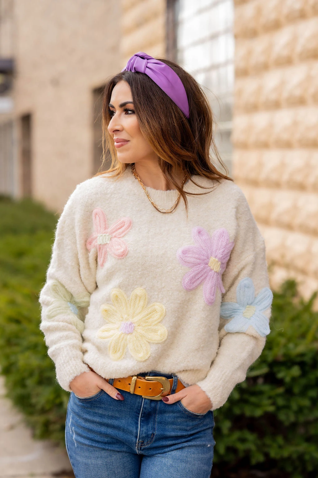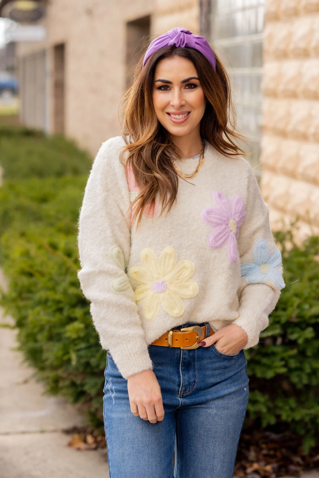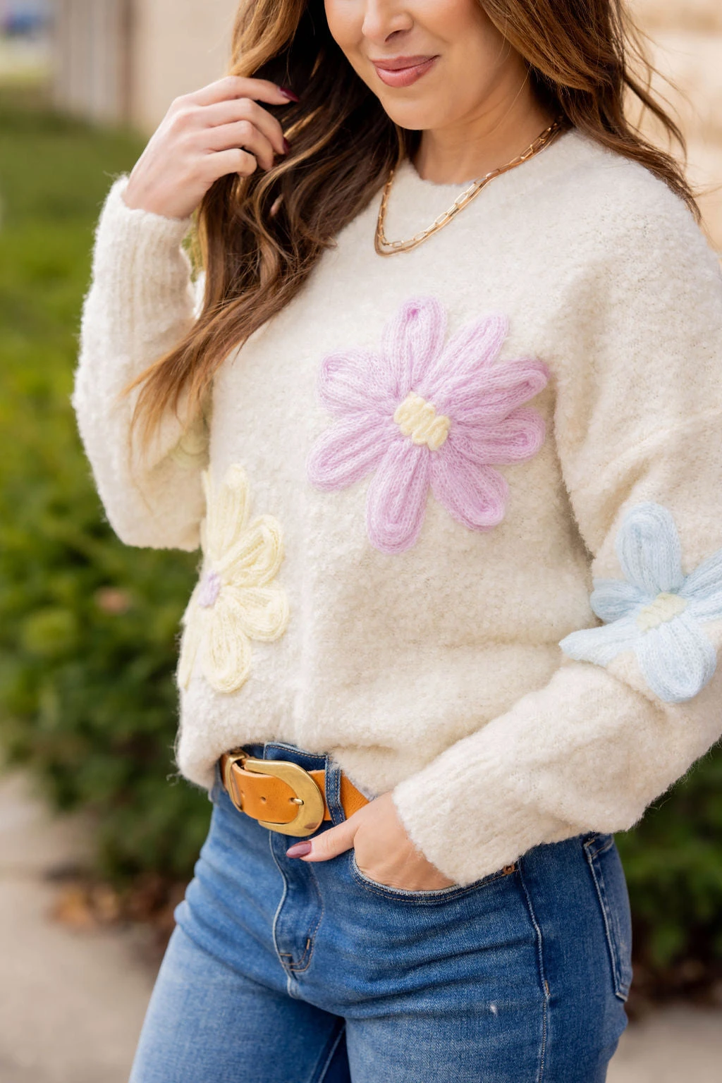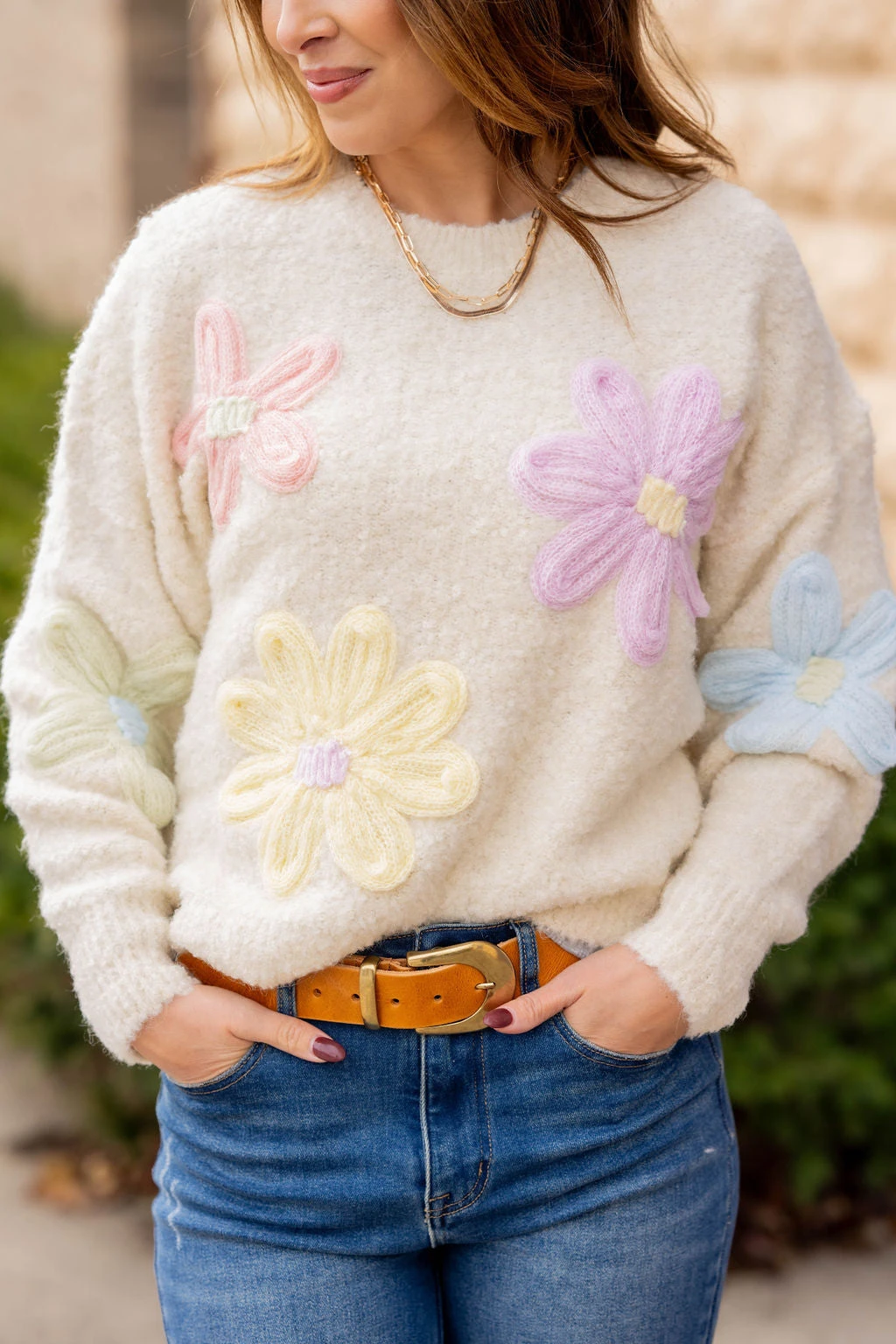 Get ready for Spring with this beautiful and super soft floral sweater! The super soft material is accented with fun pastel flowers to give it that Spring vibe! Pair with a skirt, your favorite denim, joggers, or our Betsey’s Jeggings! Chilly? Add a vest or shacket with ease!