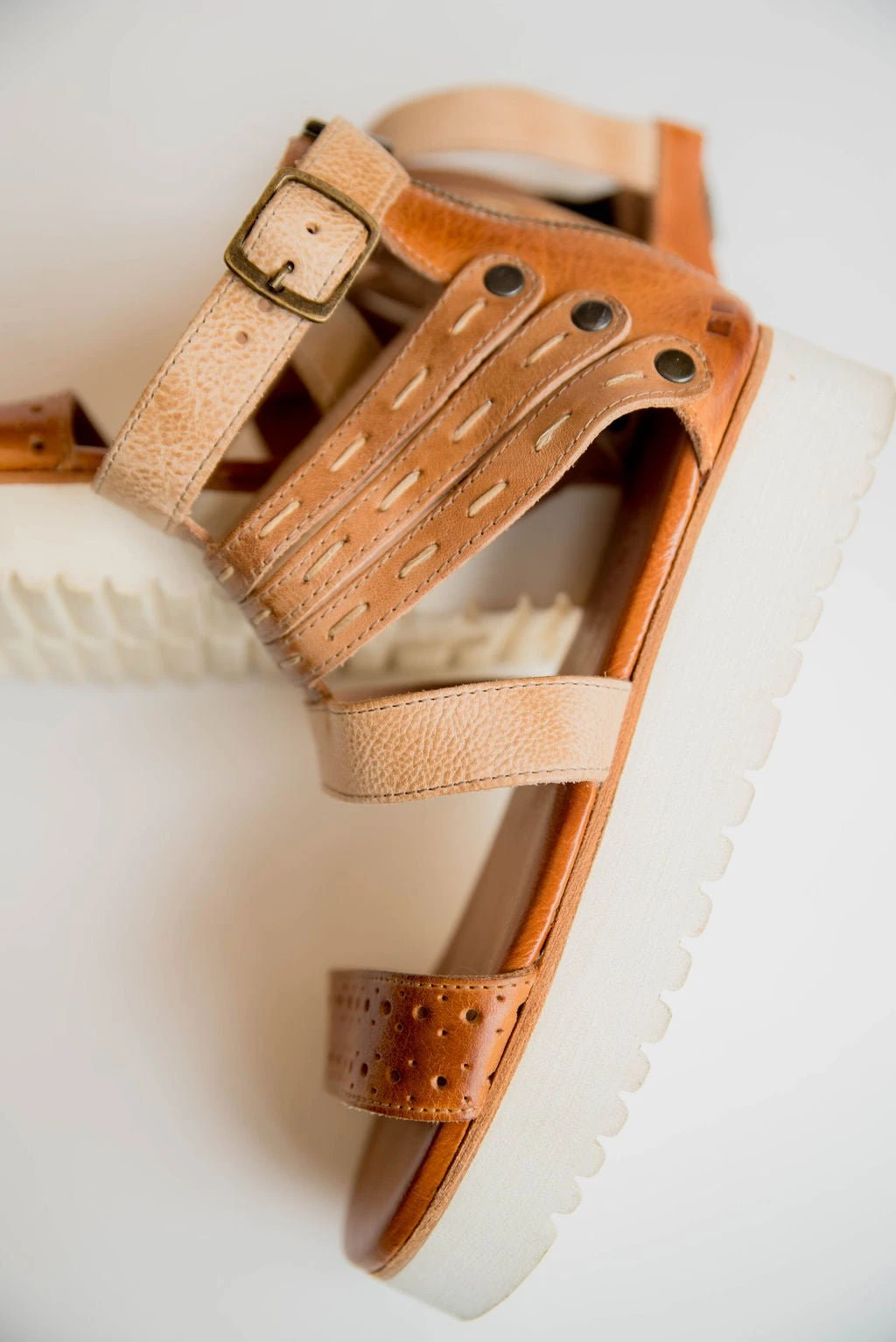 - Decorative perforations and stitch details