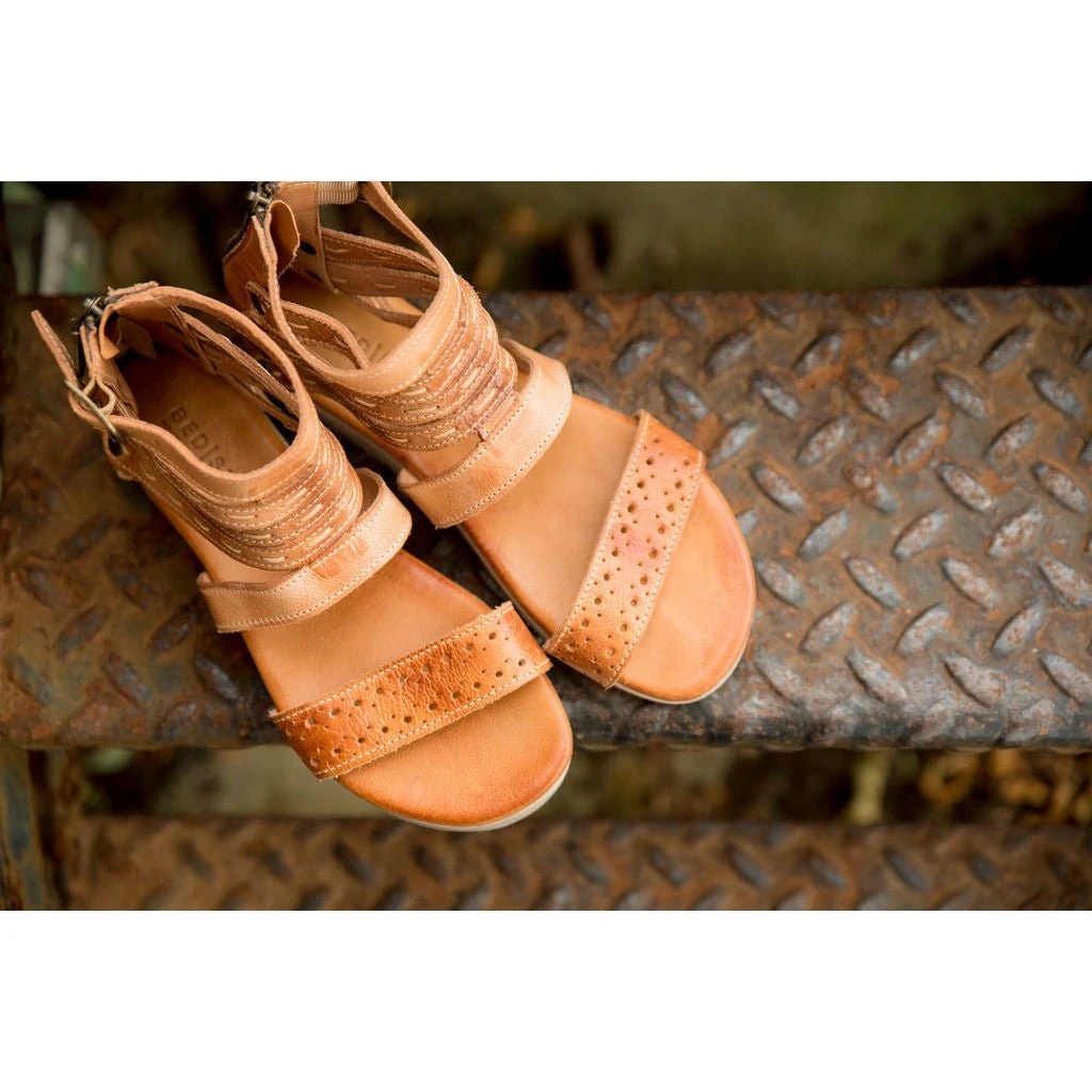 - Back zipper and ankle strap with buckle