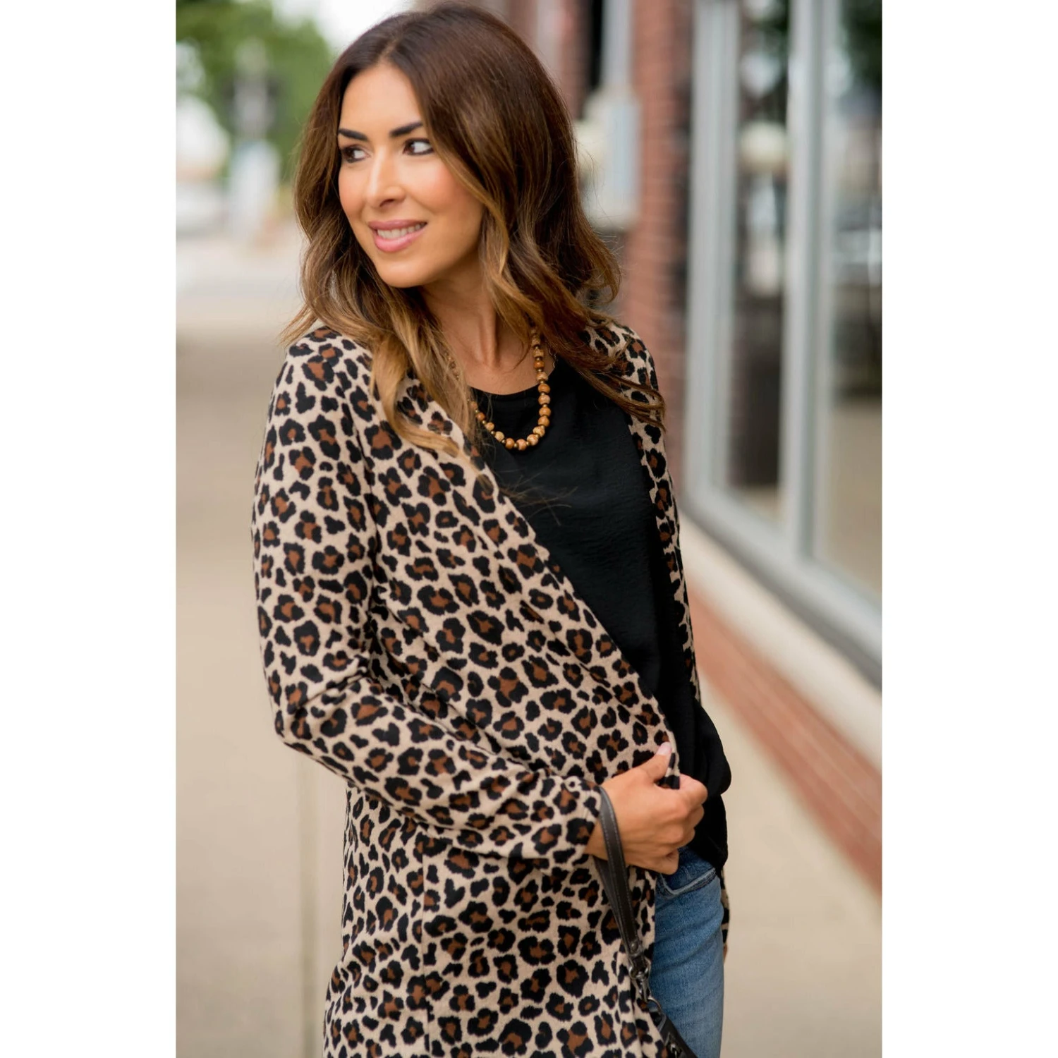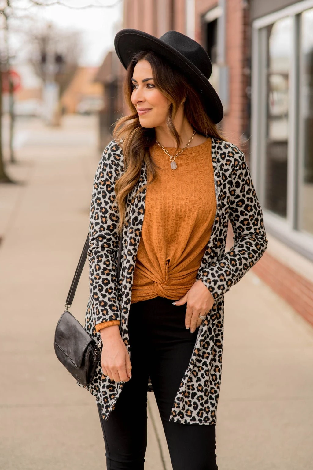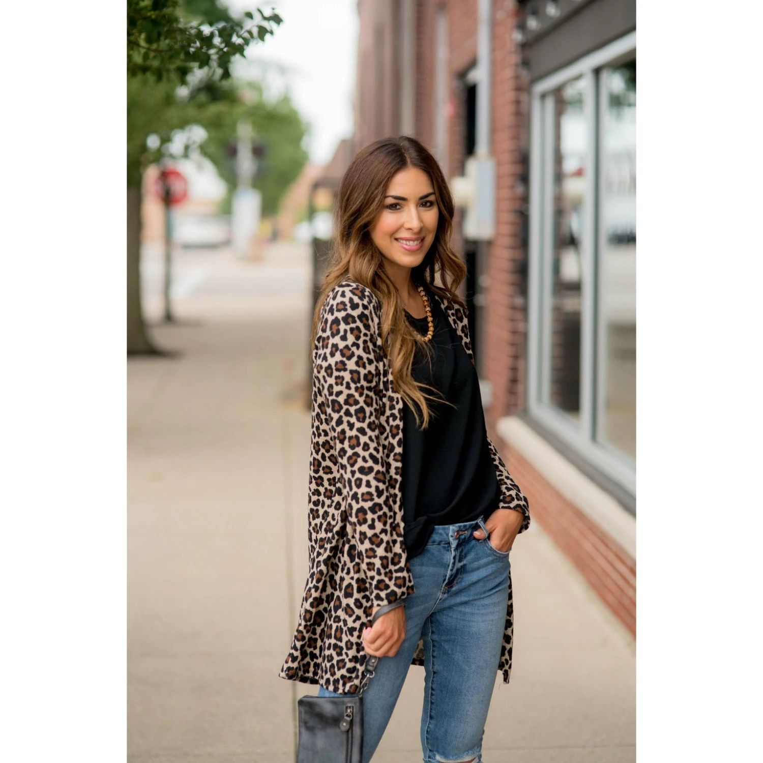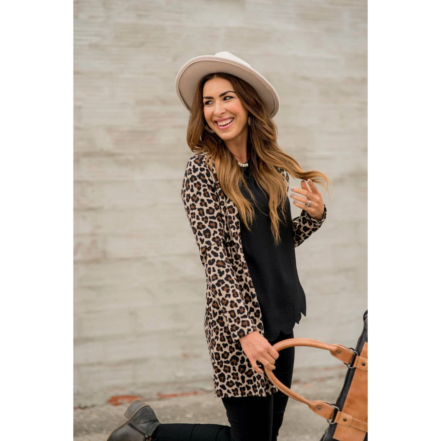 Satisfy your wild side with this Basic Leopard Tunic Cardigan! Wear it over a basic tee or your favorite blouse!