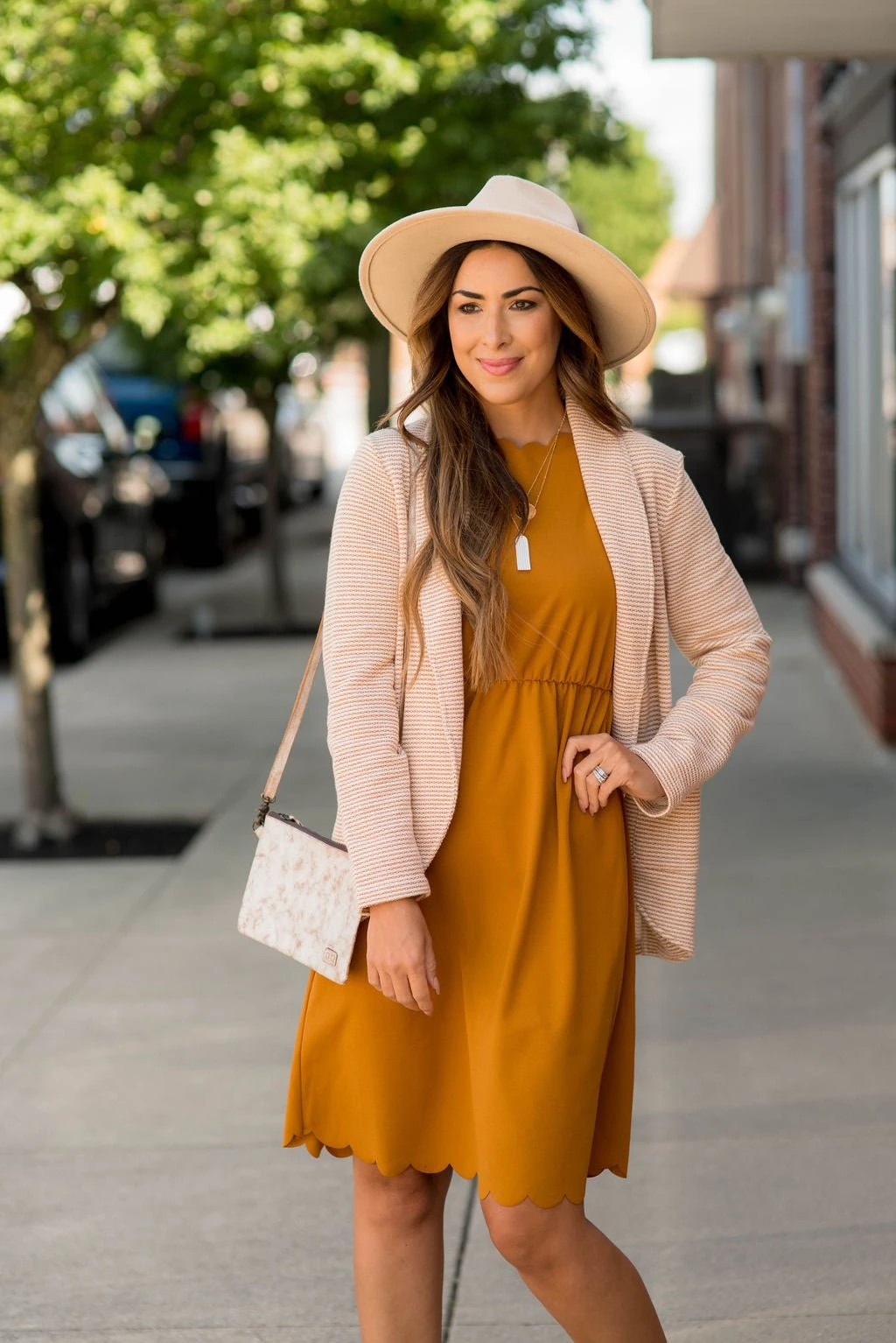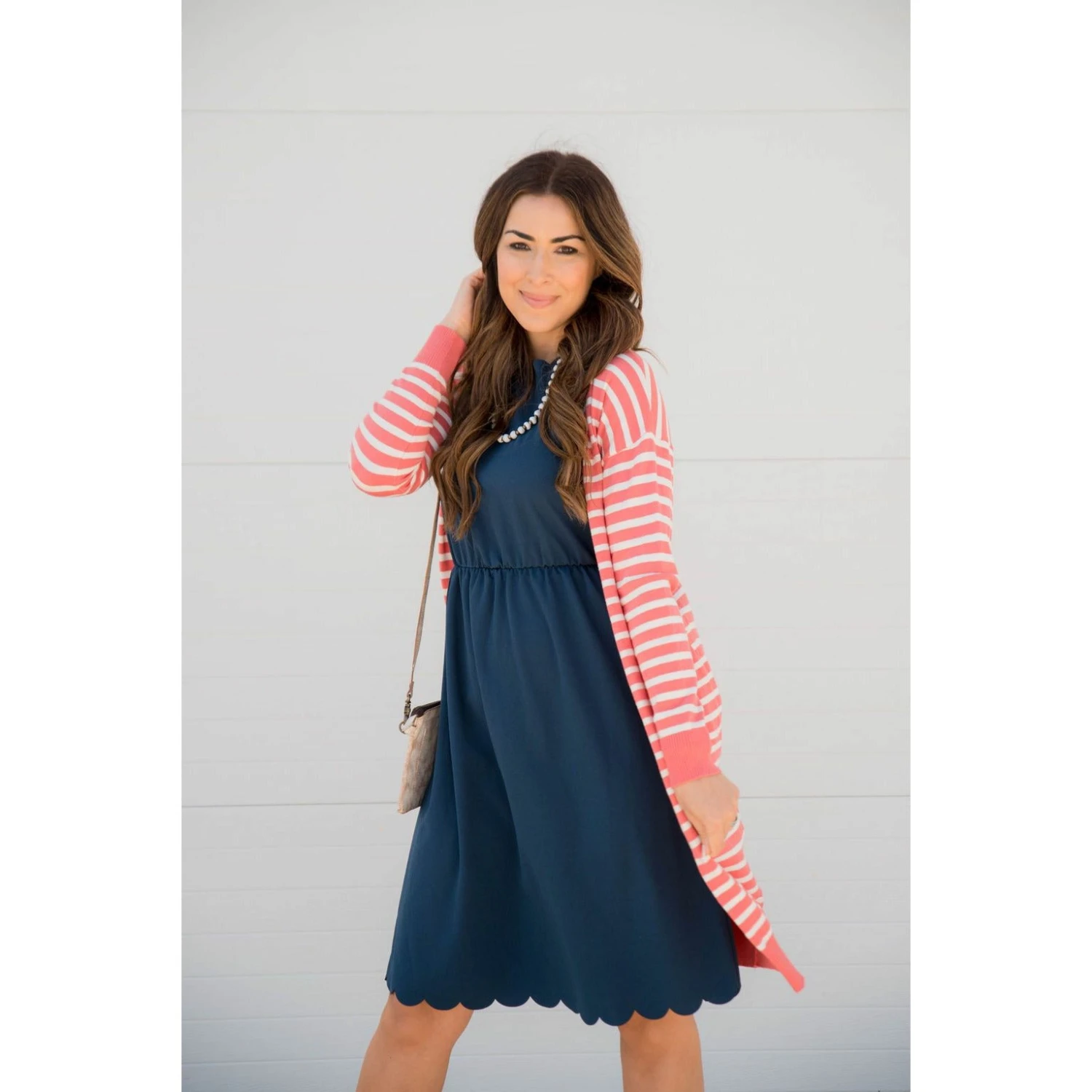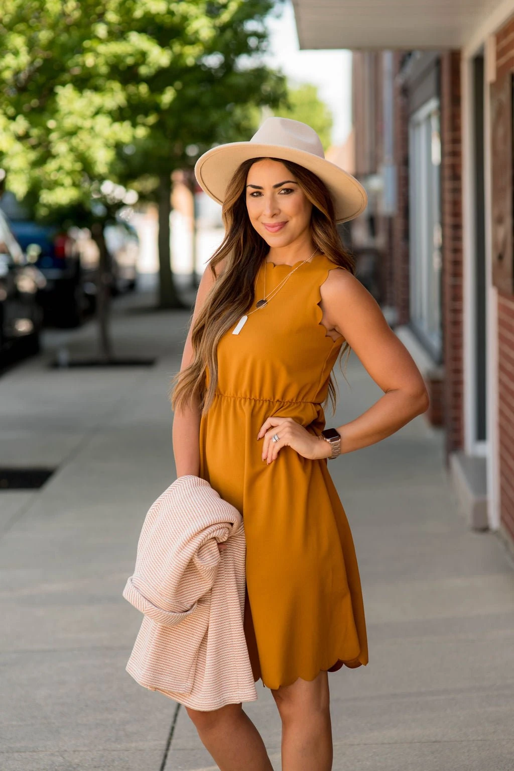 This Basic Scalloped Tank Dress is a great addition to your closet! The sleek look of this dress gives you an edgy style. Take it up a notch by adding a Basic Scalloped Tank Dress!