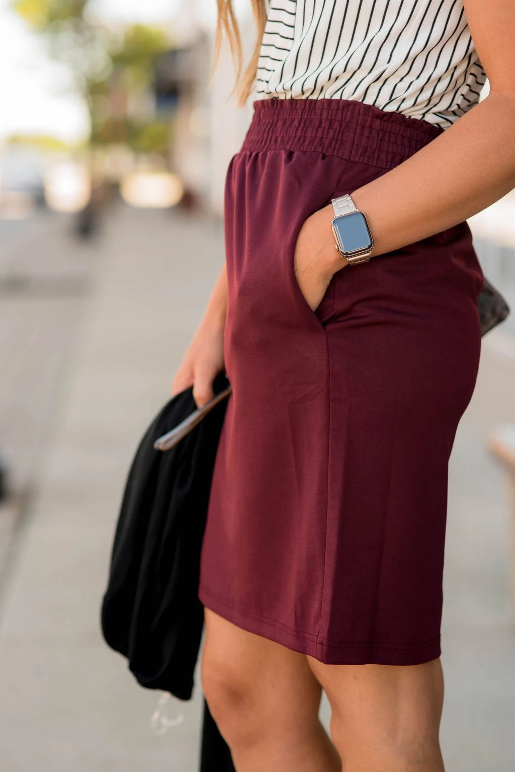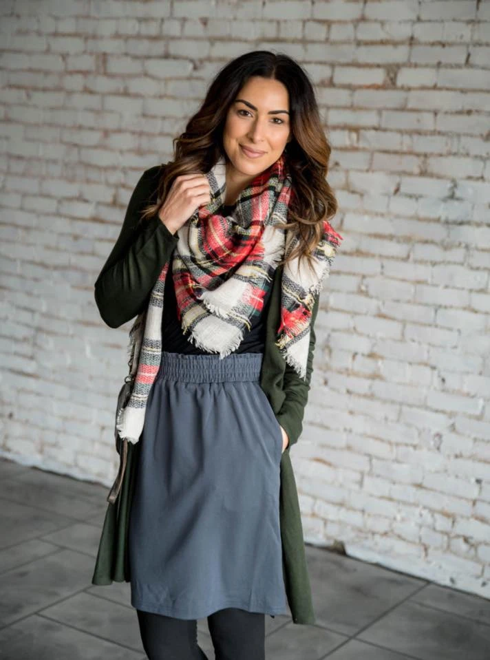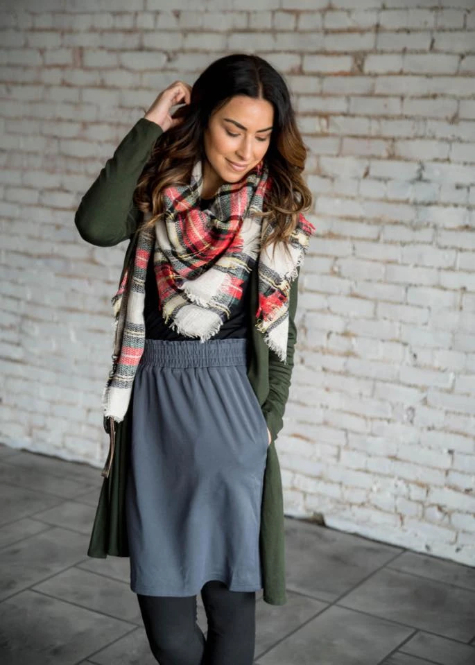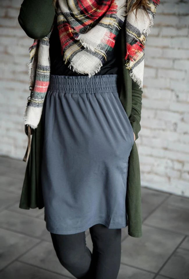 This basic skirt is a must have for anybody who loves a simple, comfortable fitting skirt. This skirt comes with pockets and an elastic waist for a comfortable, all day wear. Pair this with one of our blouses or basic tees for a complete Betsey’s look!