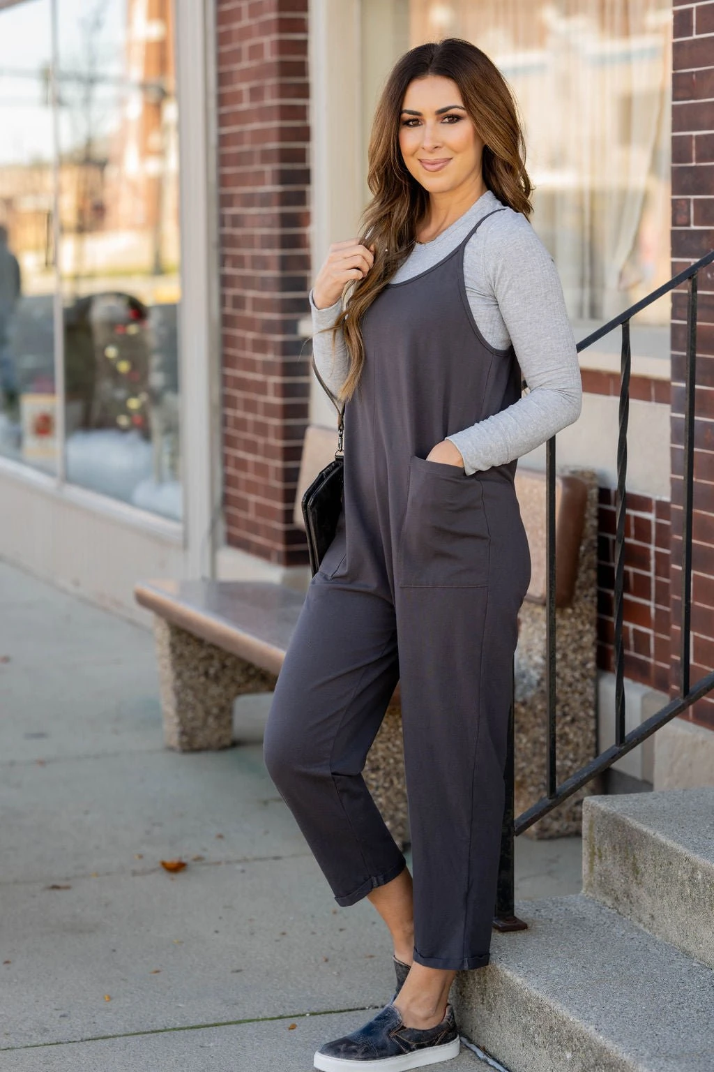 Comfy and oh so cute! This tank jumpsuit features two large front pockets, a ribbed texture, and a cropped bottom! Put this over a tank, graphic tee, long sleeve tee, or even a sweater! This jumpsuit can be worn all year round and dressed up or down to match your style!