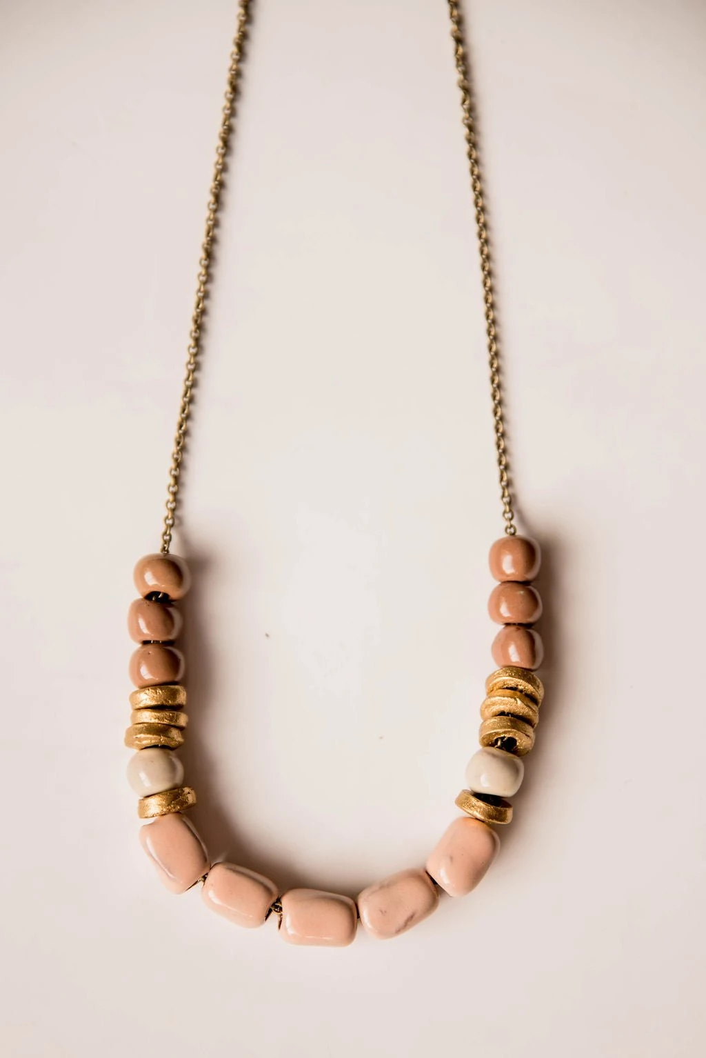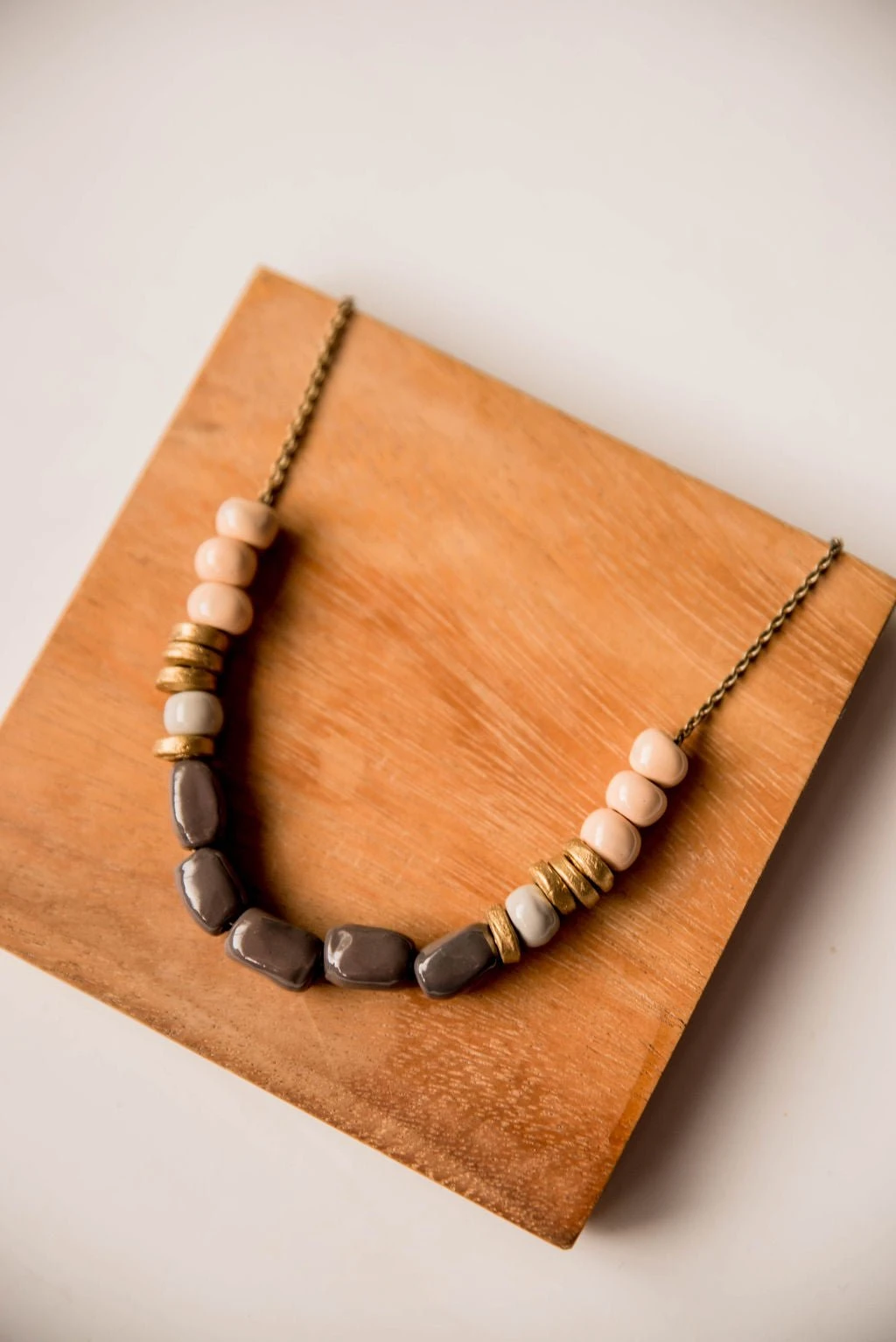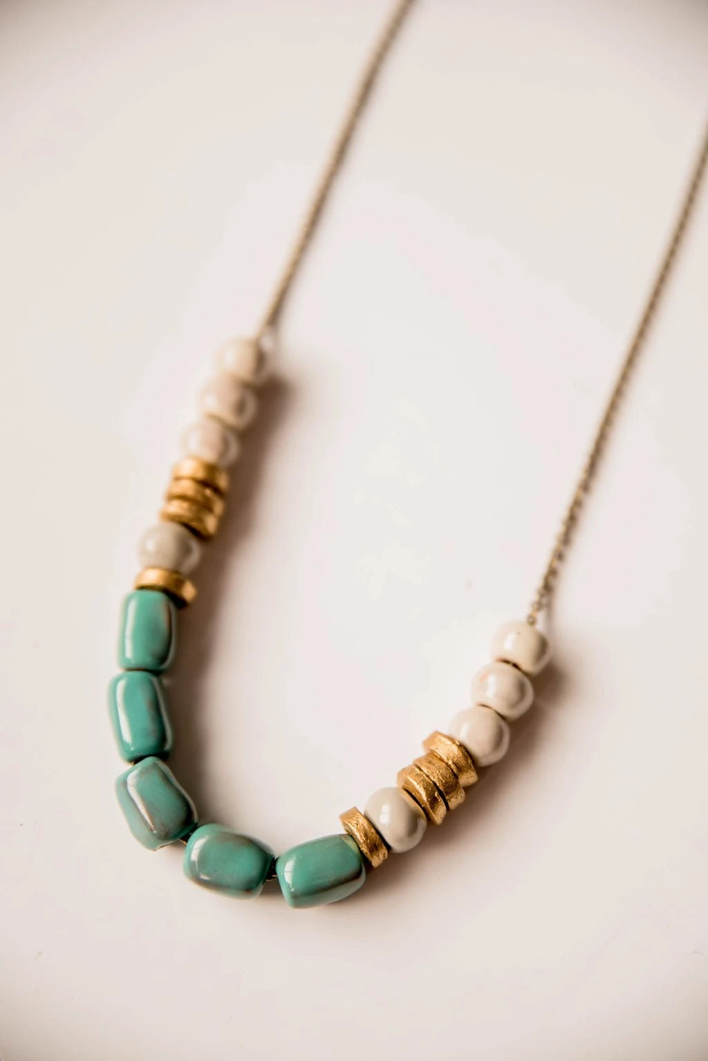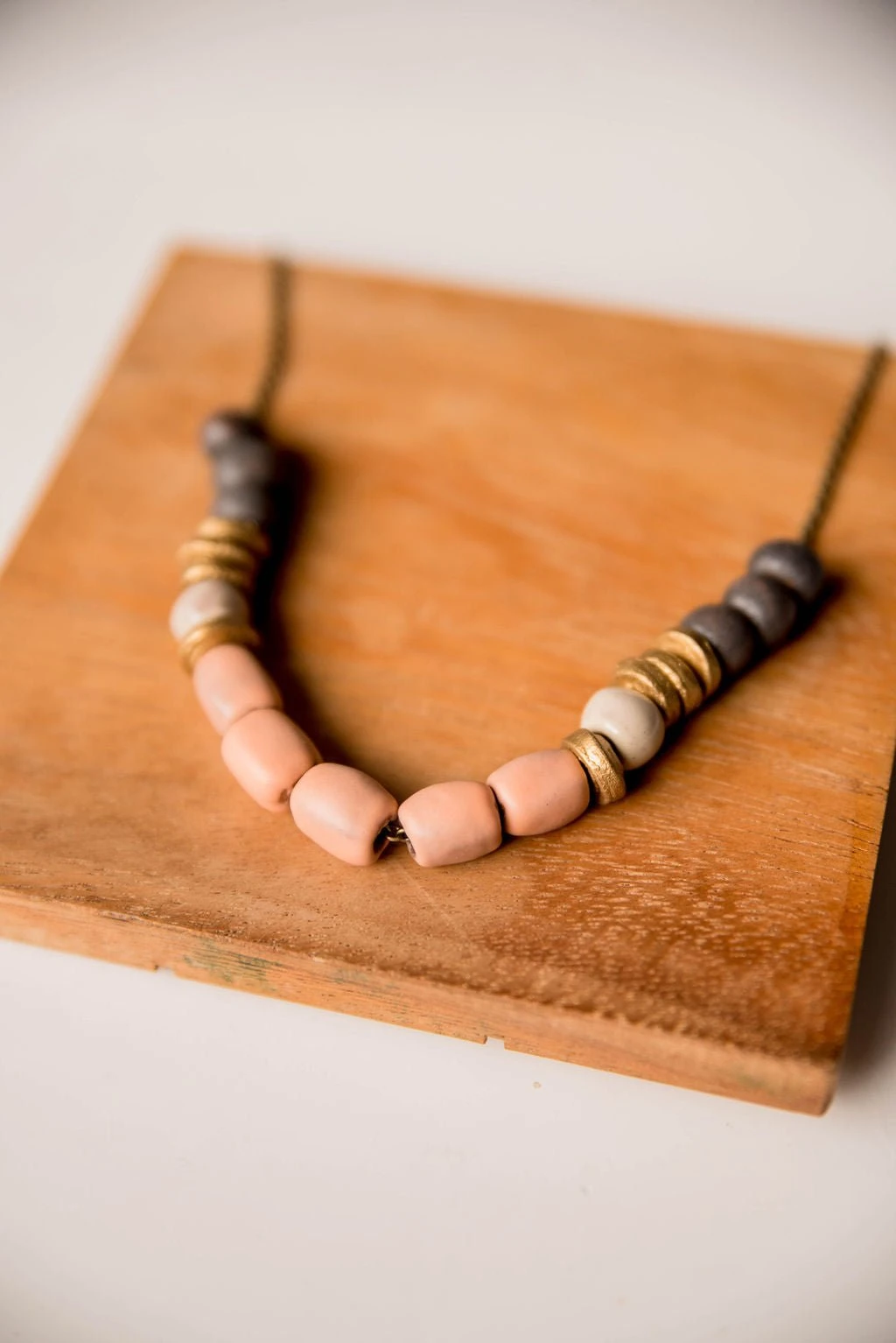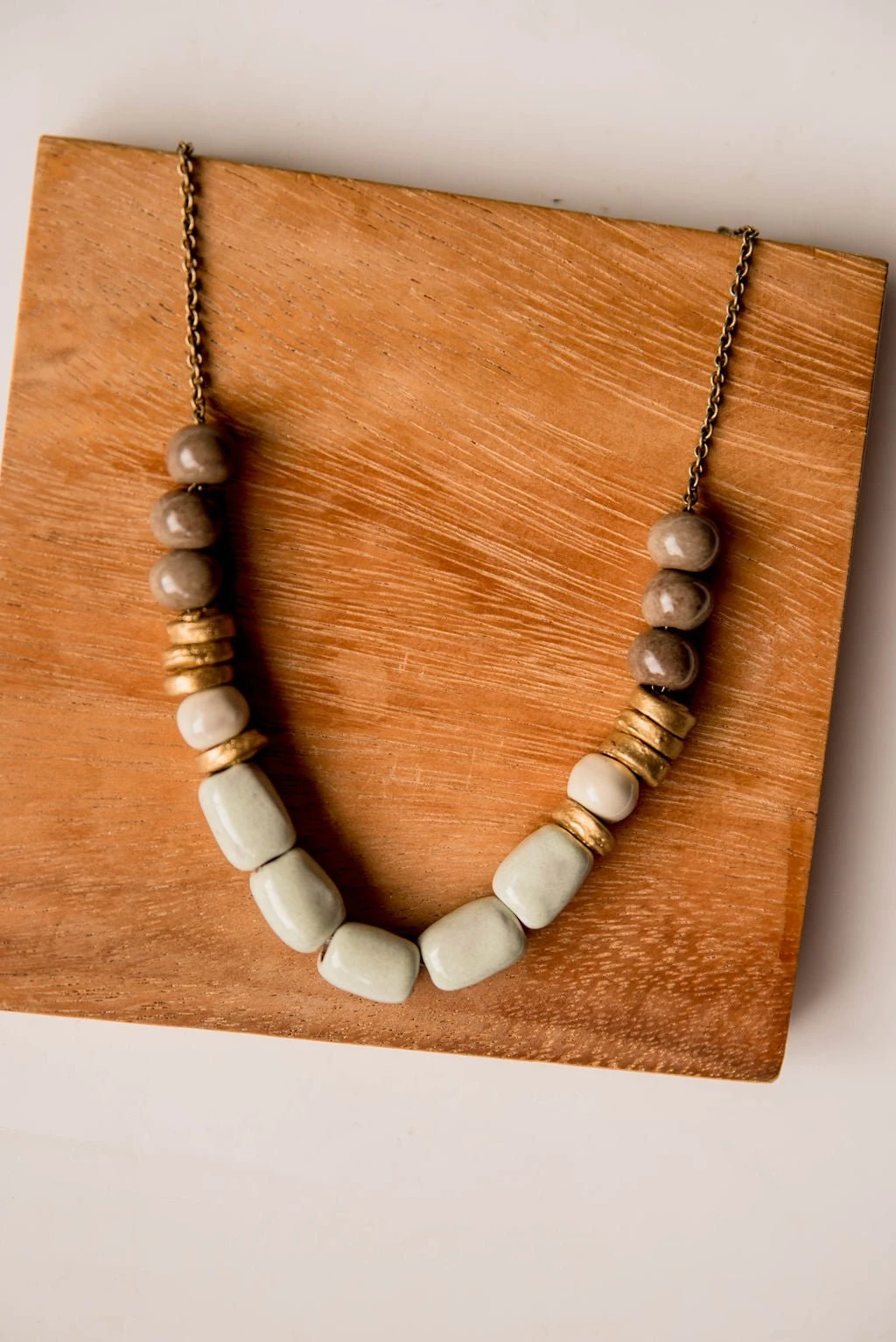 Dress up your outfit with our Bel Koz necklace with an assortment of beads to set it apart from the rest! This unique necklace is handmade from clay beads by talented Haitian women. A portion of Bel Koz sales also goes to nonprofit organizations on the grounds in Haiti. Look stylish while also supporting a great cause!