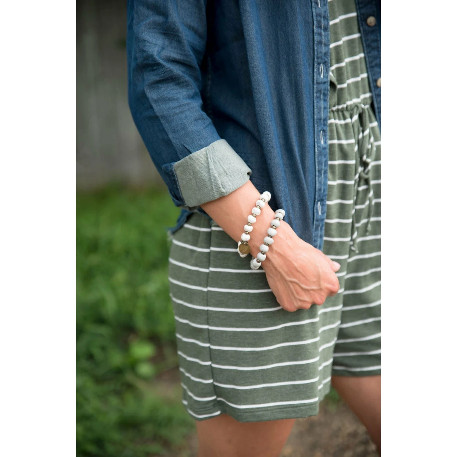 Handmade clay beaded bracelets that are the perfect addition to any outfit that can either be worn alone, or stacked to be the statement piece of your look.