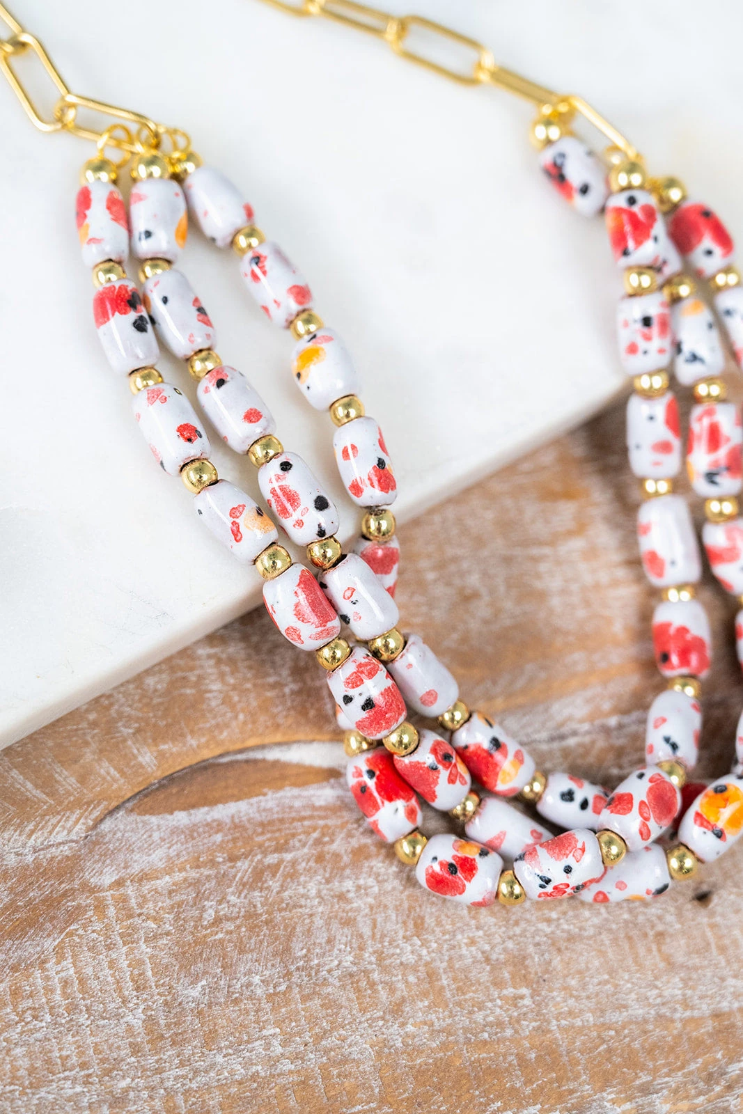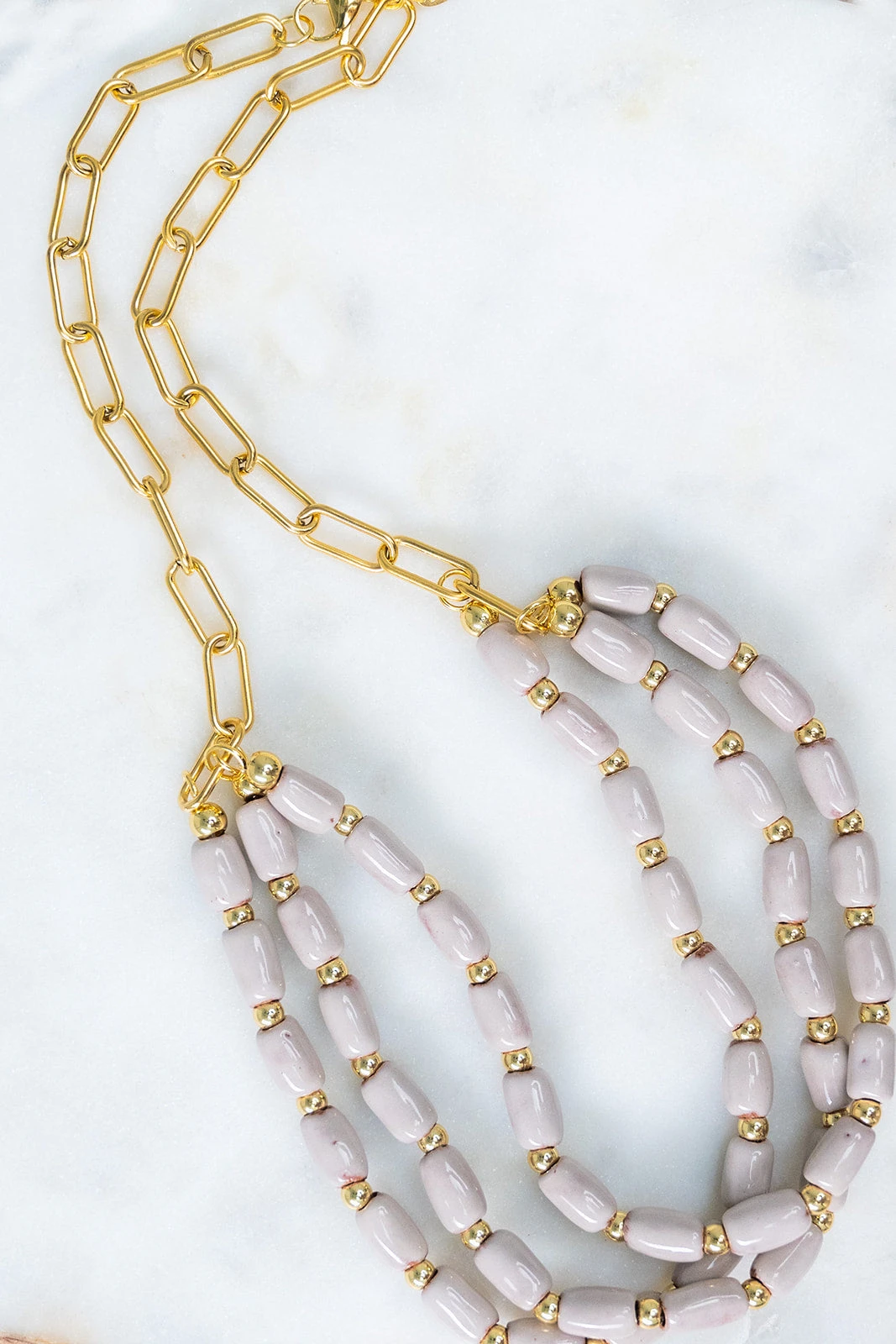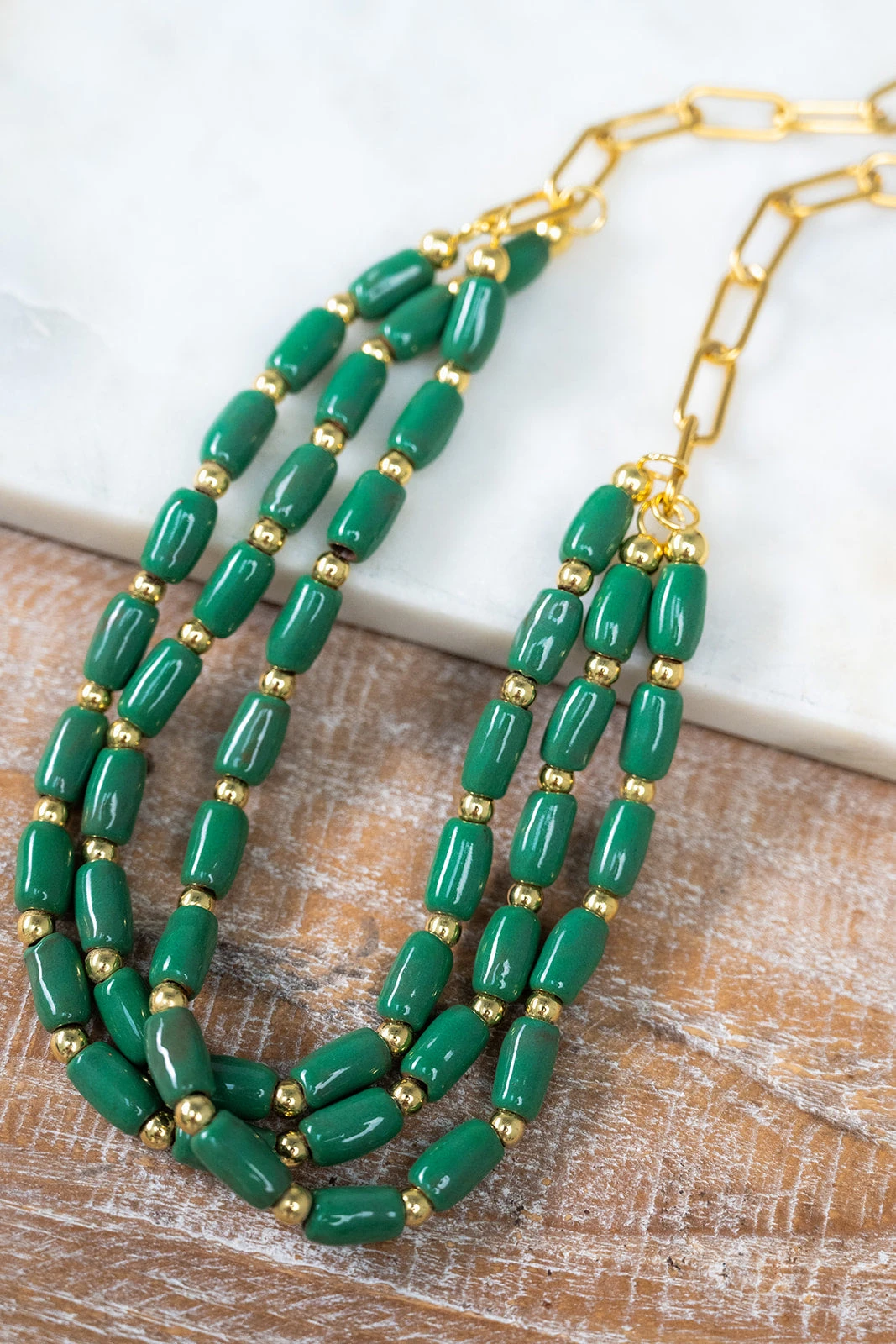 Three strands of clay beads makes this a staple piece to dress up even the most casual of outfits. Pair this with our clay bracelet for a complete look!