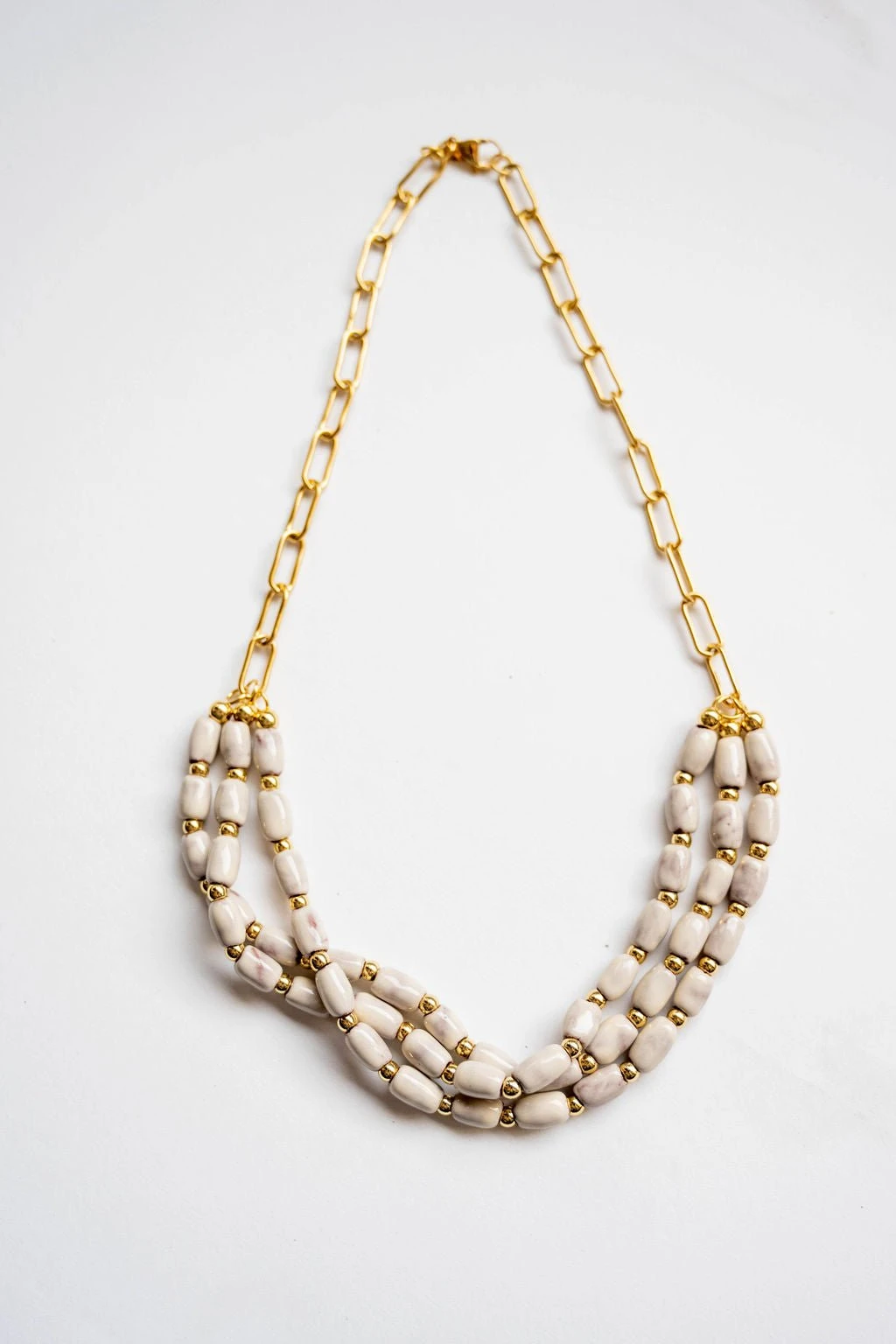 Be the first to review “Bel Koz Triple Twist Elongated Clay Necklace” Cancel reply