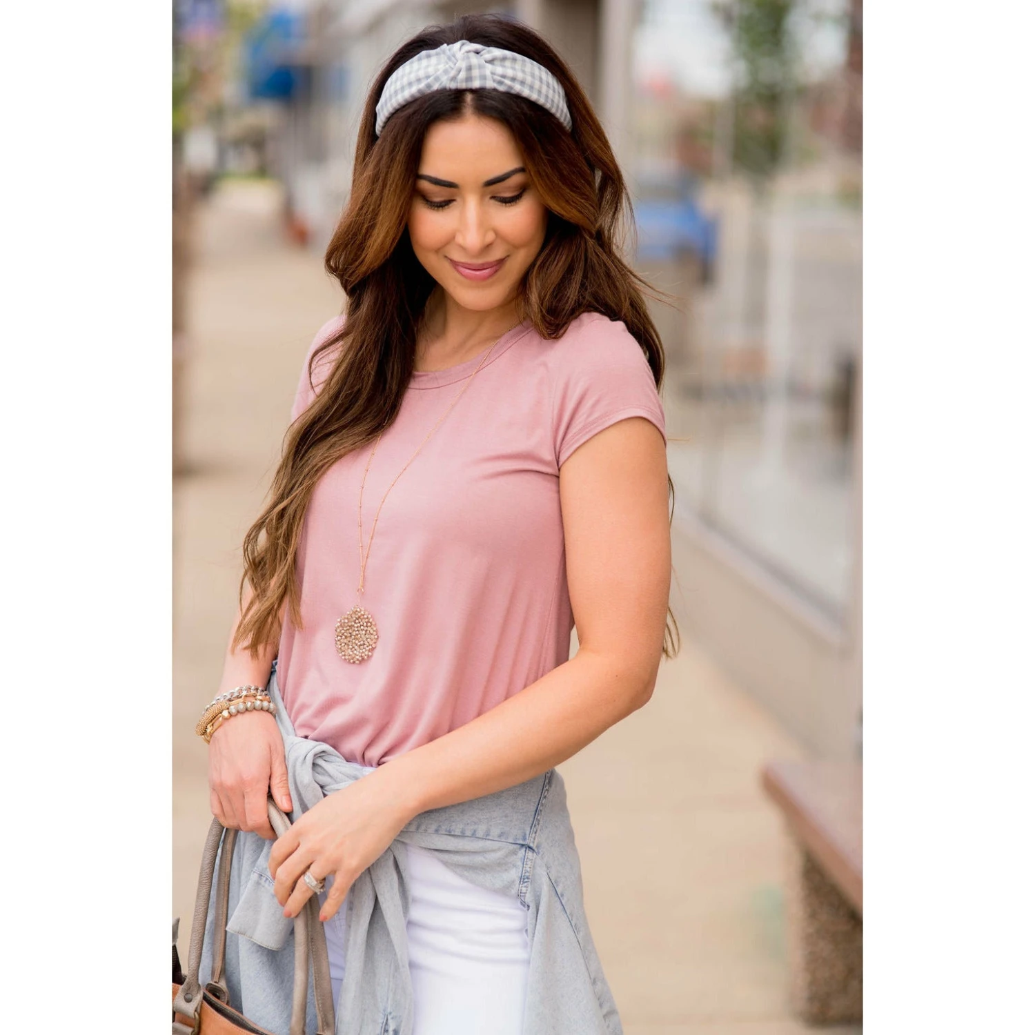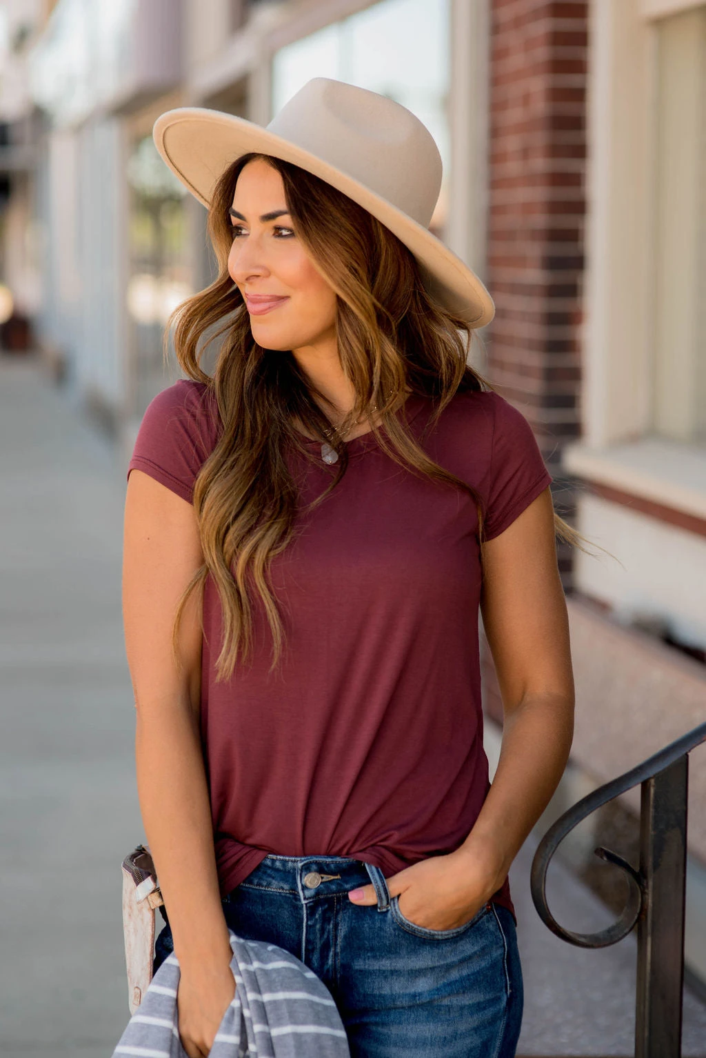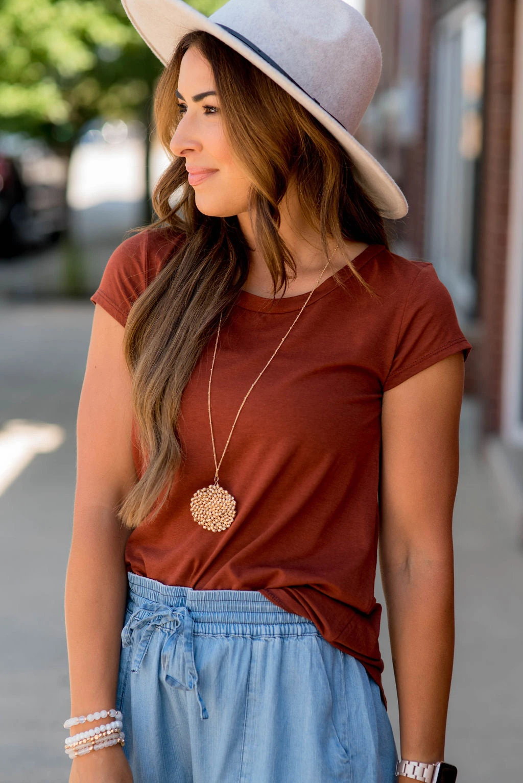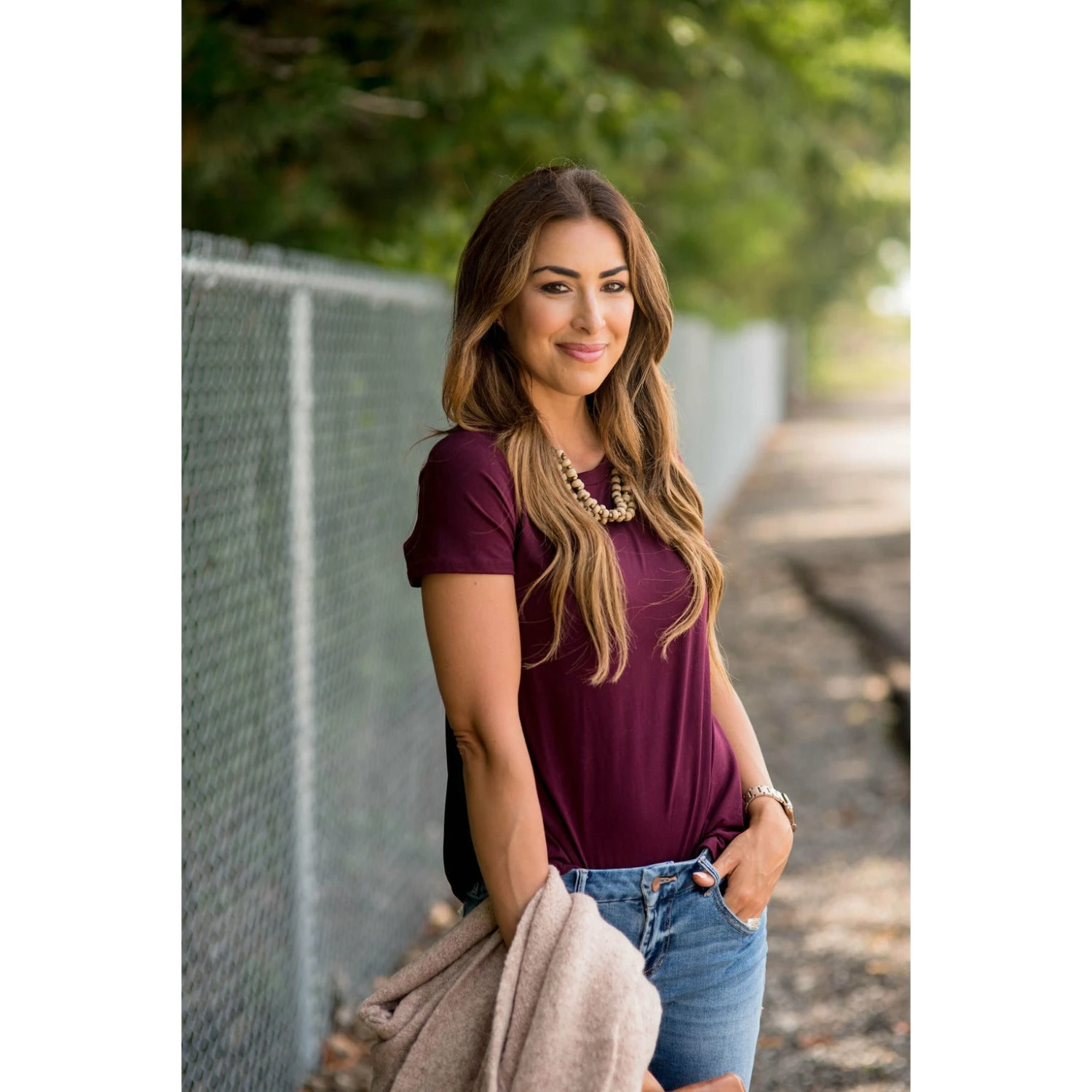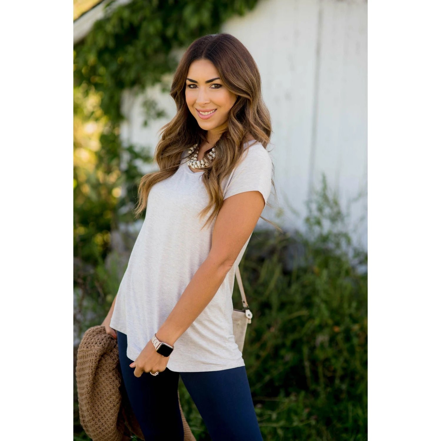 Everybody needs these basic tees in their closet! Not only do they come in so many different colors, but they can be worn in so many different ways. They can be layered under any cardigans, denim jackets, or our cinched zip up jackets. Not only can they be used as layering pieces but they can also be worn with jeans, leggings, scalloped shorts, or even tucked into one of our many skirts!