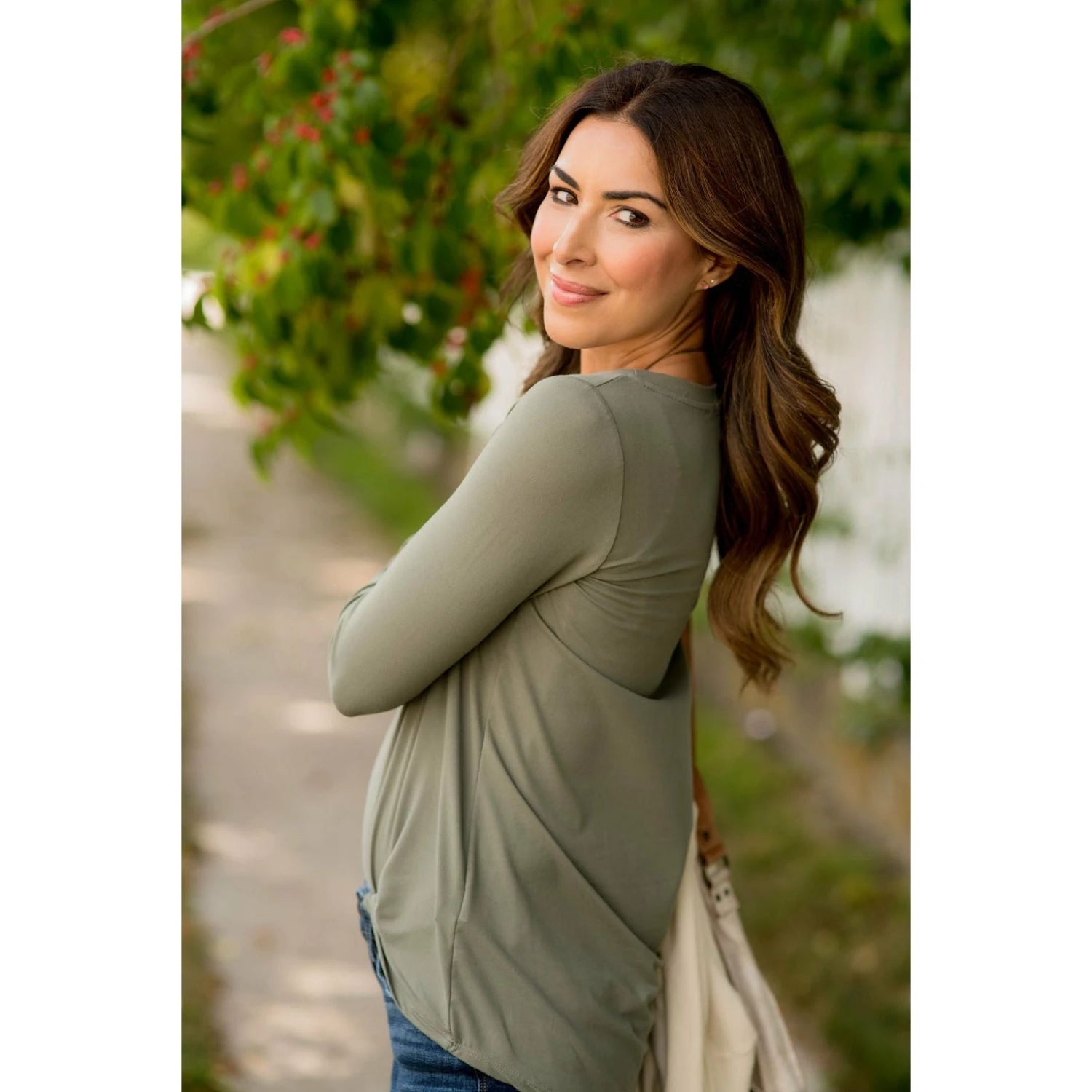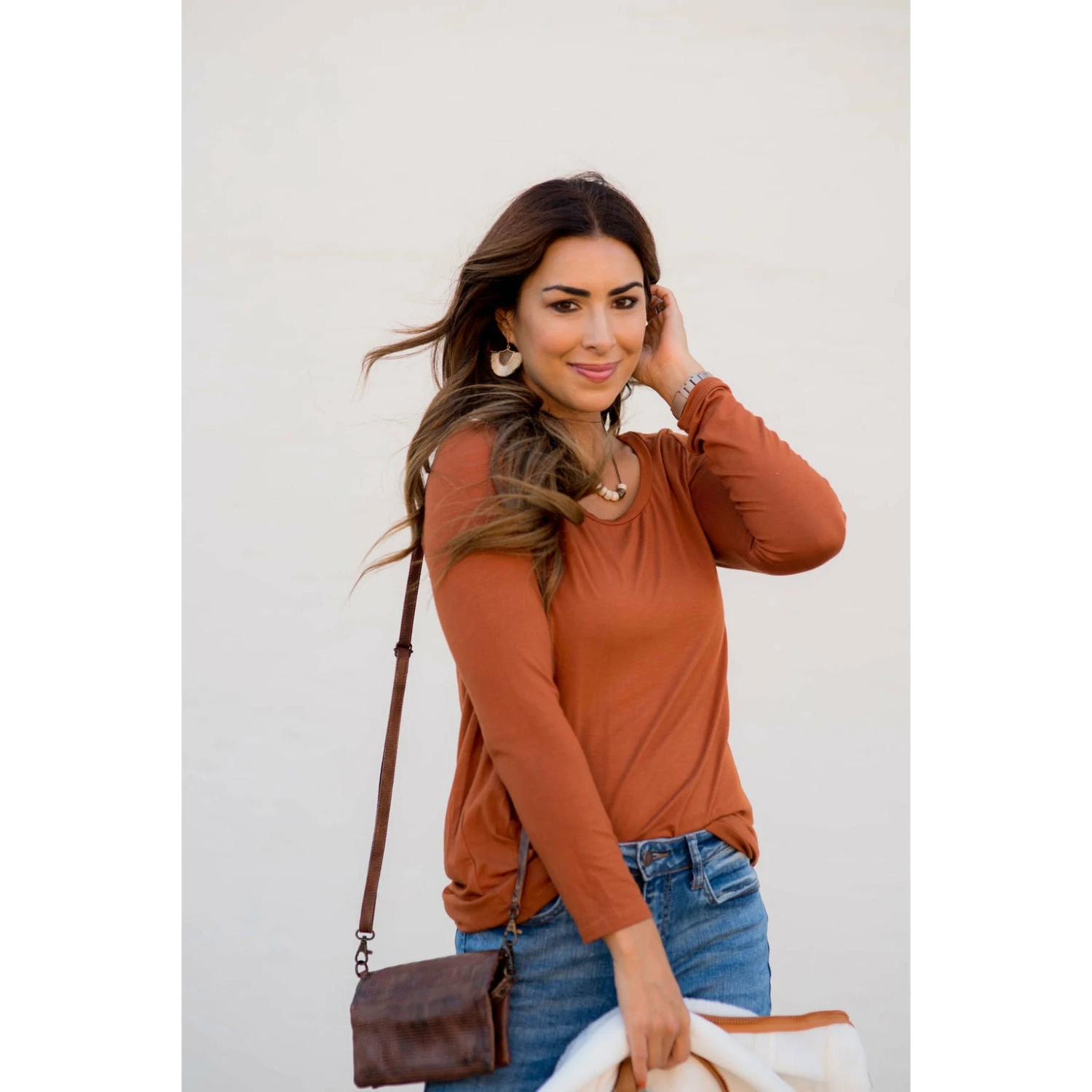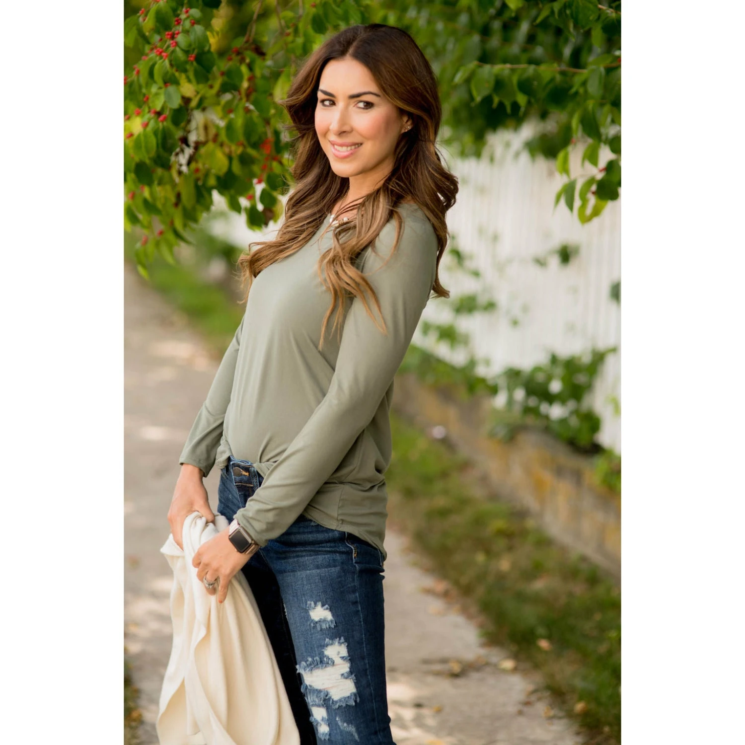 Everyone needs some basic long sleeve tees in their lives! This tee is extremely soft, and layers well. Don’t want to layer it up? Don’t worry! It looks great without layers, too! You are going to want one of every color!