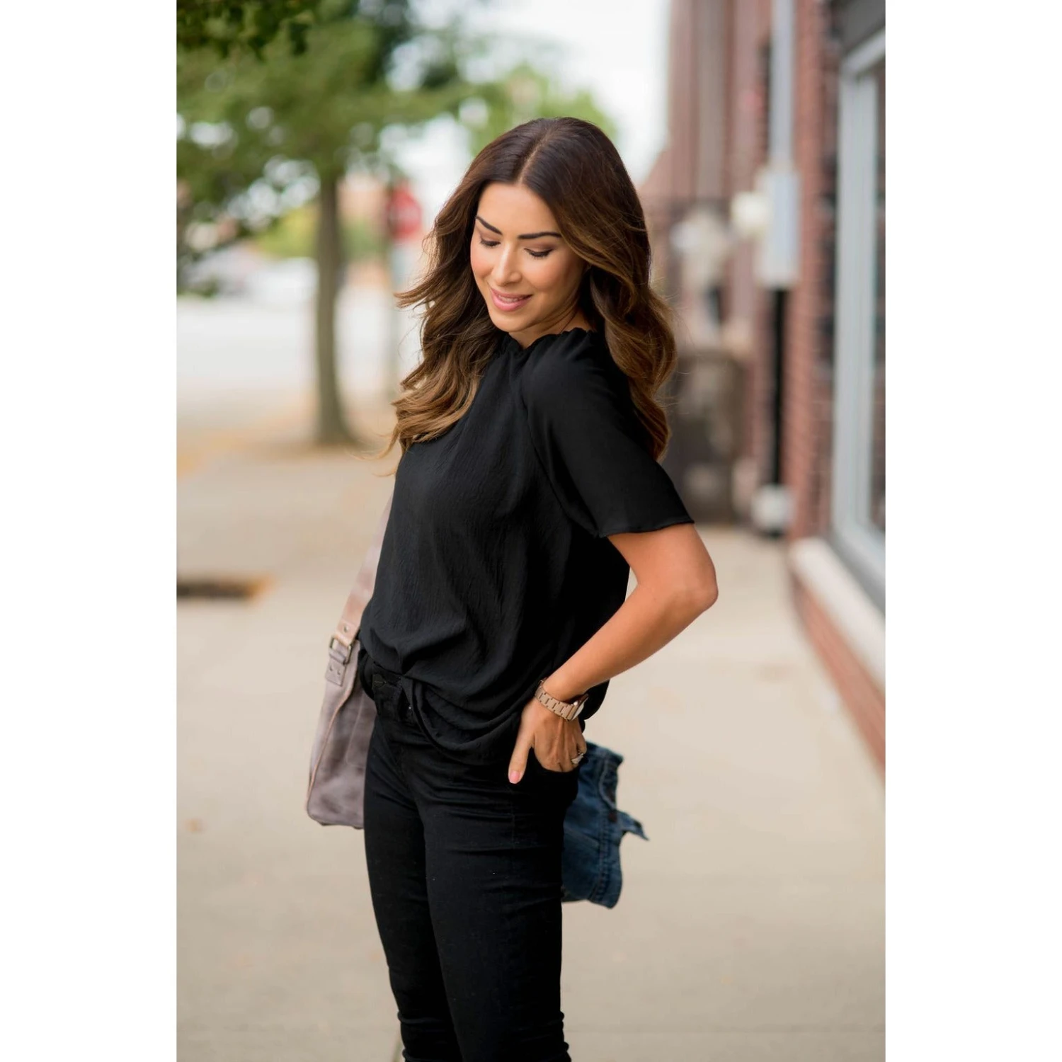 Looking for a blouse that goes with just about everything? Here it is! Betsey’s Cinch Neck Blouse is a must have! Pair it with Betsey’s Jeggings and throw on your favorite denim jacket or cardigan over it!