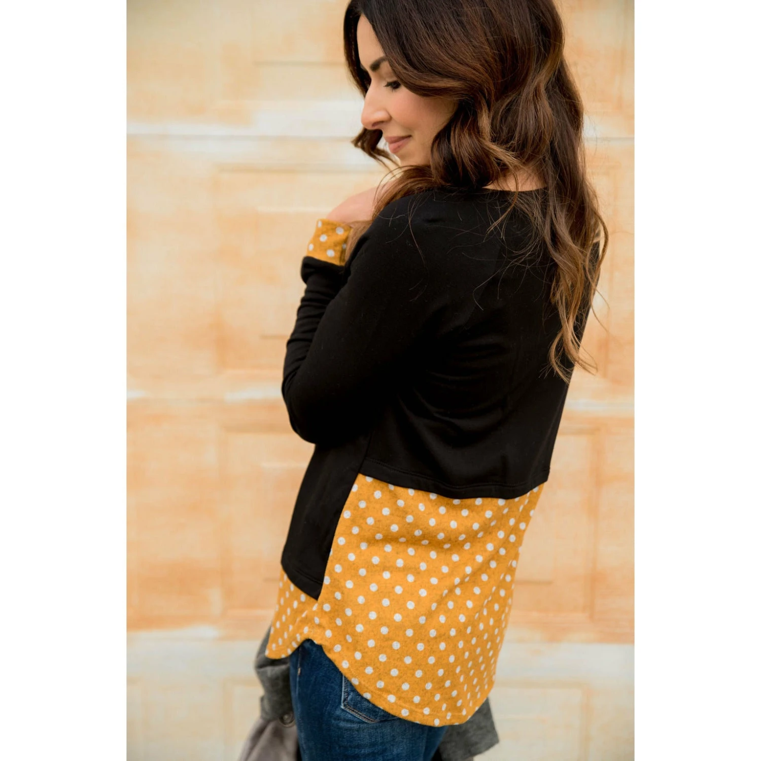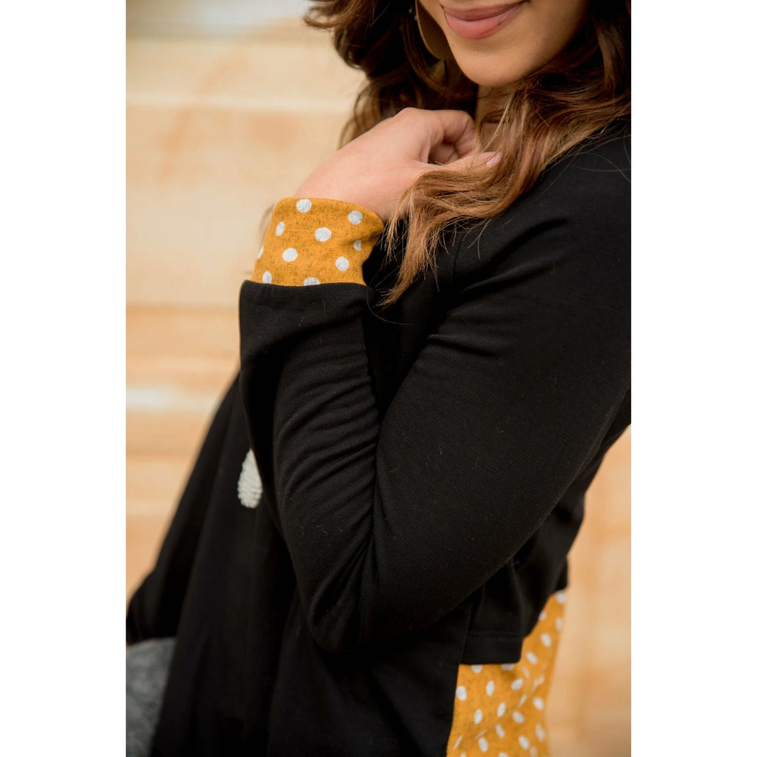 Where are all of our polka dot lovers? This tee is so simple yet so eye catching and can be paired with a bloom necklace to dress it up, or your favorite pair of leggings for a more casual look.