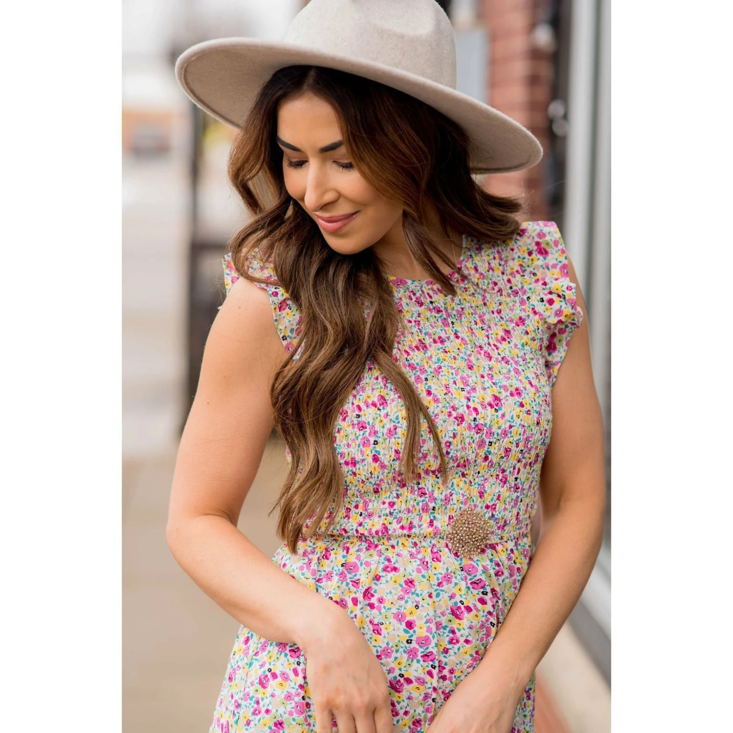 Bring some color to your life with this bright, floral print dress! This dress is perfect for Easter, work, date night or any other event you have! Pair with a cardigan on chilly days.