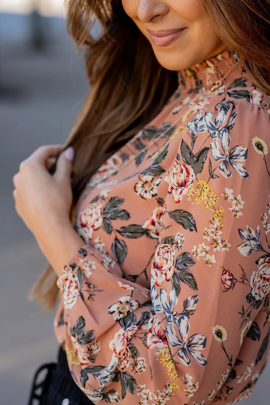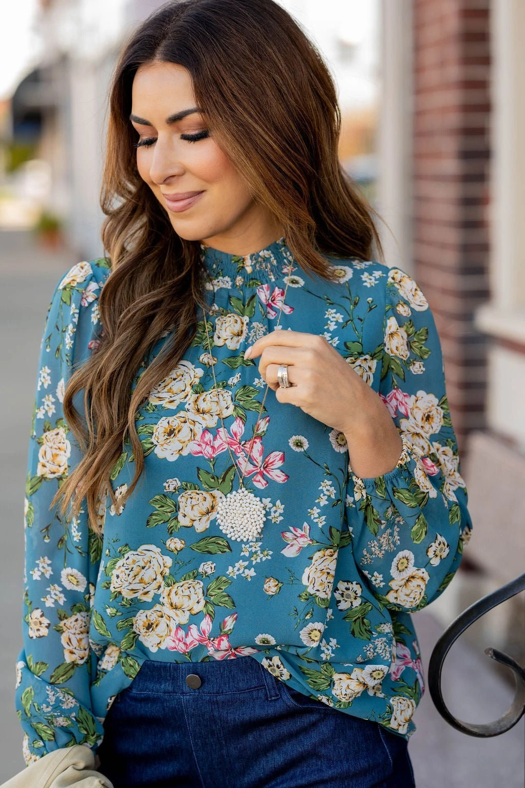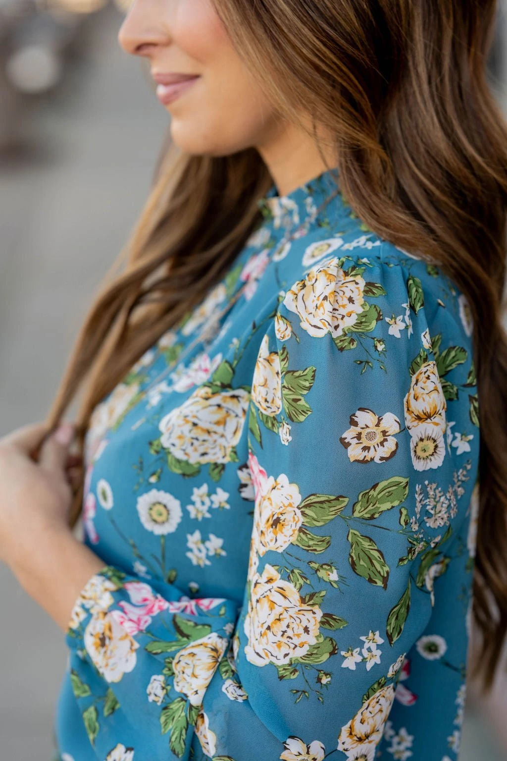 This floral blouse is unlike anything else in your wardrobe! The lightweight and breathable material makes this ideal for any season! Pair with your favorite denim, a bold colored pair of our Betsey’s Jeggings, or even just some leggings for a unique look!