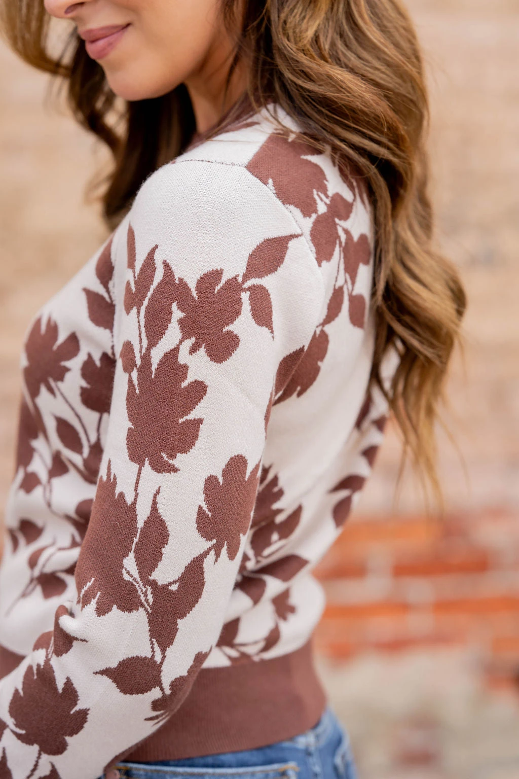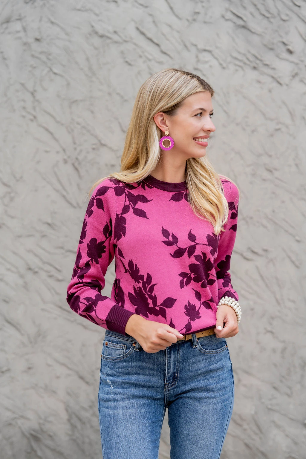 Sweater weather is upon us and we’re in love with this one! The floral print and the solid ribbed trim are so simple yet so chic! Pair this sweater with jeans, accessorize and add your favorite pair of shoes for a quick, stylish look! Chilly? Add a vest or jacket with ease!!