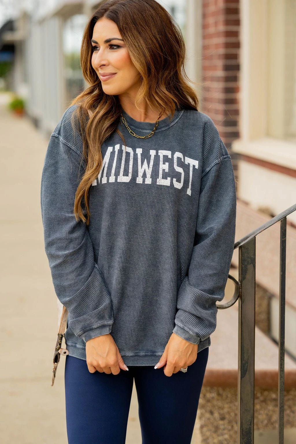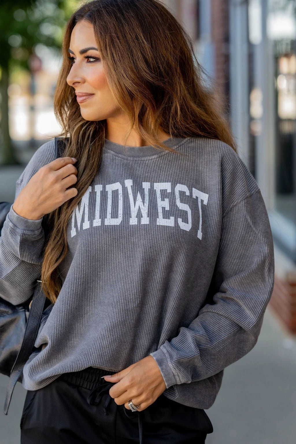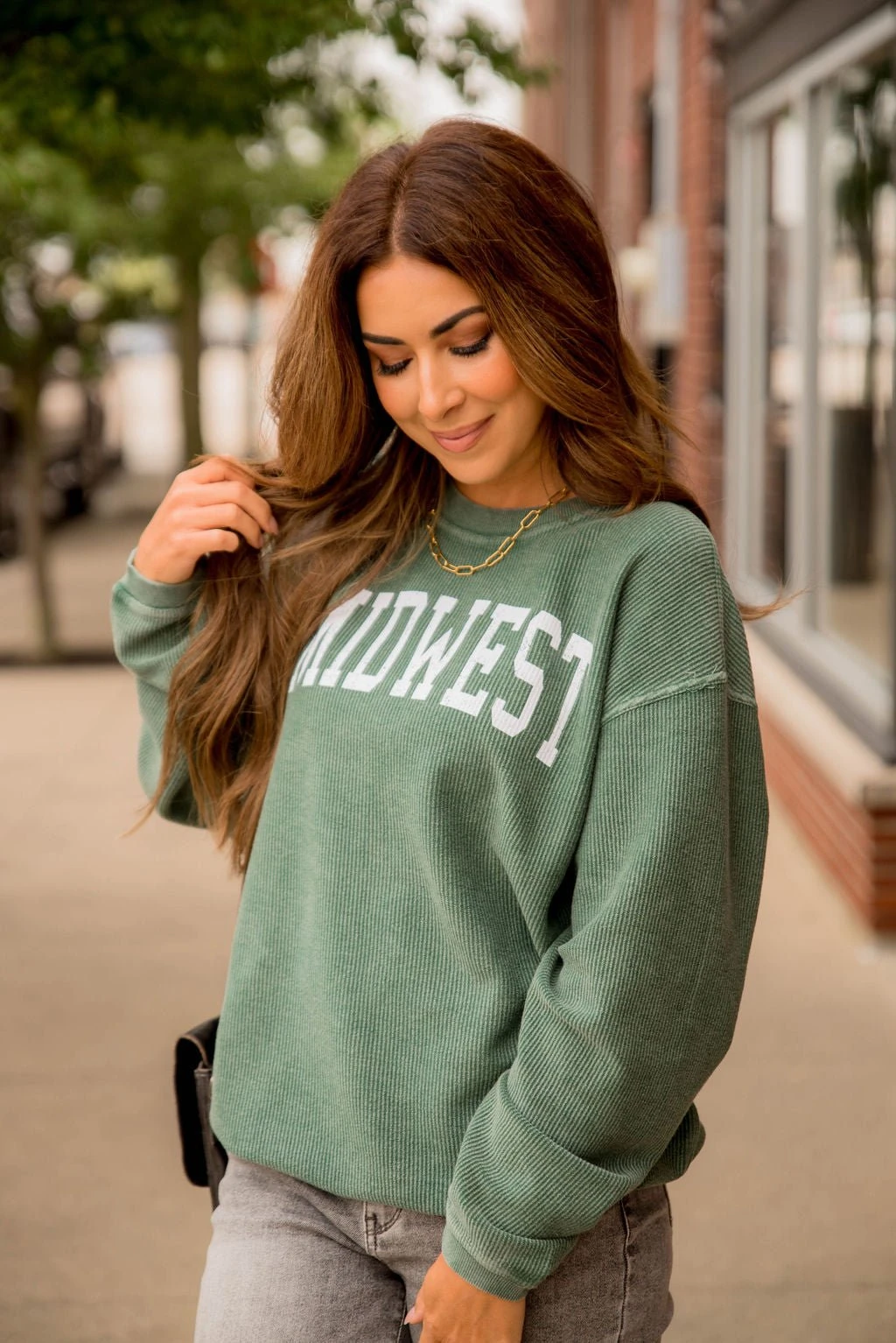 Crewnecks are a cold weather staple, so stock up while you can! Cute and comfortable, these graphic crewnecks look great with jeans and boots! This crewneck is elevated with a ribbed texture to really set it apart from the rest!