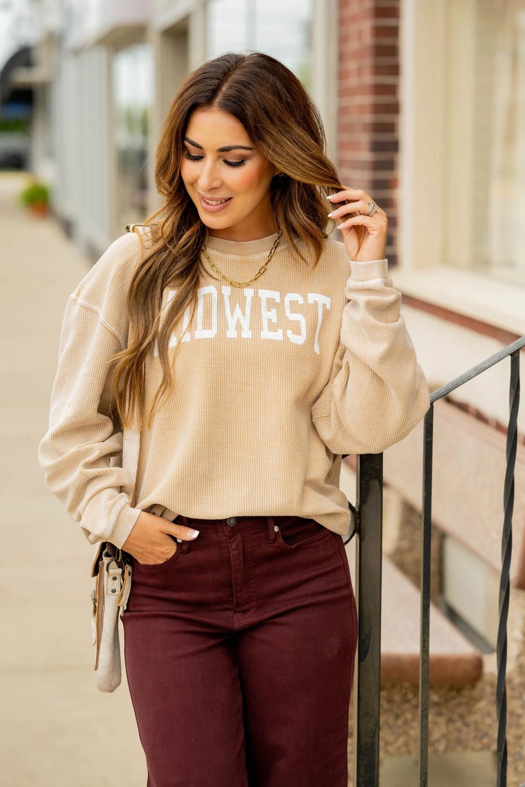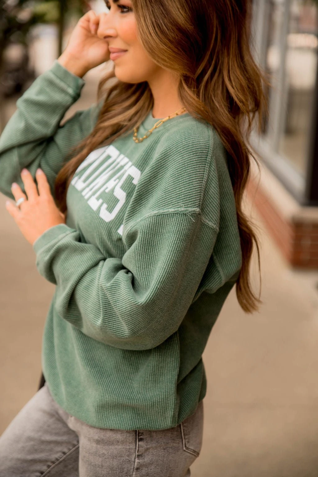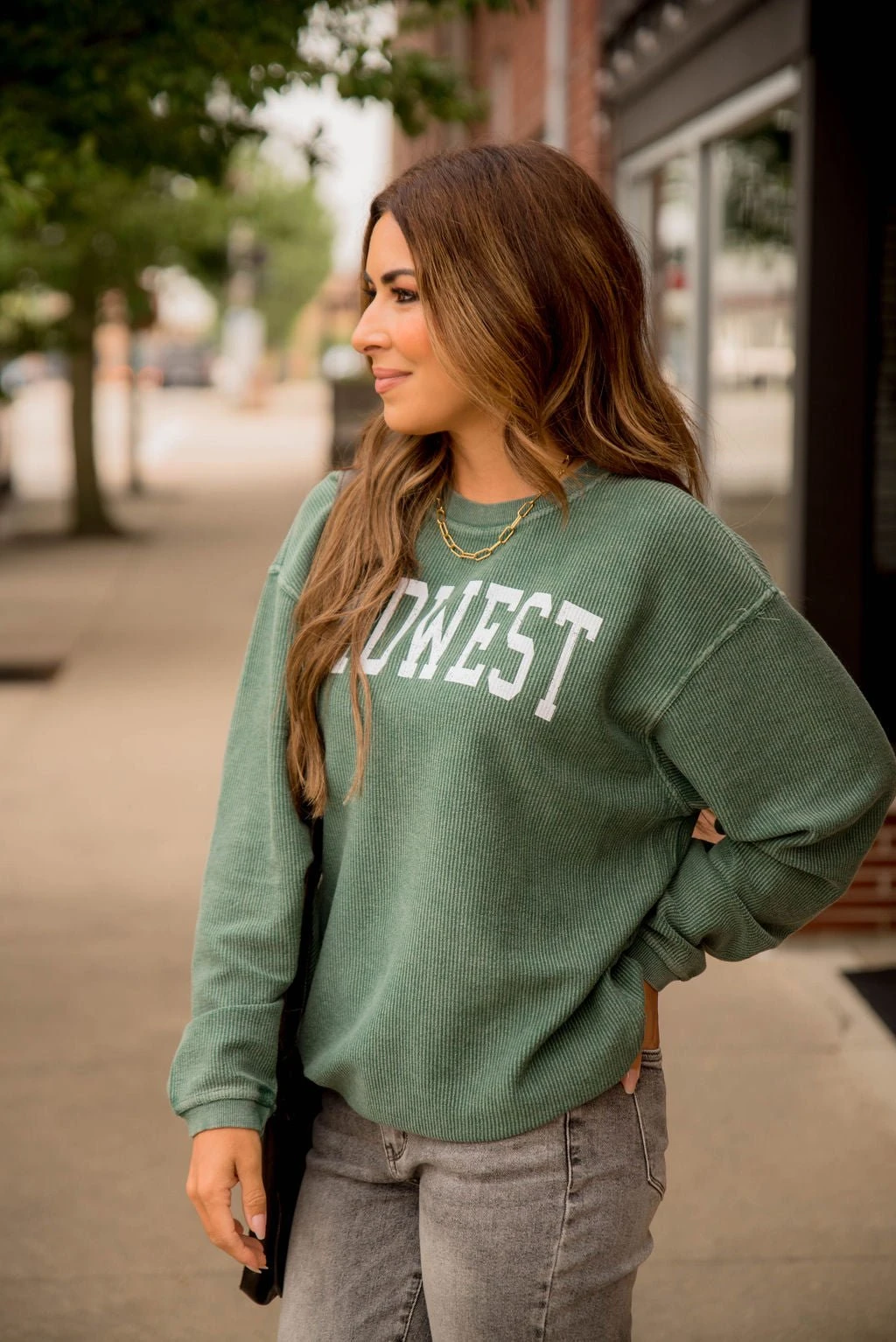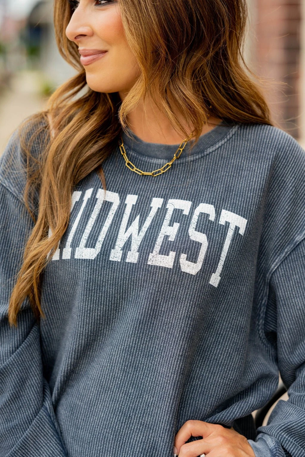 Crewnecks are a cold weather staple, so stock up while you can! Cute and comfortable, these graphic crewnecks look great with jeans and boots! This crewneck is elevated with a ribbed texture to really set it apart from the rest!