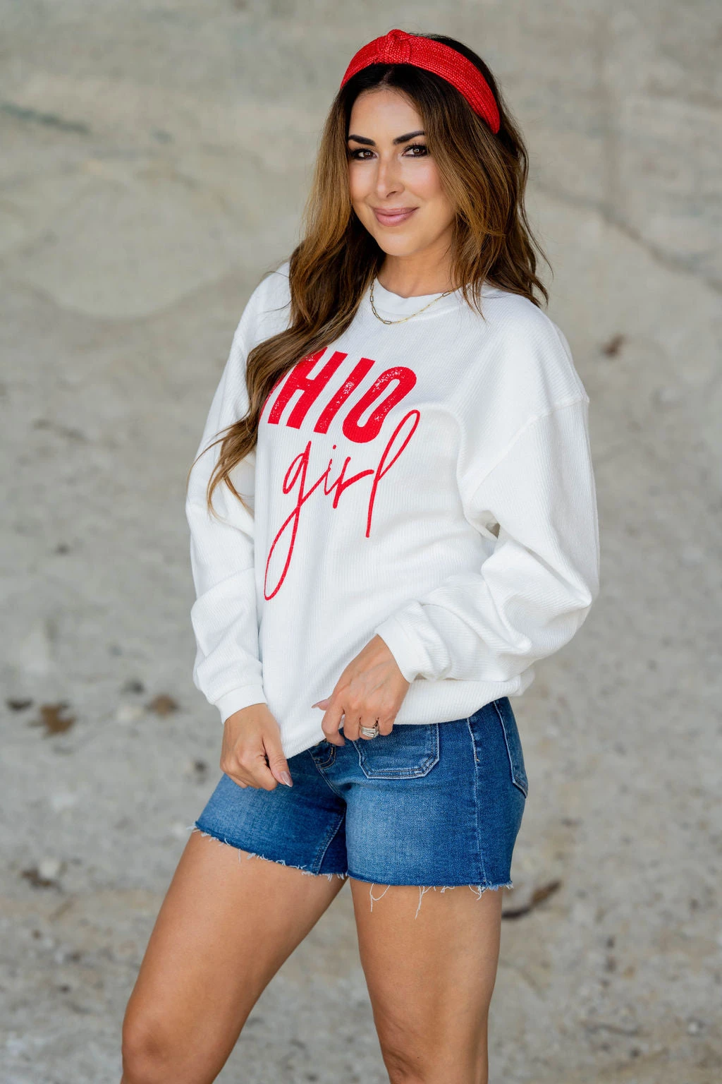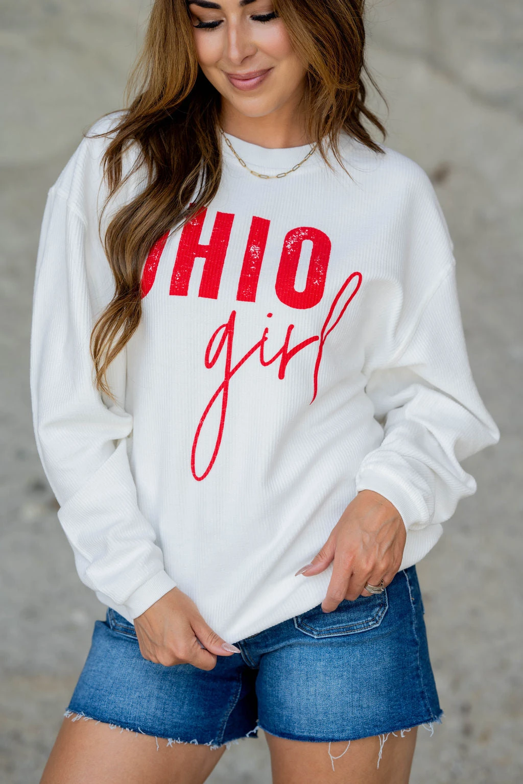 Crewnecks are a staple for every girls wardrobe, so stock up while you can! Cute and comfortable, these graphic crewnecks look great with shorts and flipflops or jeans and boots! This crewneck is elevated with a ribbed texture to really set it apart from the rest!