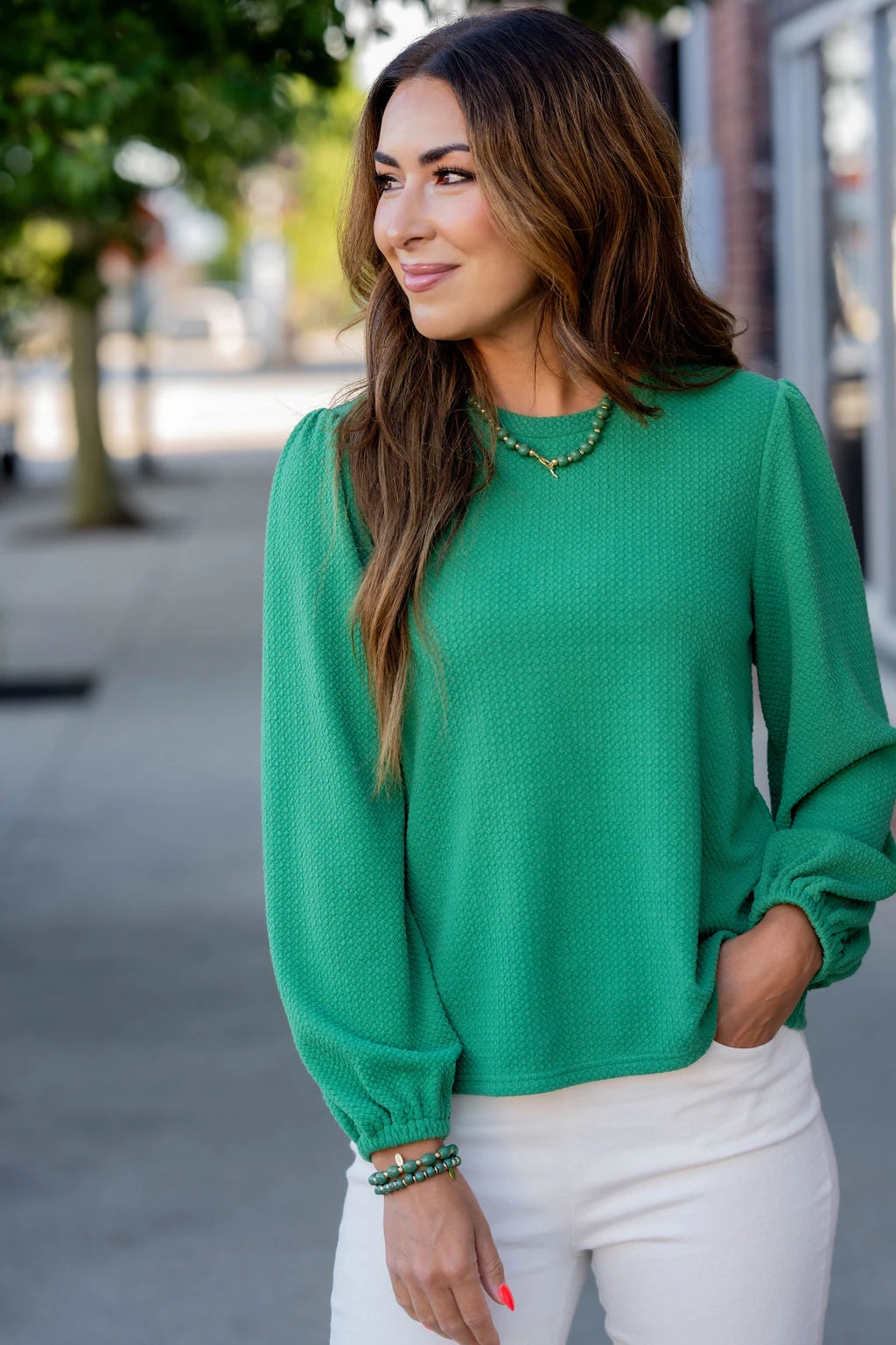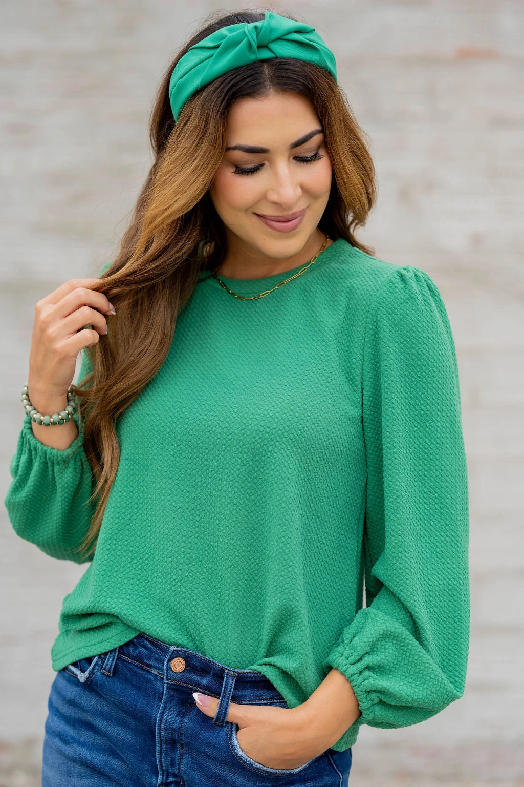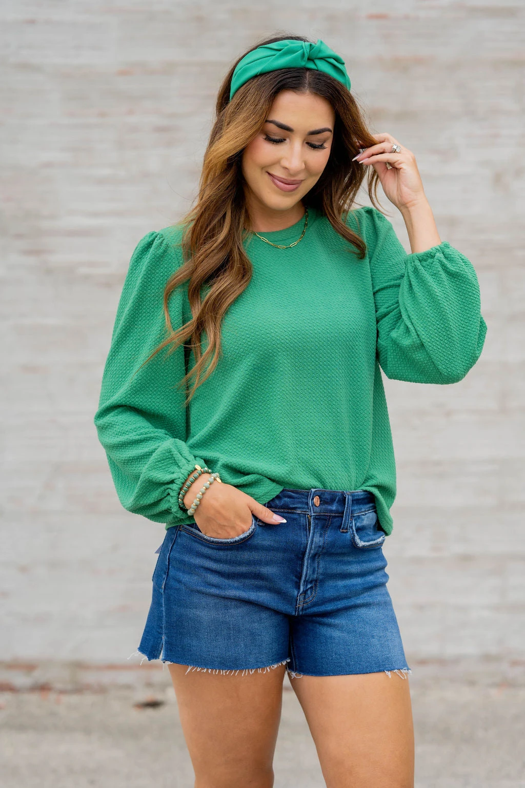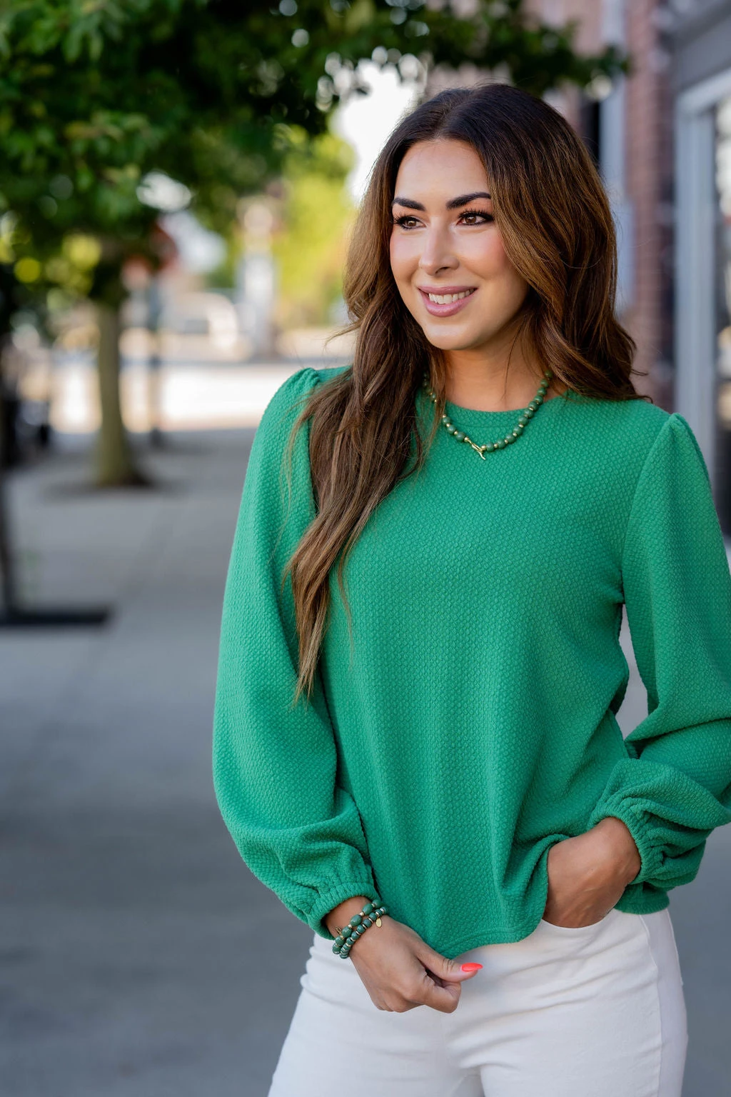 A cinched-sleeve blouse with a fun and bold texture to set it apart from the rest! We love that this can be worn with shorts or tucked into a skirt in the warmer months or with denim, joggers, or a bold-colored pair of Betsey’s Jeggings in the cooler ones! This can be dressed up or down to match your style!