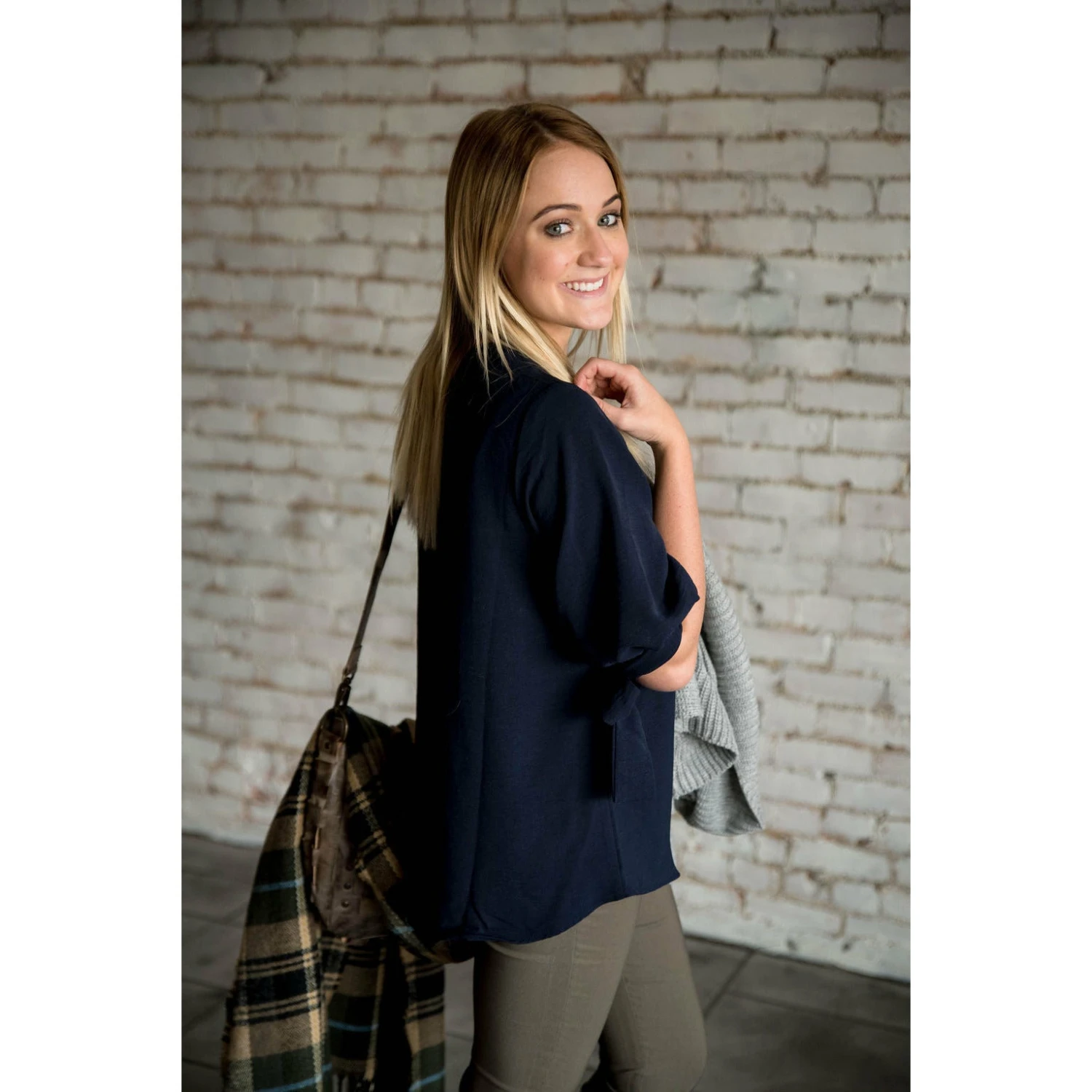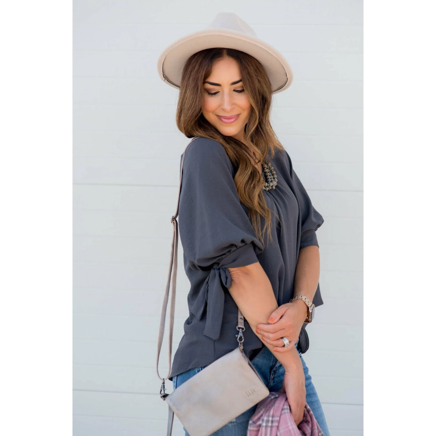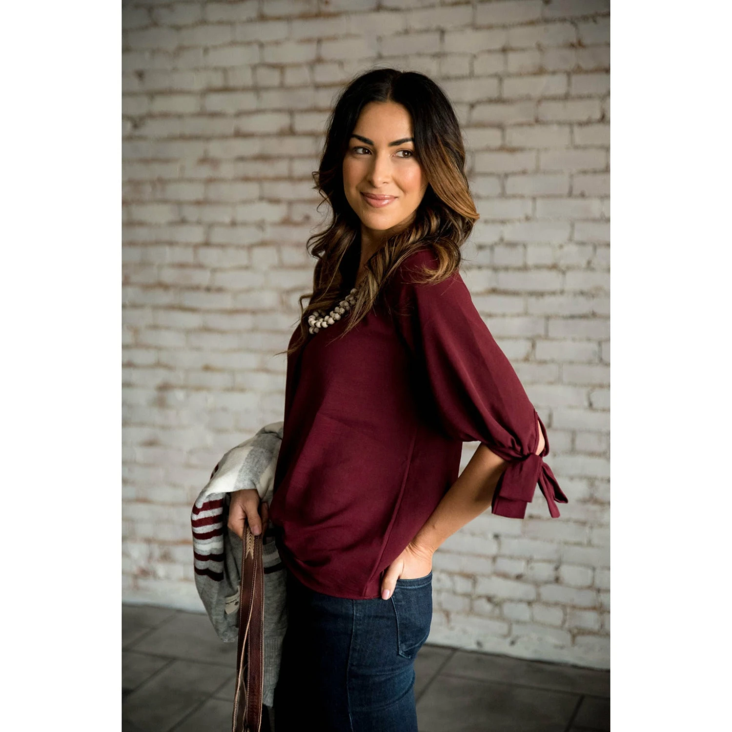 This blouse you need to add to your closet! The bows on the sleeve give this blouse a cute and classy look!