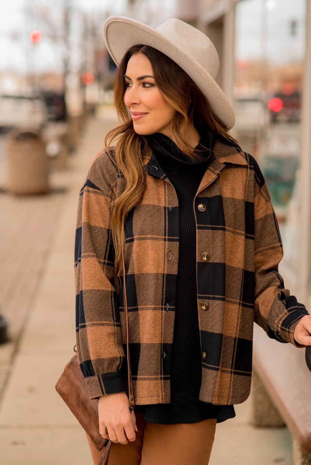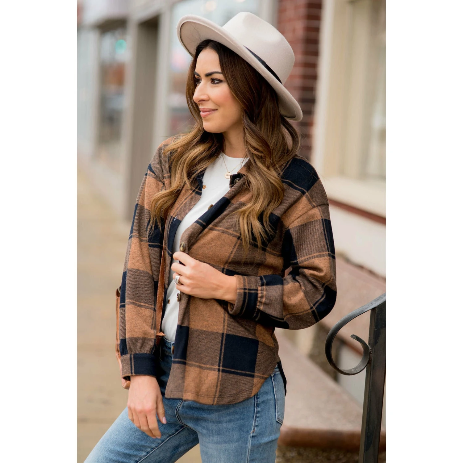 This is the perfect addition to your cold weather collection! A cross between a flannel shirt and a jacket, this is just the right thickness for those cool evenings. Football games and bonfire nights are going to need this incredibly soft, but warm, shacket!