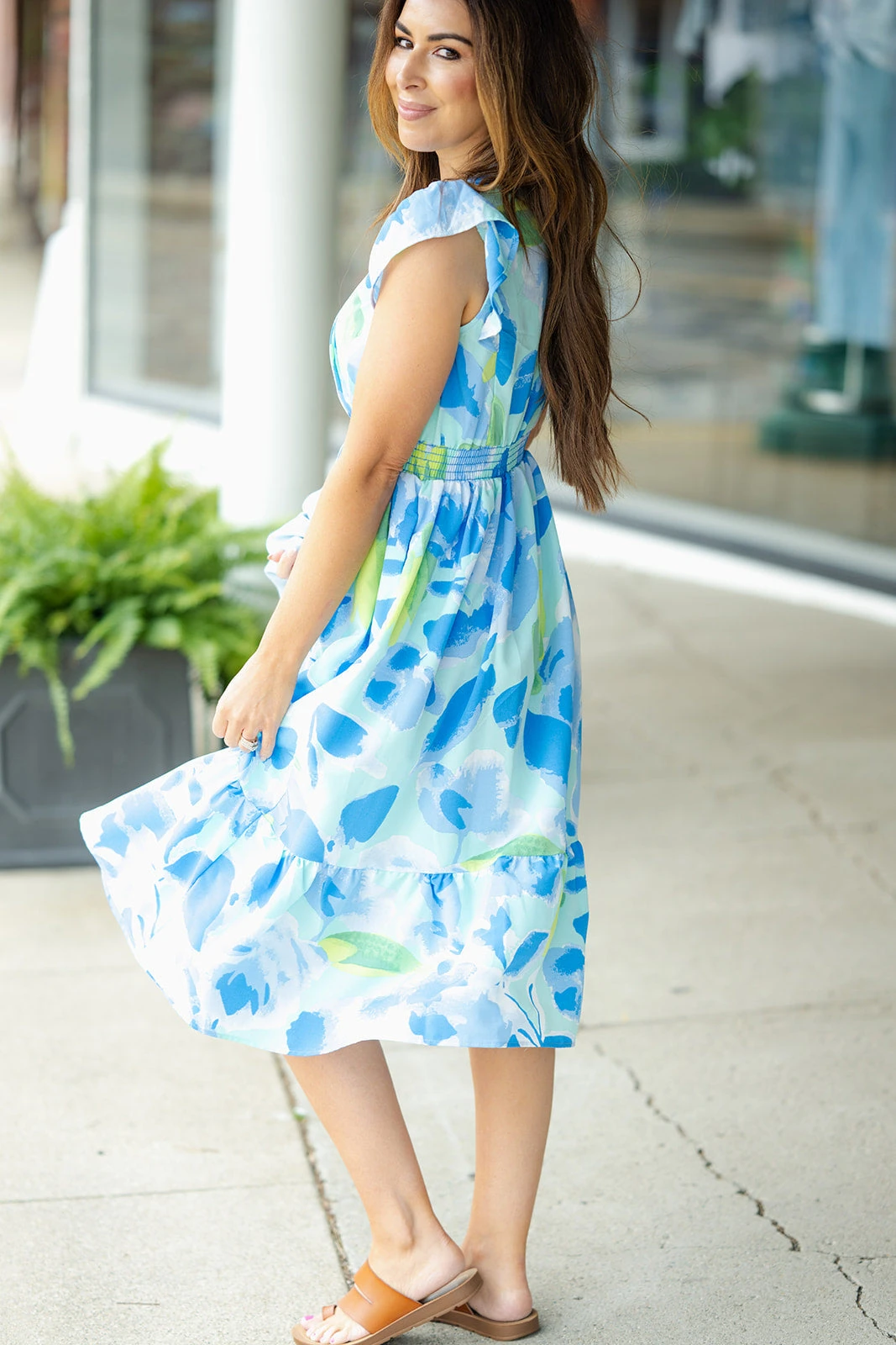 Be the first to review “Brush Stroked Petals Ruffle Accented Midi Dress” Cancel reply