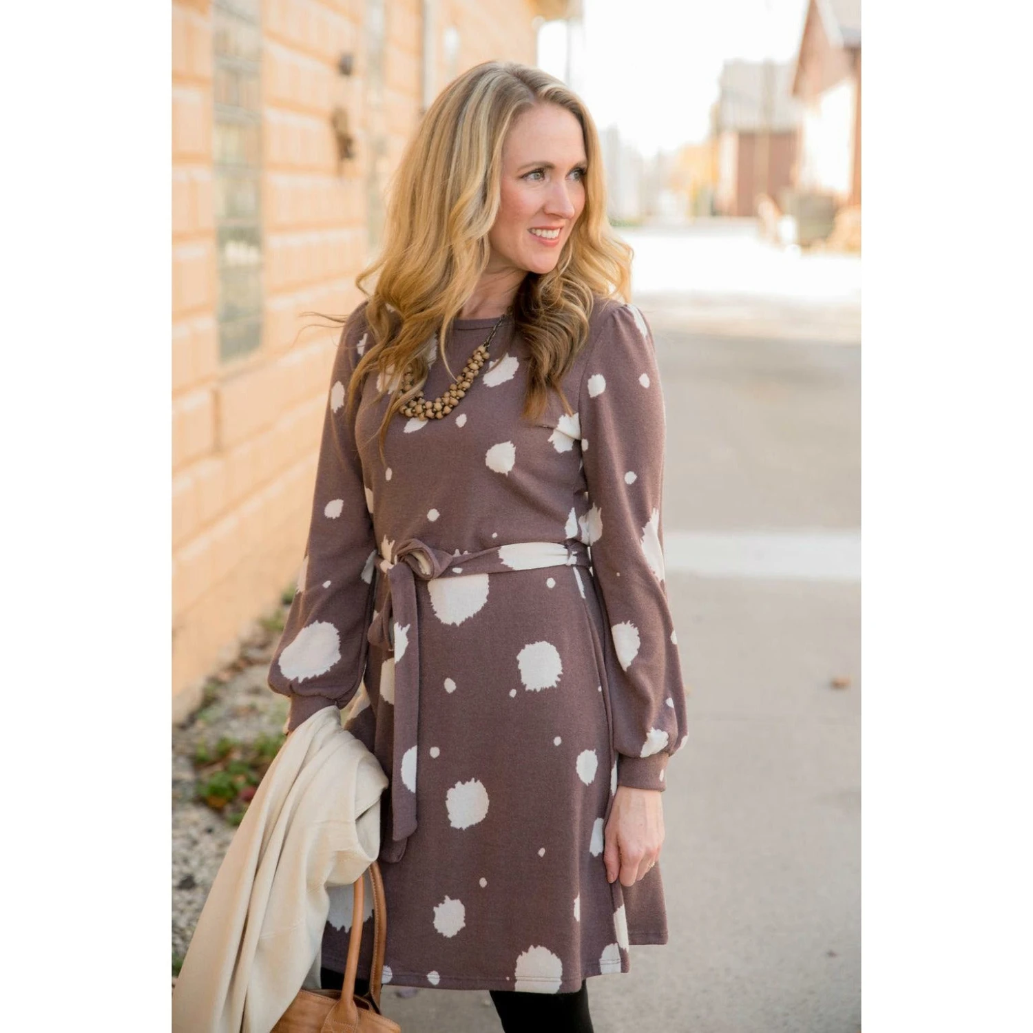 Check out the Brushed Dot Tie Dress! With cuffed sleeves and a tie at the waist, this dress is one you will fall in love with! Wear this dress with your favorite pair of leggings and a cardigan for a great look you will love!
