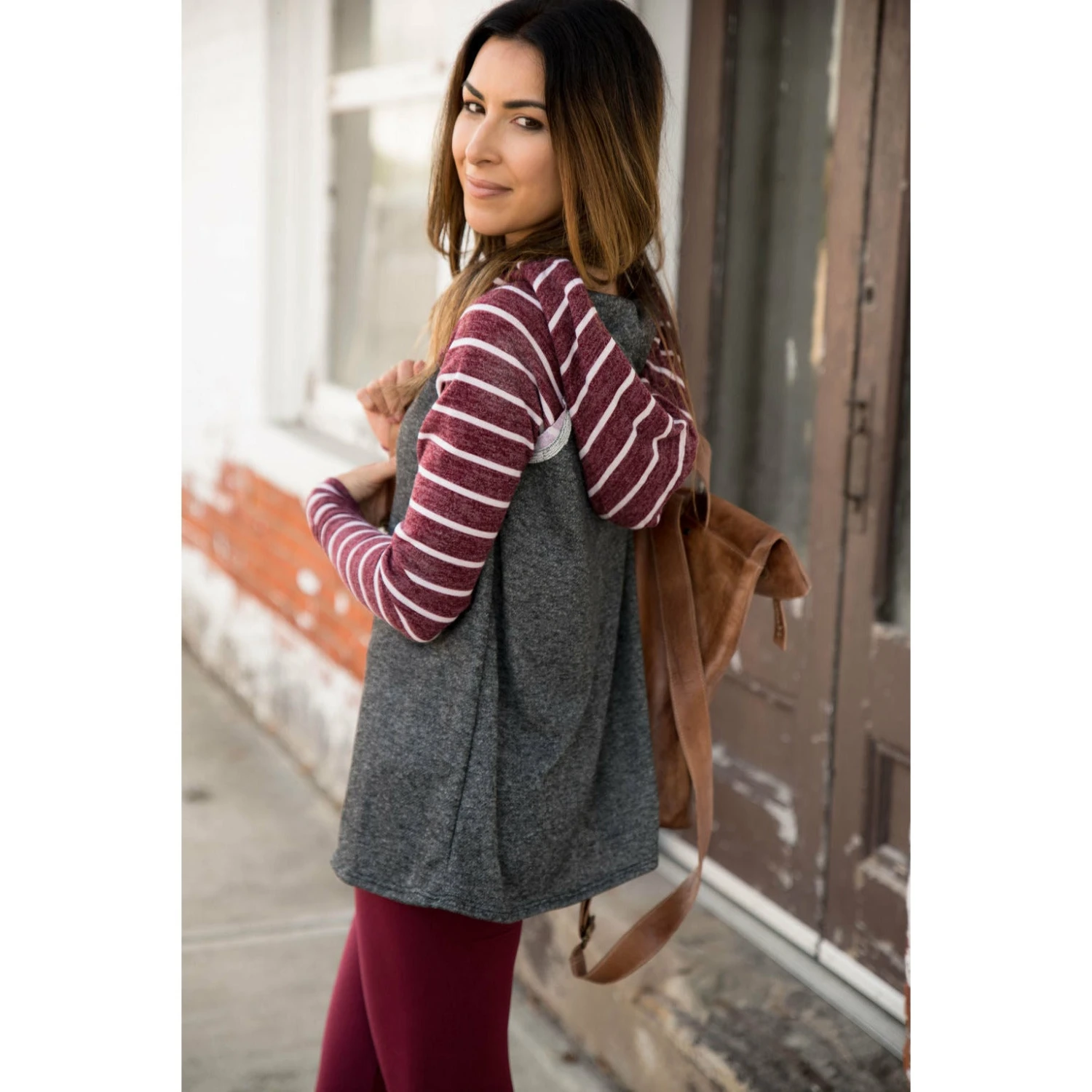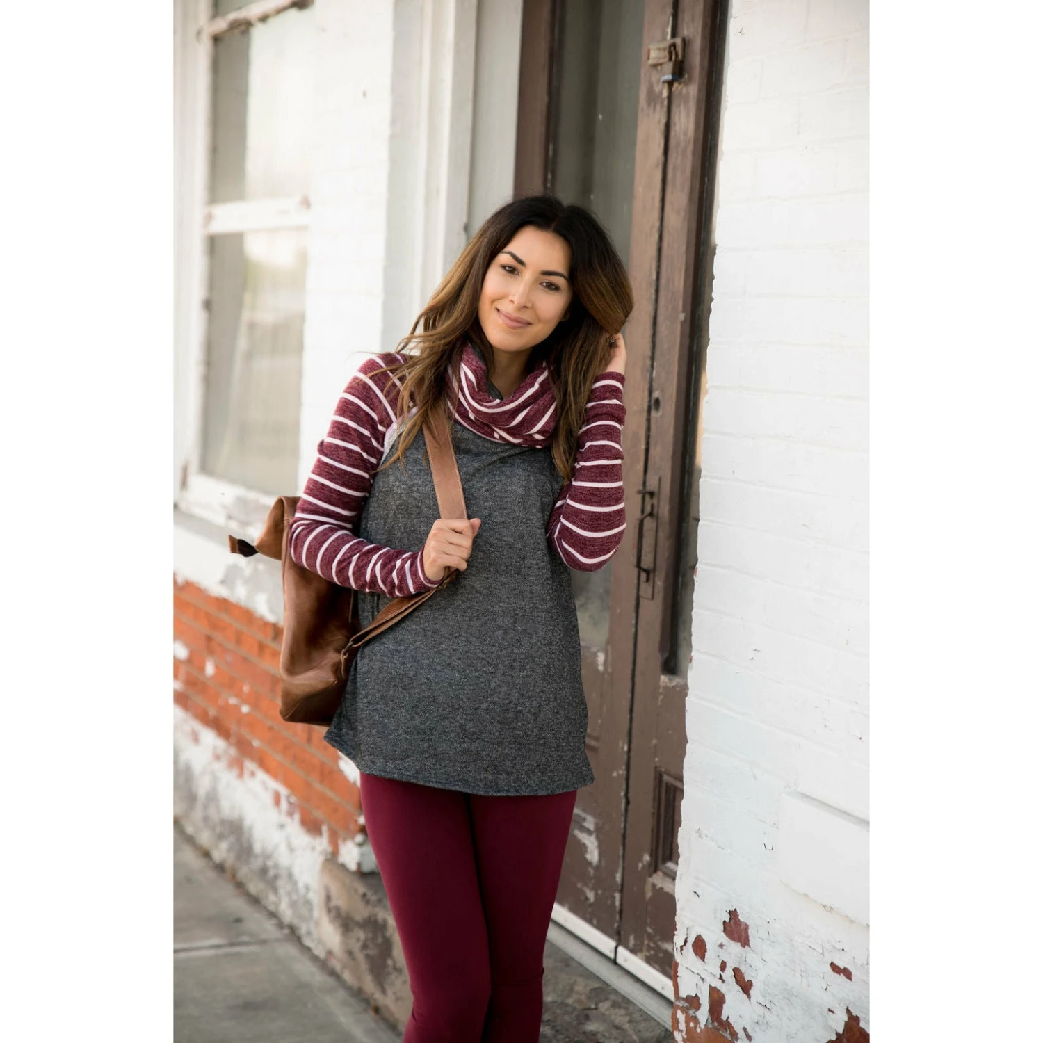 We love hoodie weather! This sweatshirt combines a hood with a cowl neck look in the front.