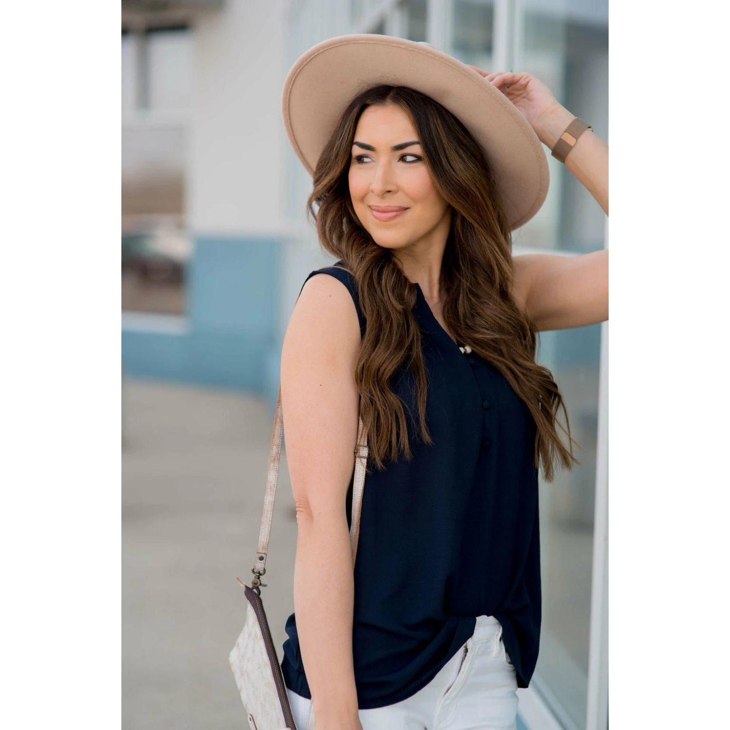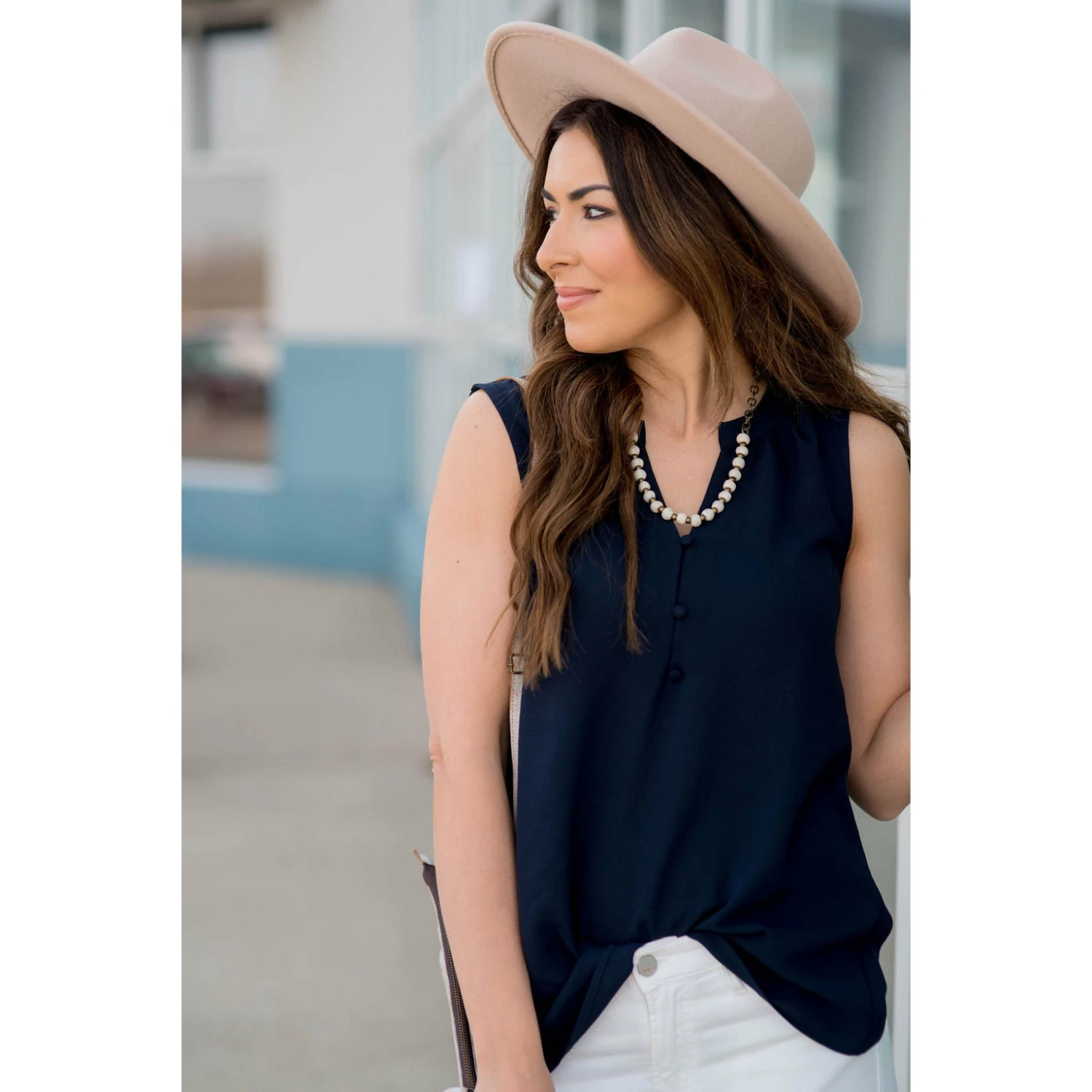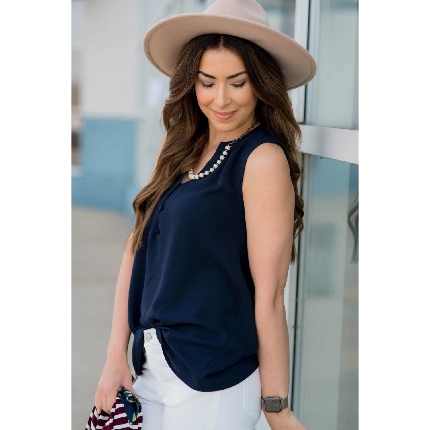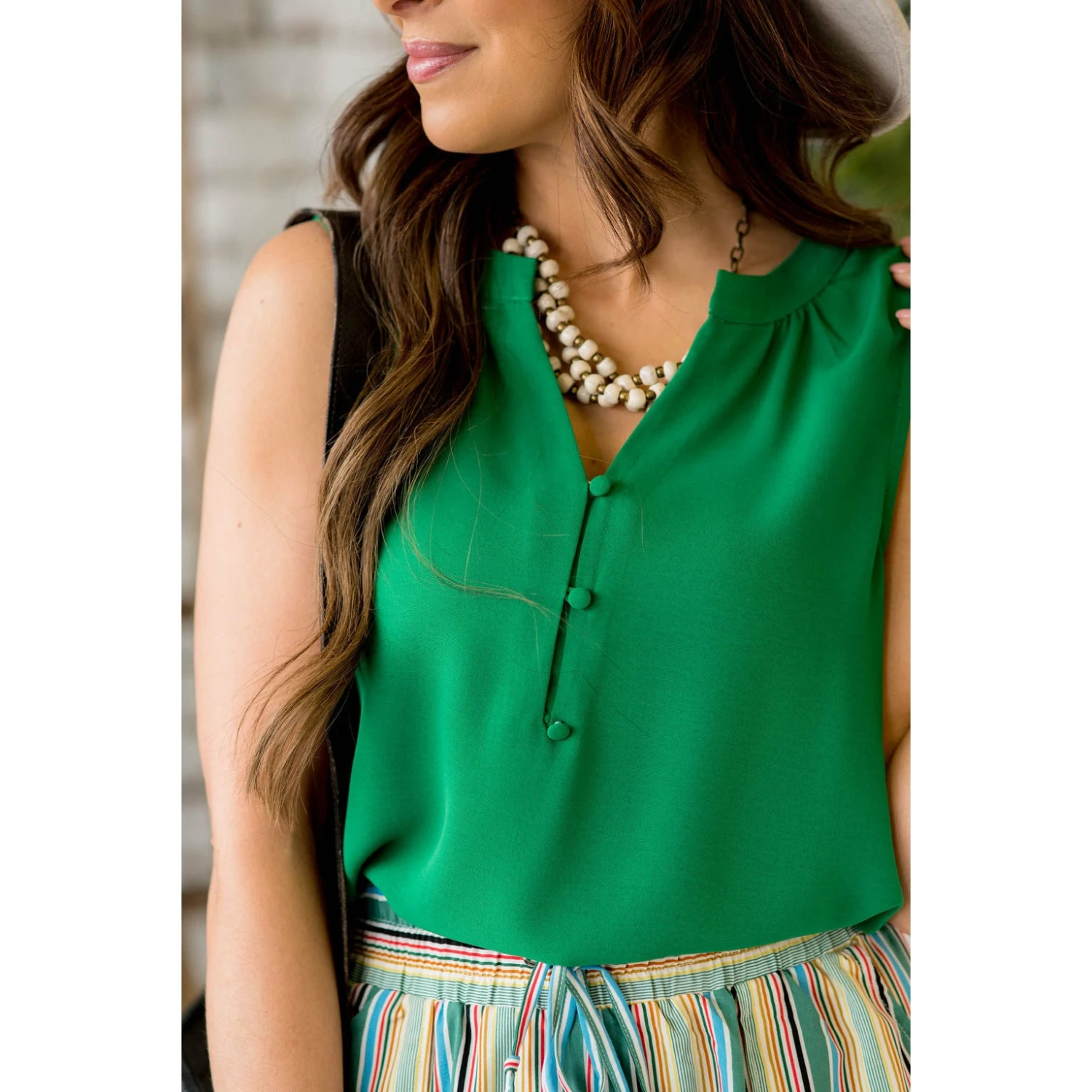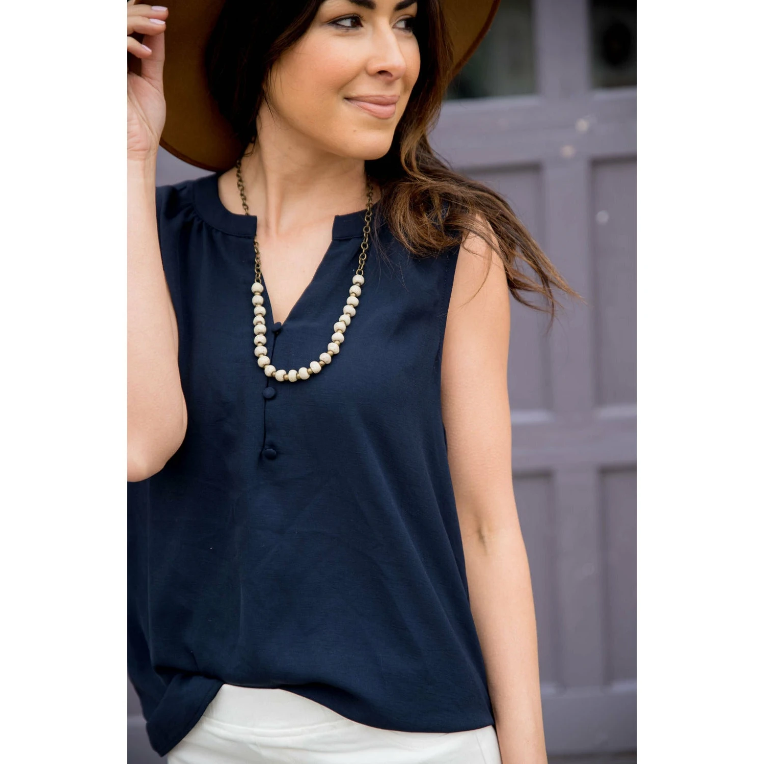 You will be thrilled with our button tank. It’s a great piece to add with capris to complete your outfit.