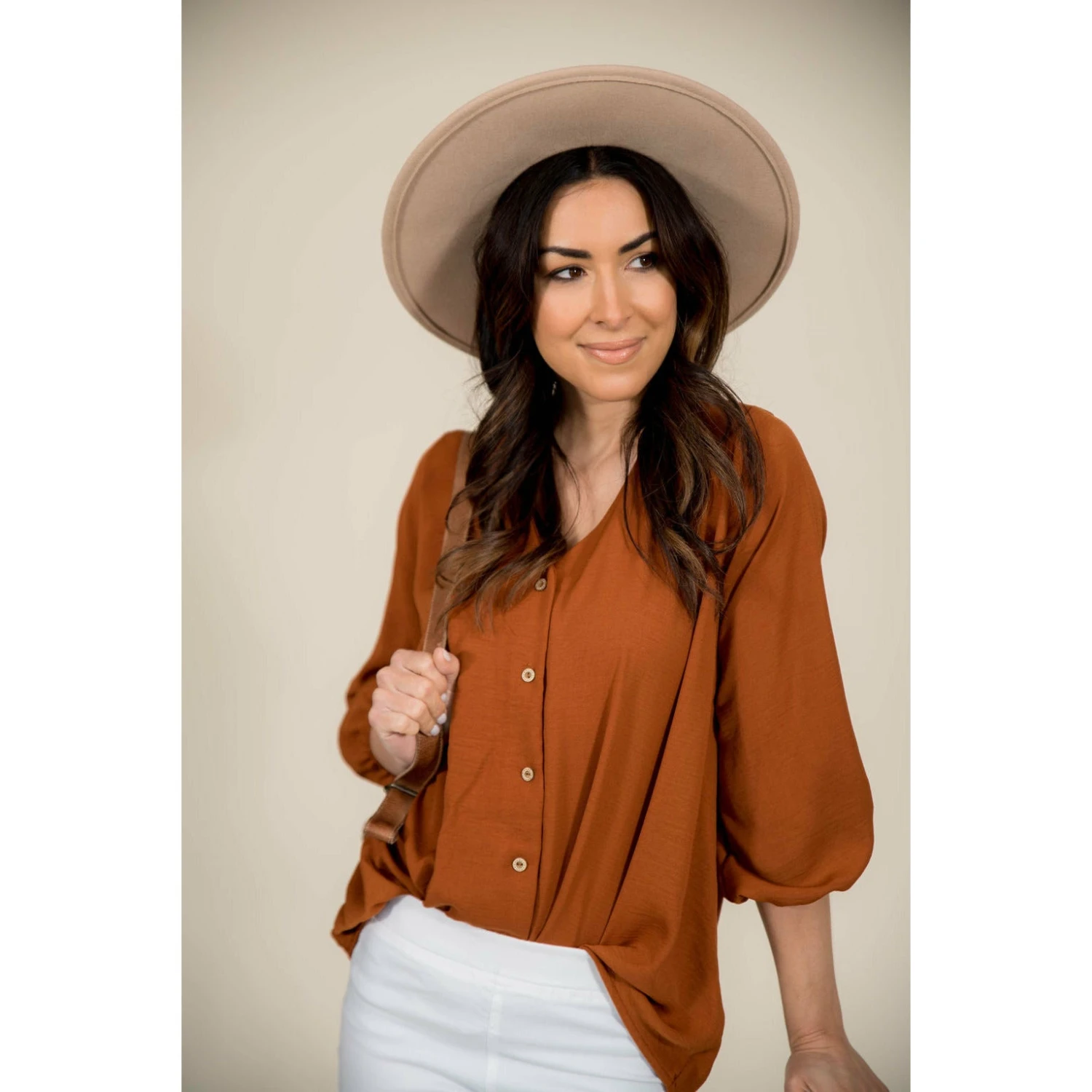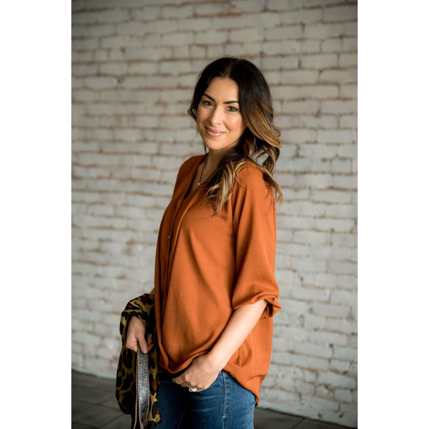 This wrap v-neck blouse is just what you need to add to your closet! It is light weight and can be layered under a scarf or cardigan!