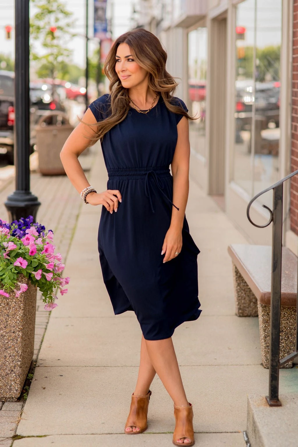This is the perfect dress for any event or occasion and can be worn alone with sandals or wedges in the warmer months or paired with a cardigan, blazer, or jacket and booties in the cooler ones! You are sure to turn heads wherever you go! The flowy style with the drawstring tie waist makes this ideal for all body shapes and sizes and can be dressed up or down with ease!