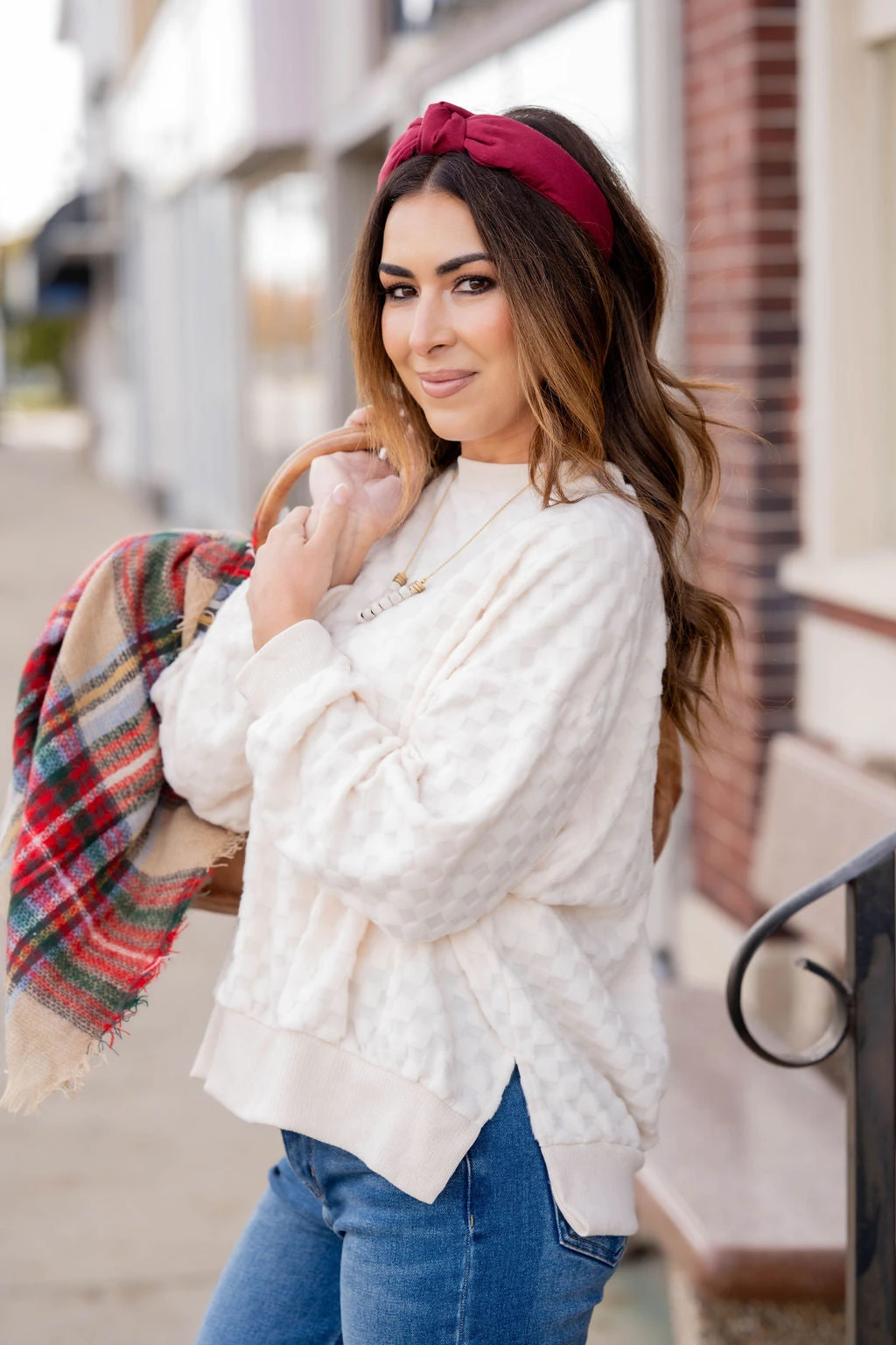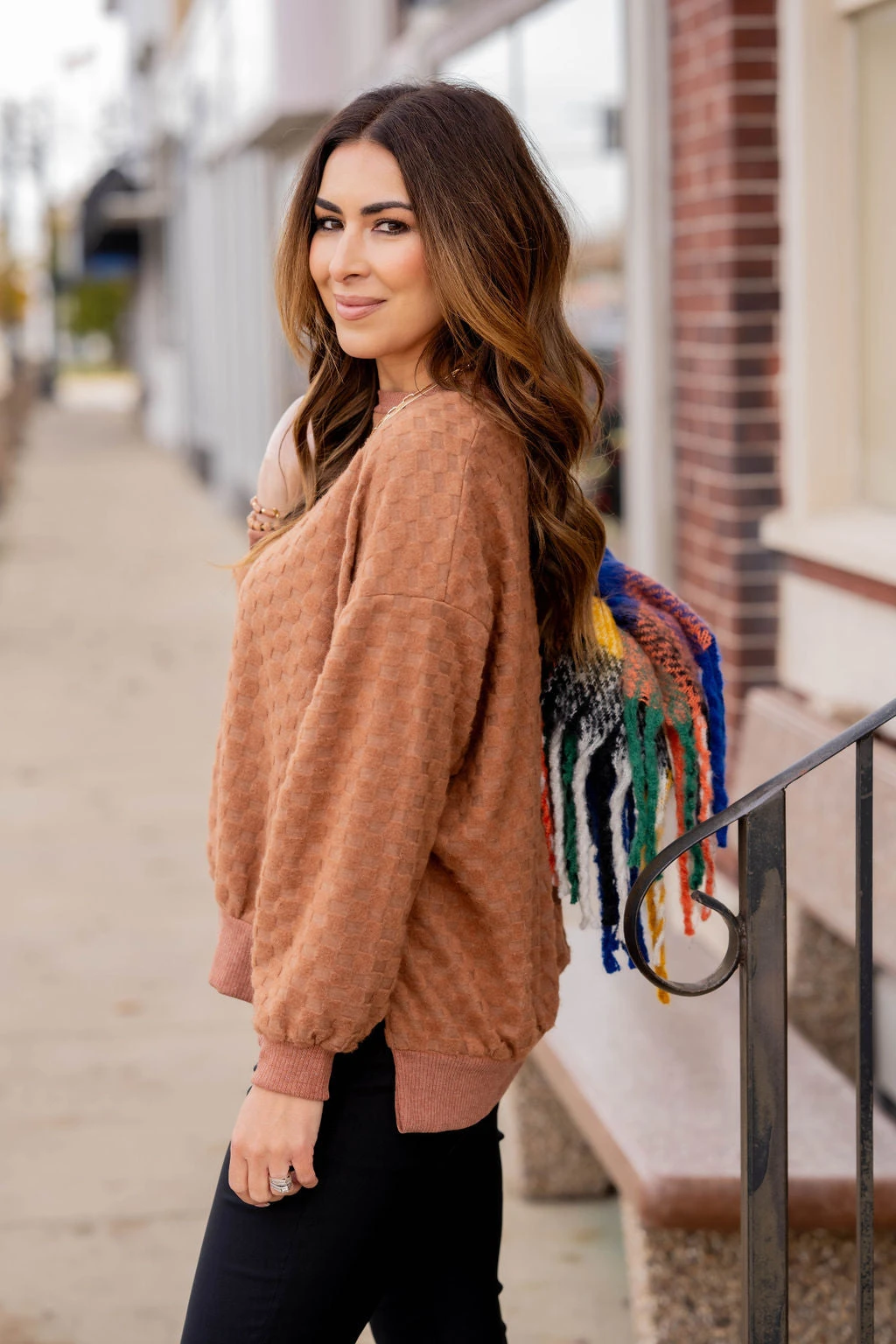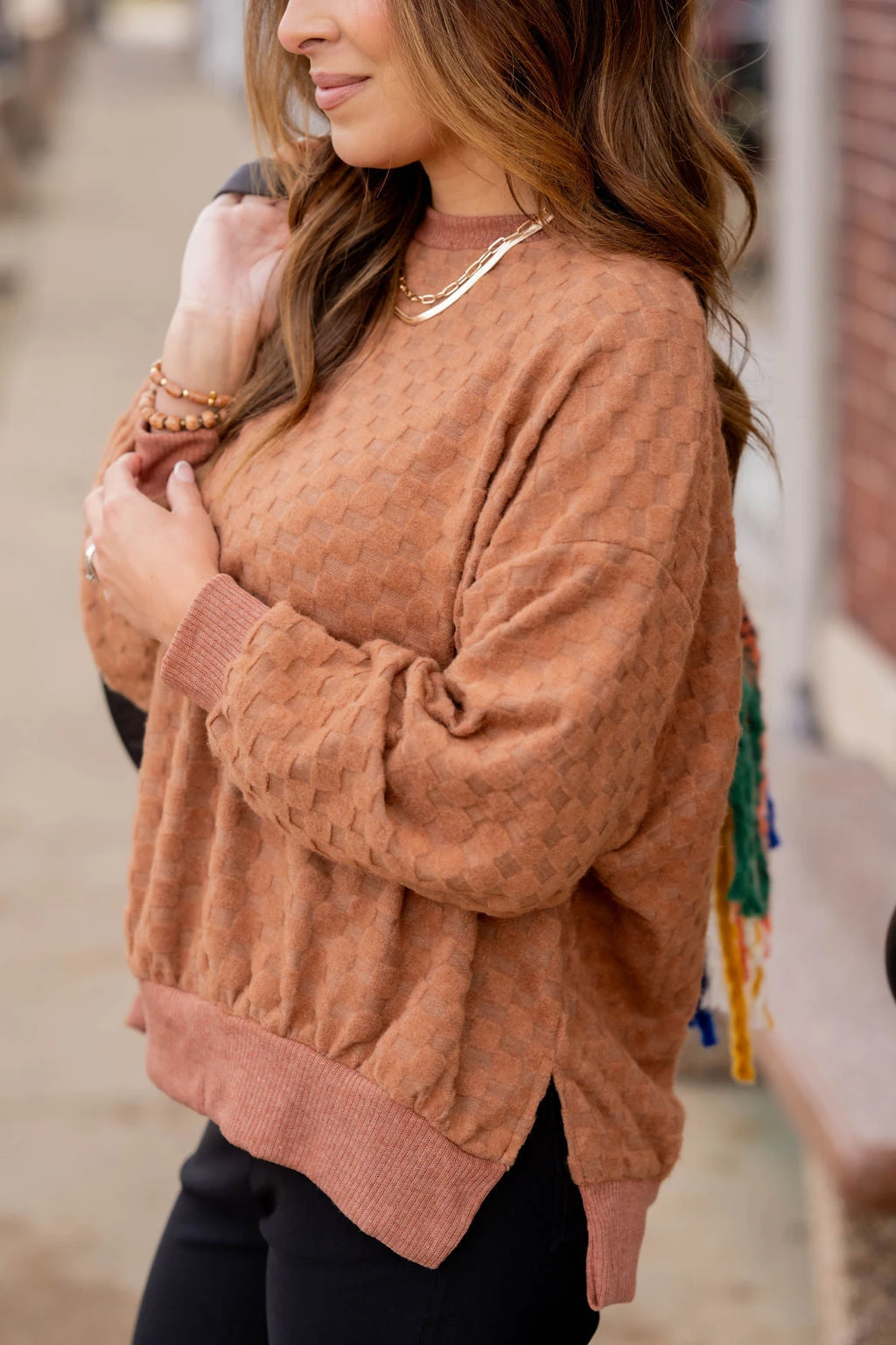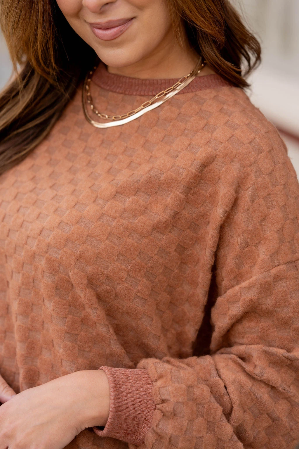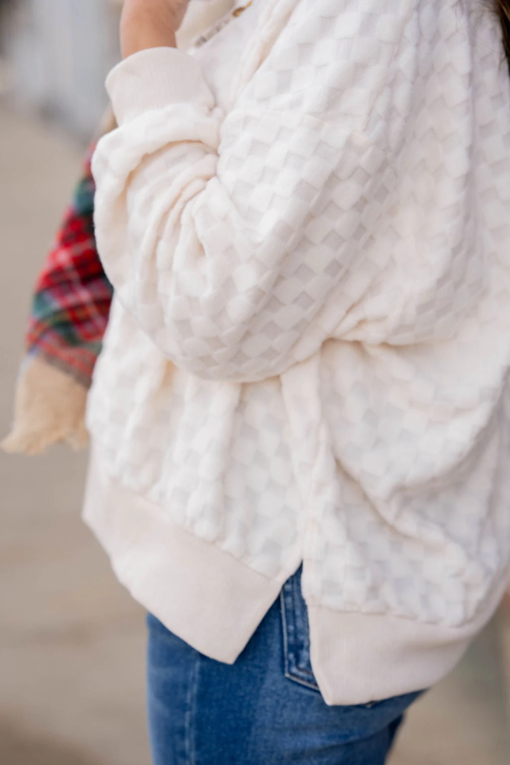 Sweatshirts are an essential part of every girls wardrobe! This sweatshirts features a textured checkered print and side slit detailing! Pair with a skirt, denim, joggers, or a pair of our Betsey’s Jeggings for a quick and chic look! We love that this can be dressed up or down for wherever the day takes you!