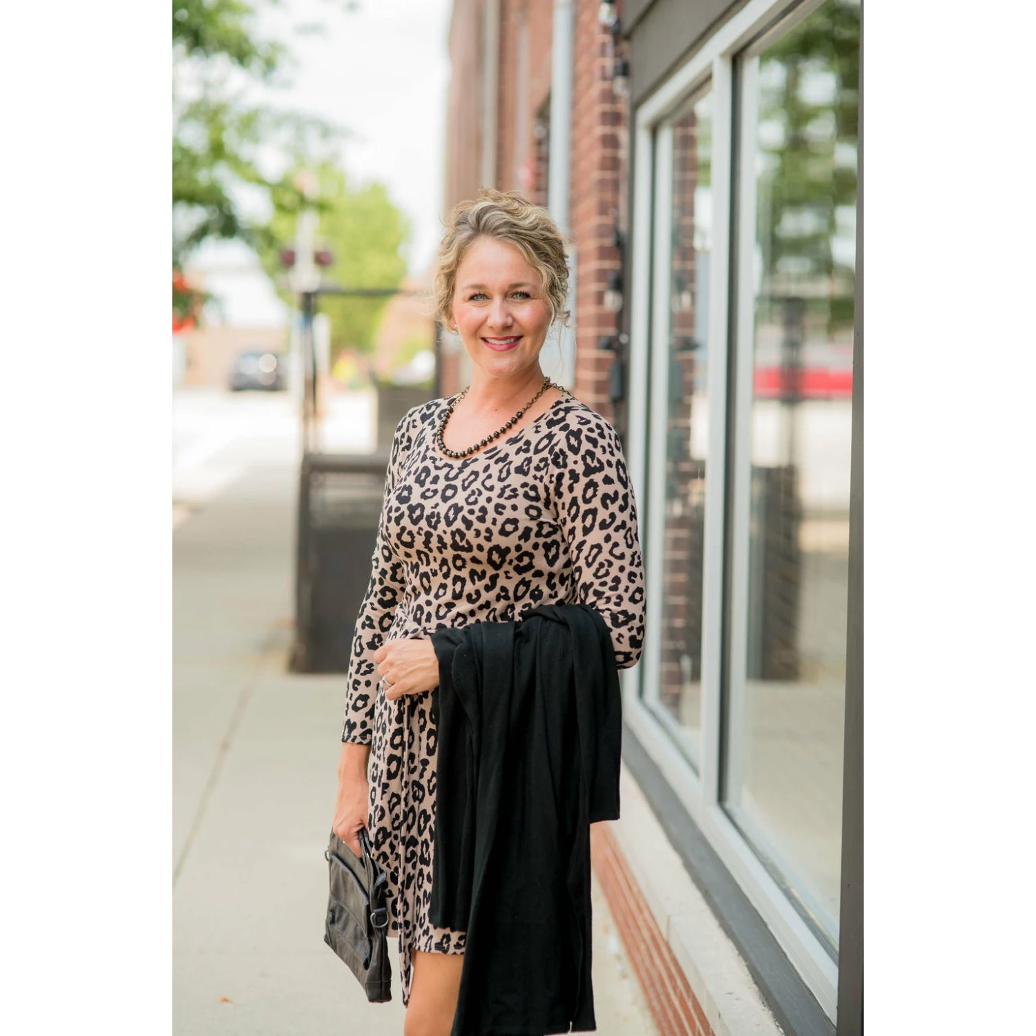 Our Cheetah Tie Dress is a trip on the wild side you want to take! This dress is one you will want to wear all season long! Pair with leggings and a cardigan for an amazing look!