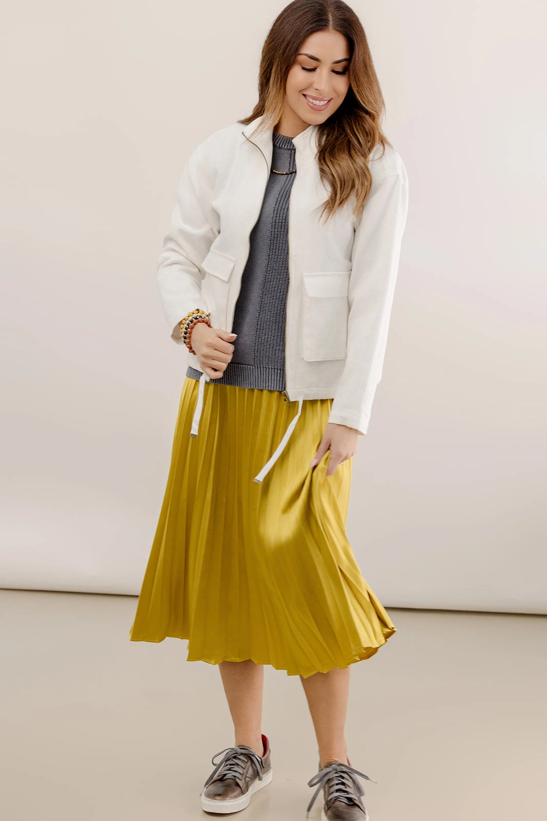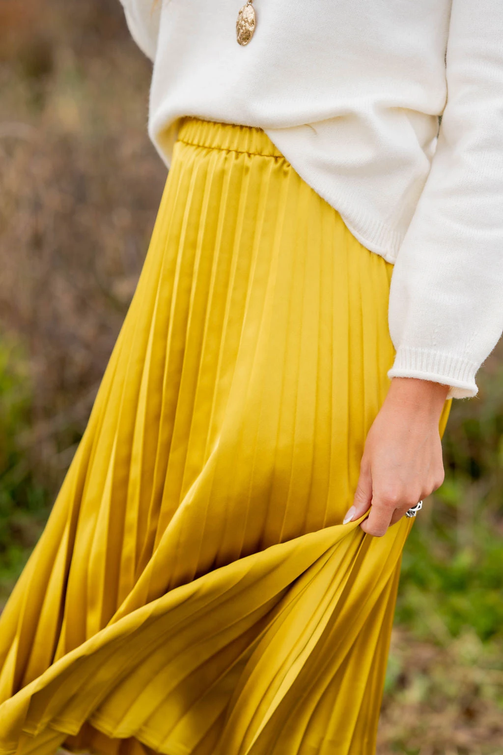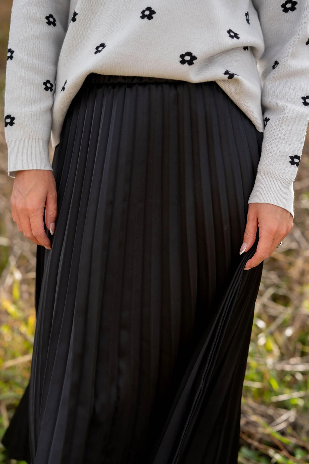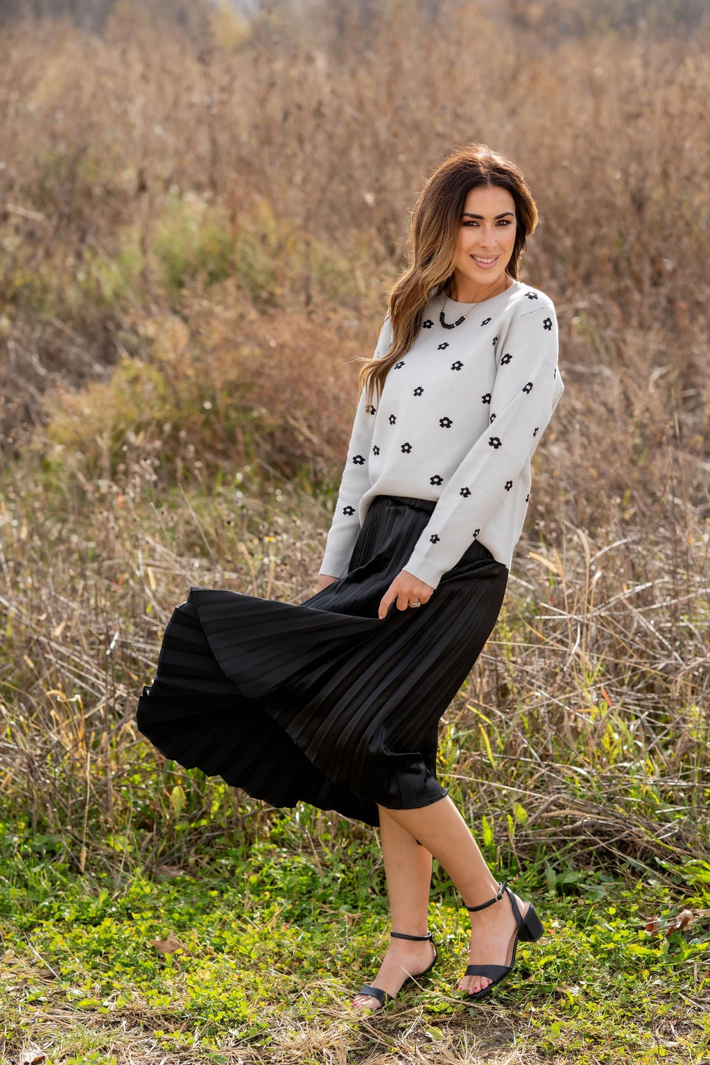 Right in time for the upcoming holidays, but looks great all year round! This midi skirt has such an elegant look with the pleated look and the flowy fit. We love this with a blouse or a sweater but this also could be dressed down with a graphic tee! The possibilities with this one are truly endless!