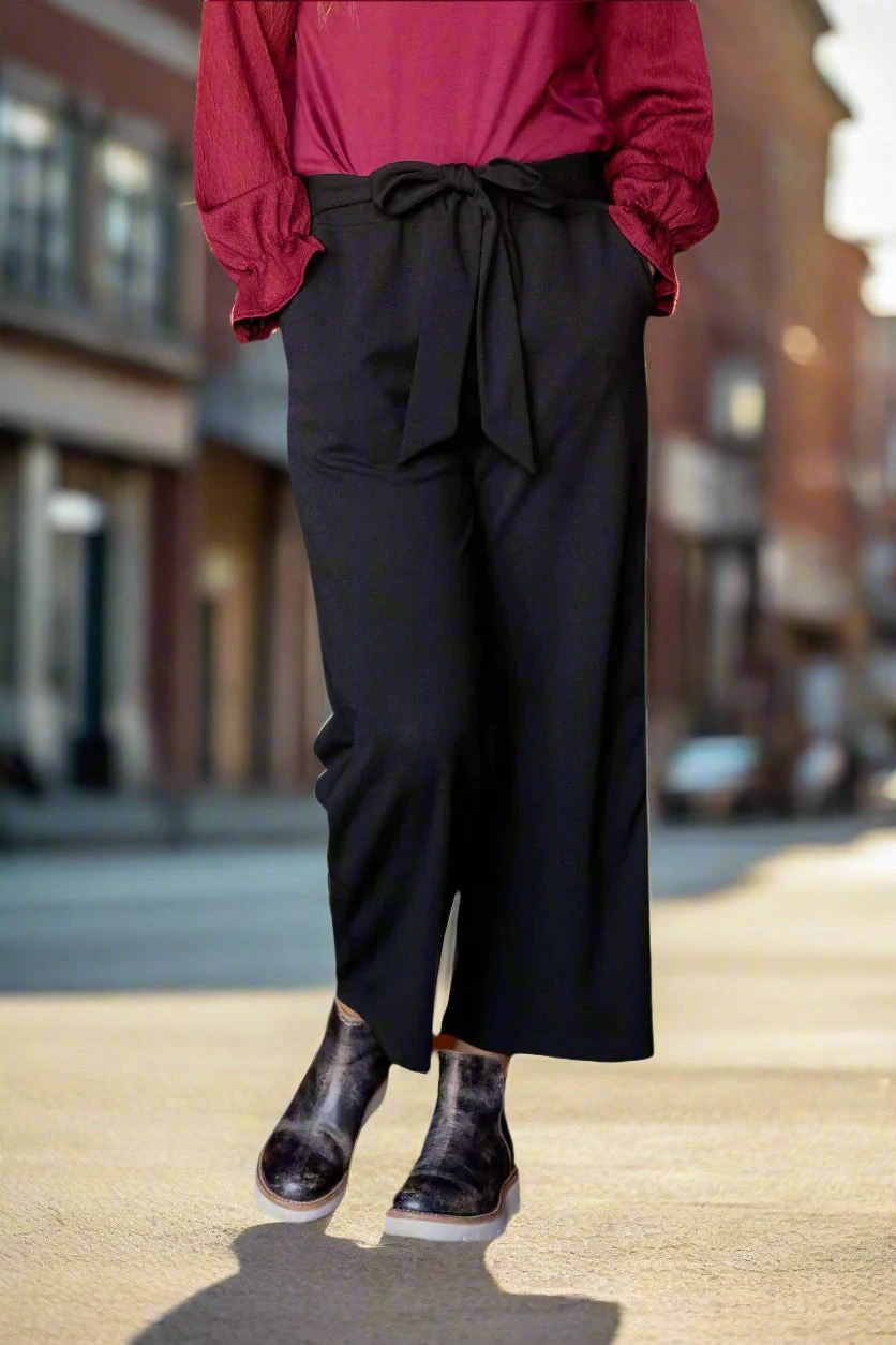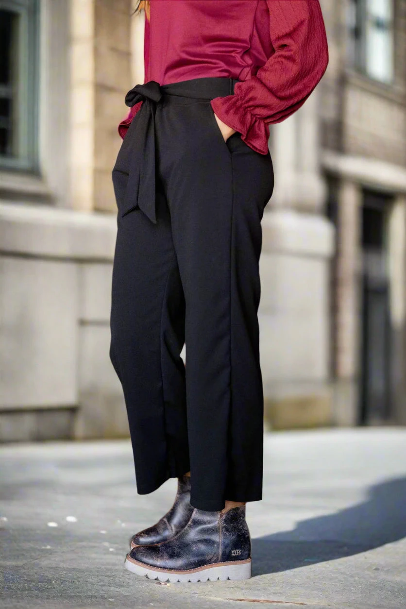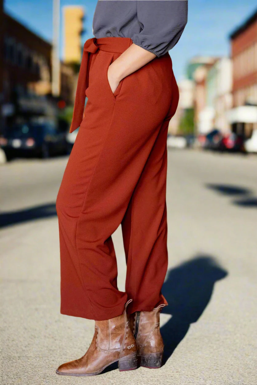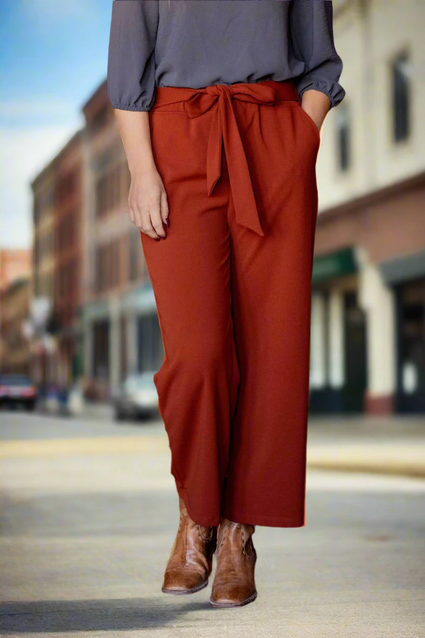 We are obsessed with these pants! Perfect for the office or the classroom or even date night out on the town! The dressier material, tie waist, pockets, and flare bottom detailing really set this apart from the rest! Pair these with a cute blouse tucked in for a more elevated look or even with a graphic tee and a denim jacket for a more casual outfit!