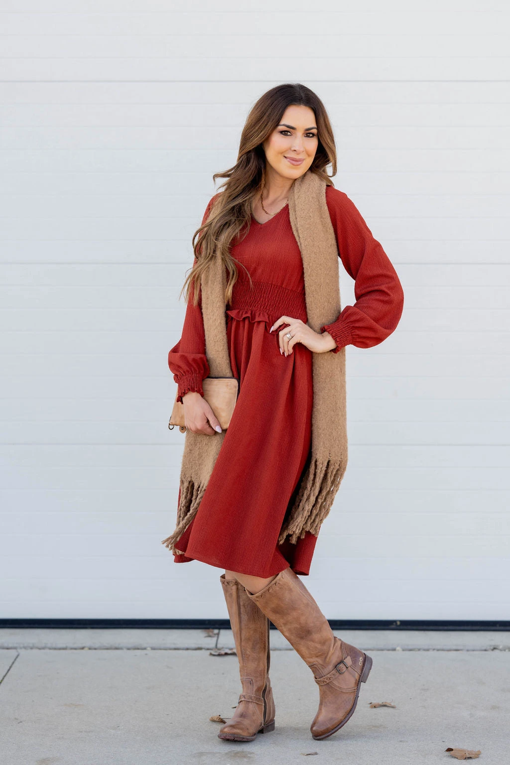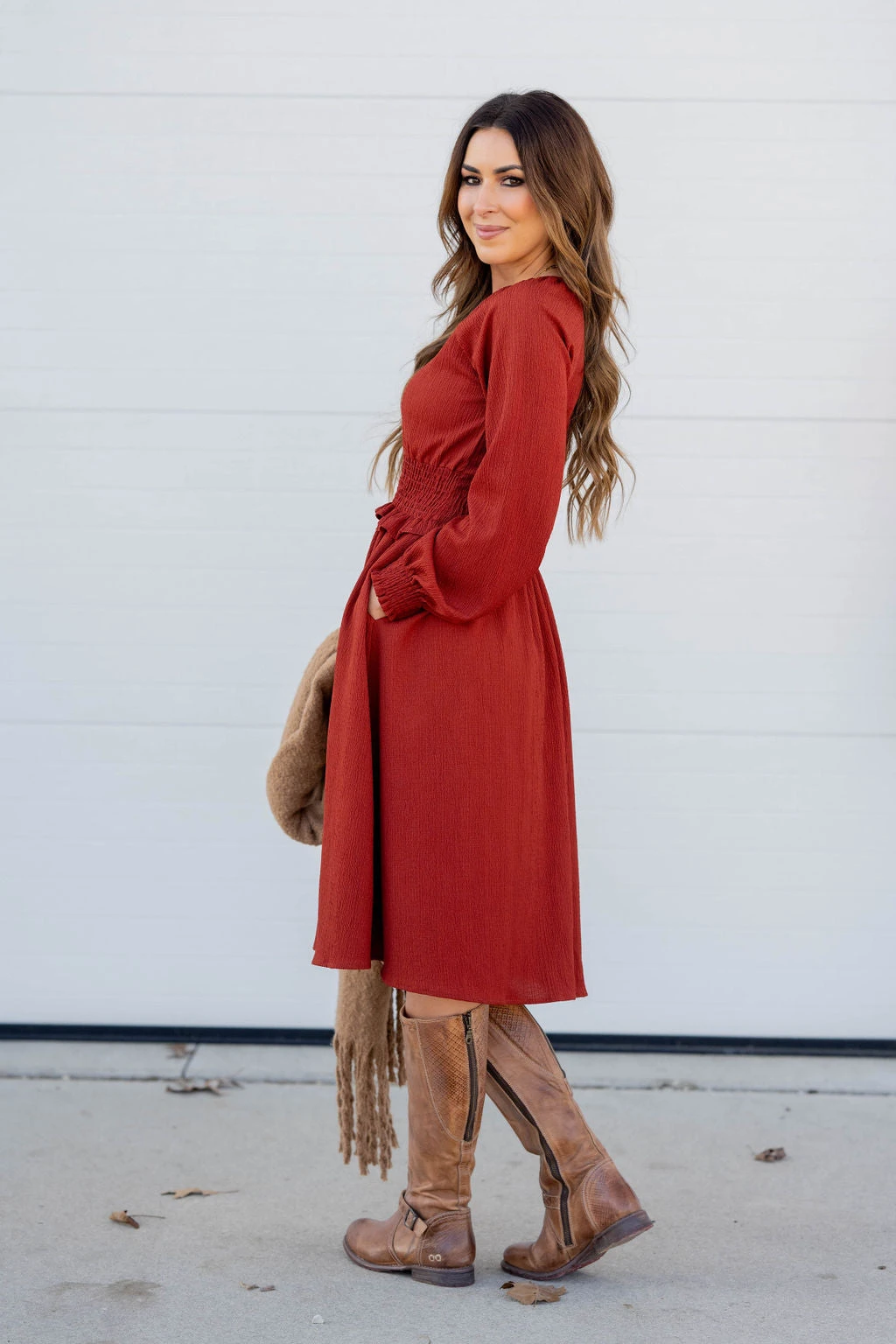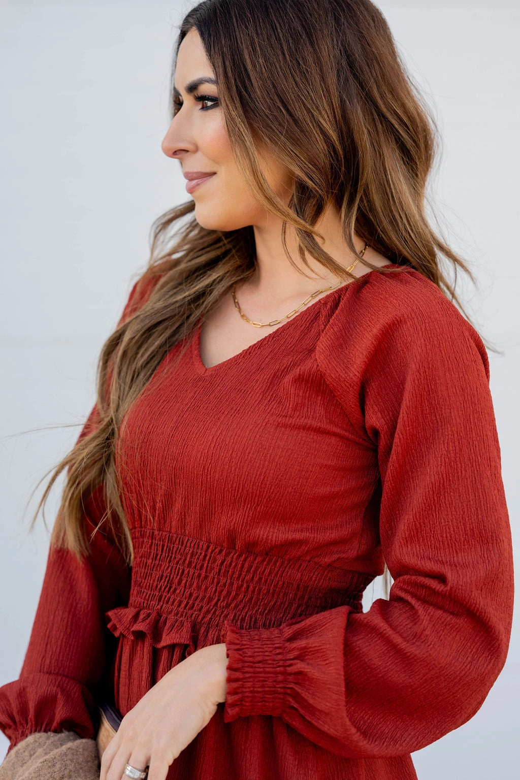 This textured dress features cinched accents and a v-neck cut to set it apart from the rest! Wear alone or add a vest, shacket, or leggings! Don’t forget your favorite accessories to complete the look!