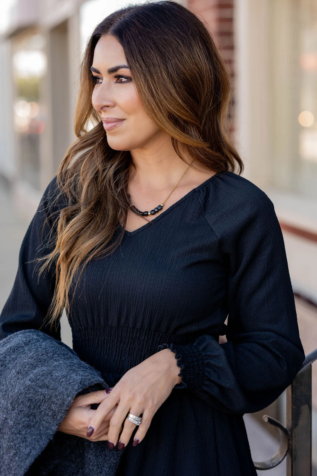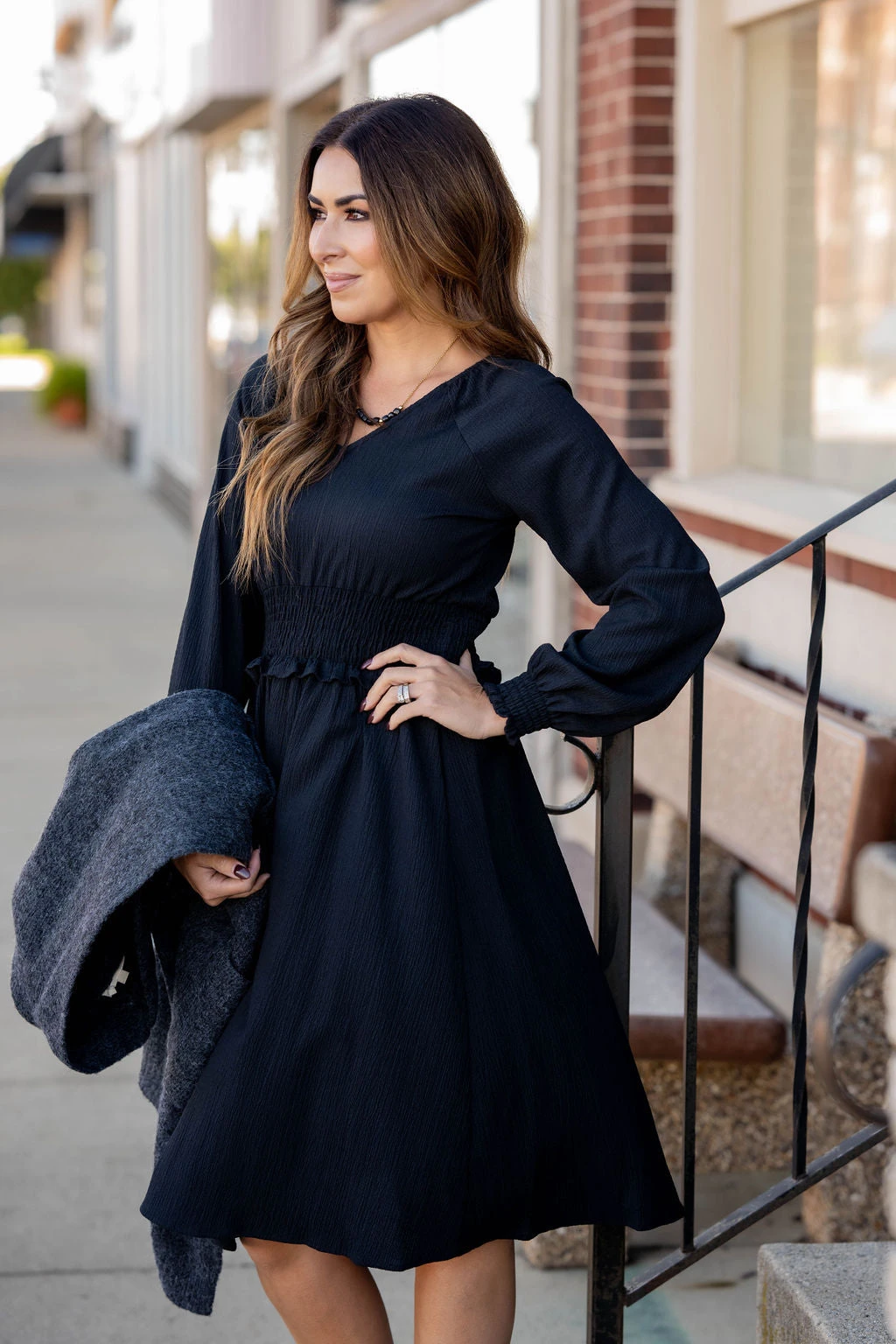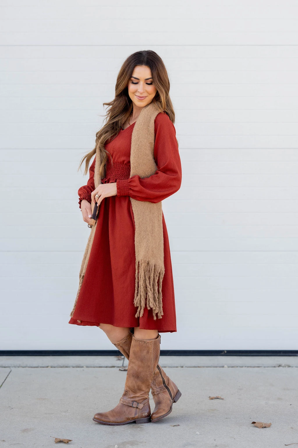 This textured dress features cinched accents and a v-neck cut to set it apart from the rest! Wear alone or add a vest, shacket, or leggings! Don’t forget your favorite accessories to complete the look!