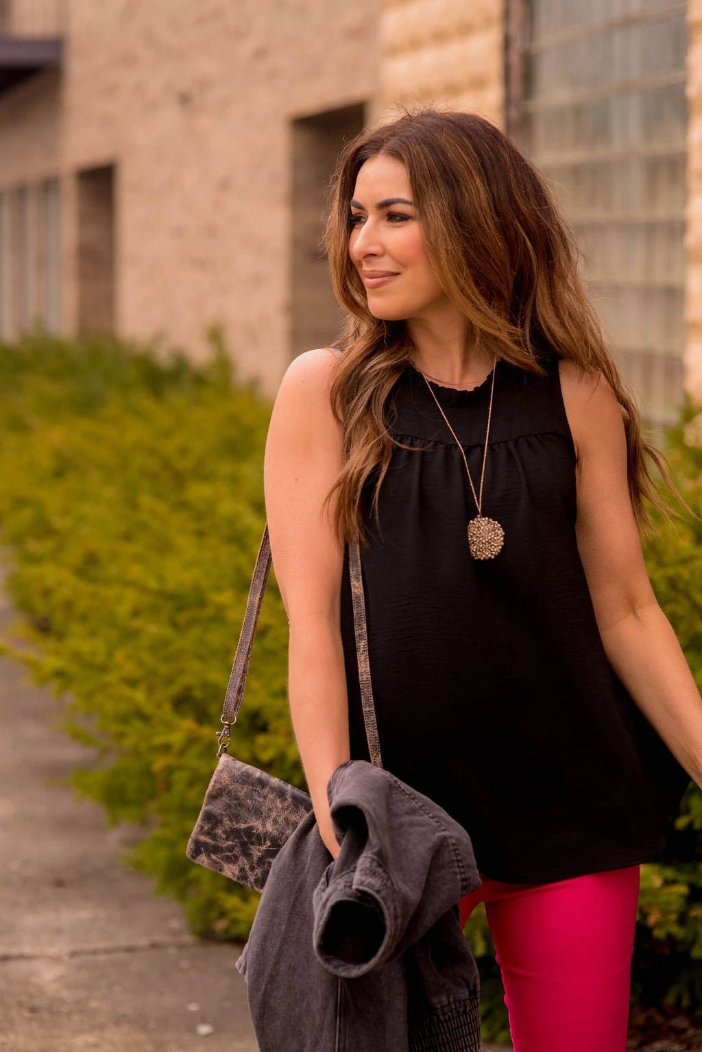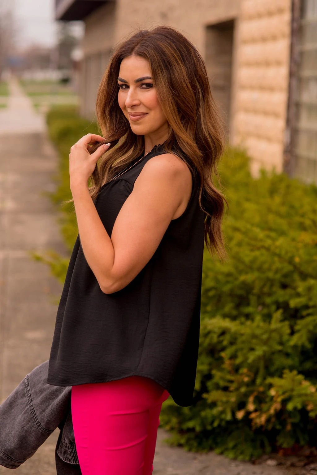 With the lightweight and bibbed fit, this tank is perfect for those hot summer days but can easily be layered with a jacket or cardigan for the cooler months! The cinched neck sets it apart from the rest and we love how easy it is to dress it up by tucking it into a patterned high-waisted skirt or a bold-colored Betsey’s Jegging or wear it more casual with your favorite distressed jeans or a high-waisted pair of shorts! We just know you’re going to love this one!