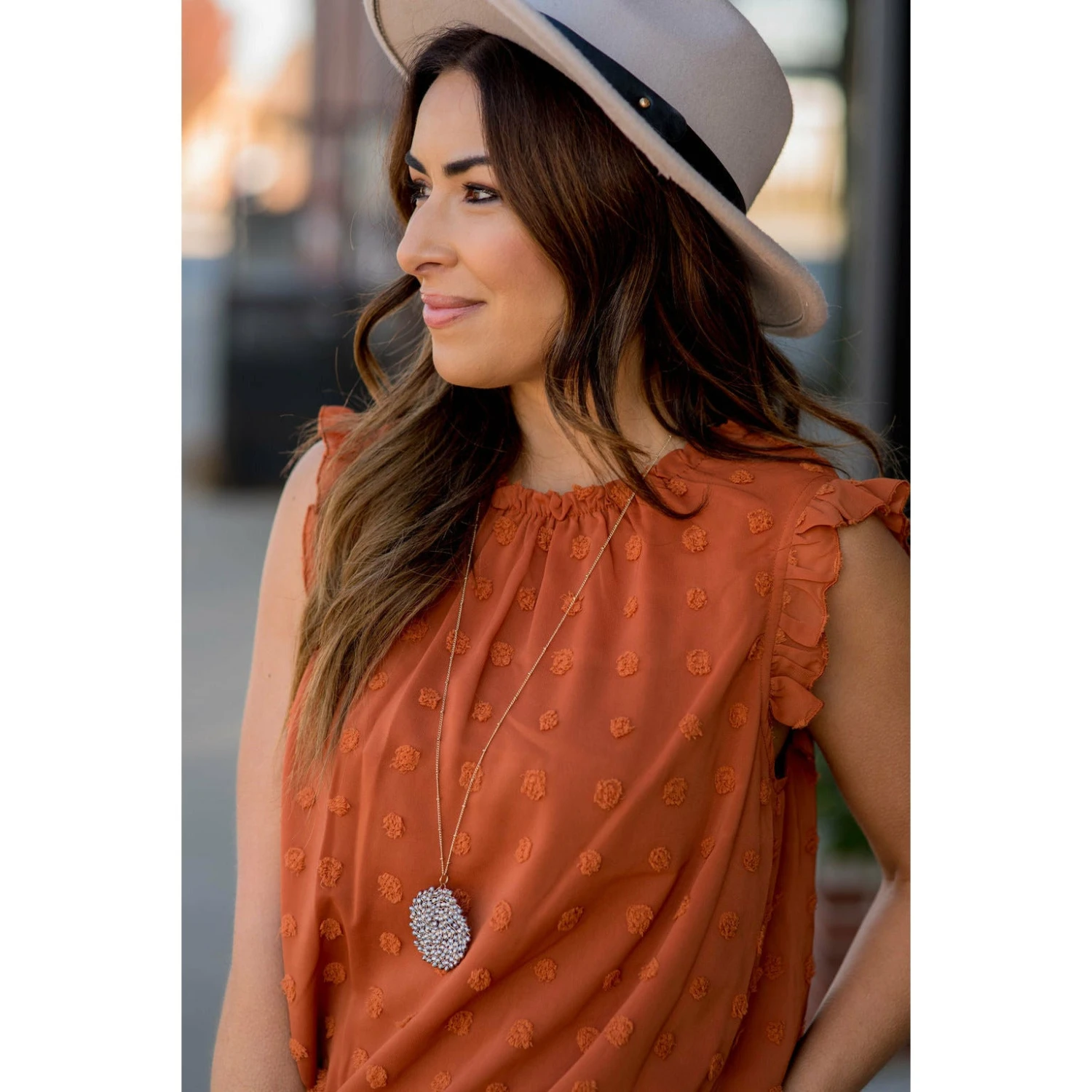 This blouse is the perfect piece for any wardrobe! Wear on warmer days by itself or pair with a cardigan or jacket on colder days for warmth and added style.