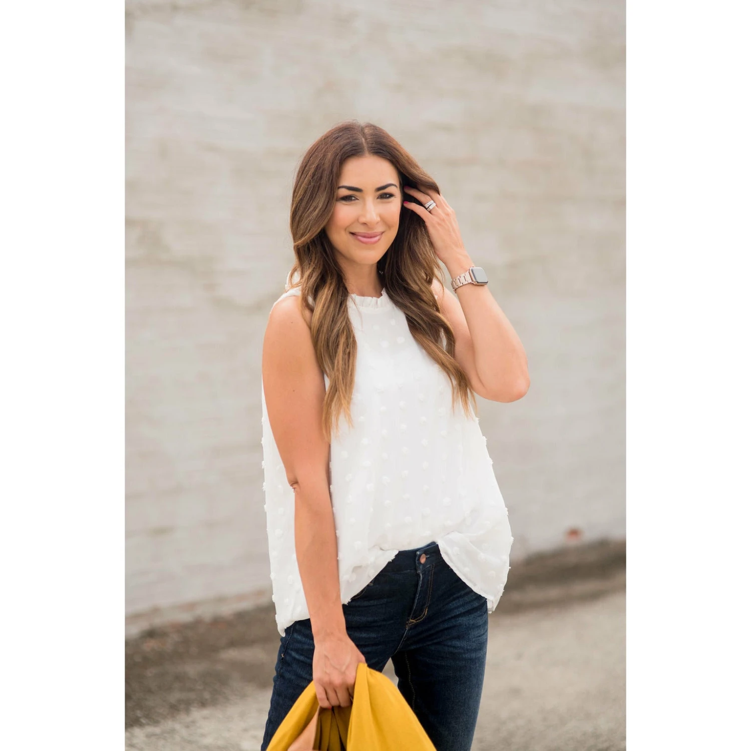 Textured dots are in, and this tank is definitely one that you want! This tank is easily dressed up or can be worn casual, depending on what your needs are!