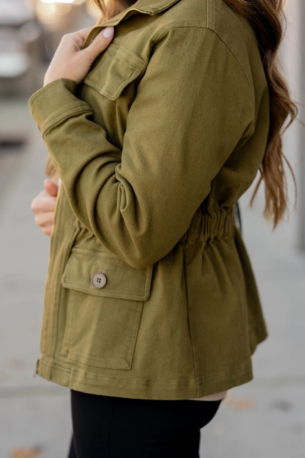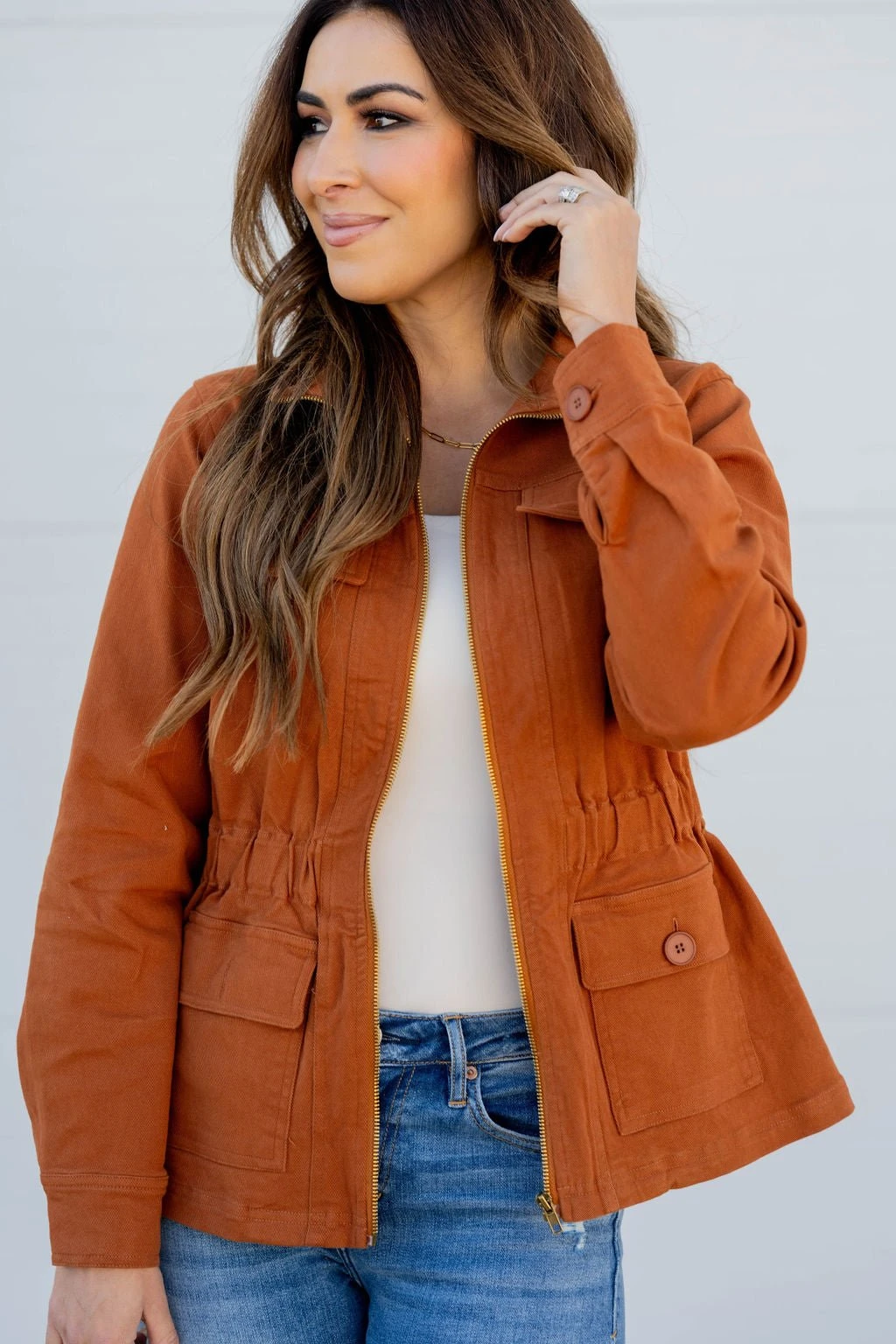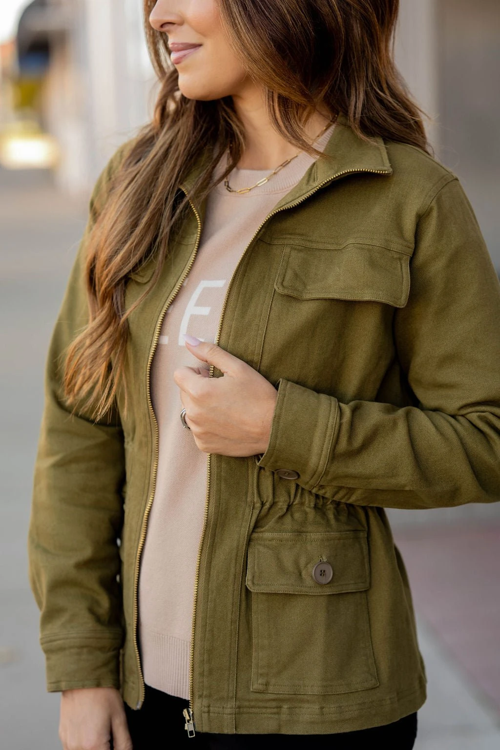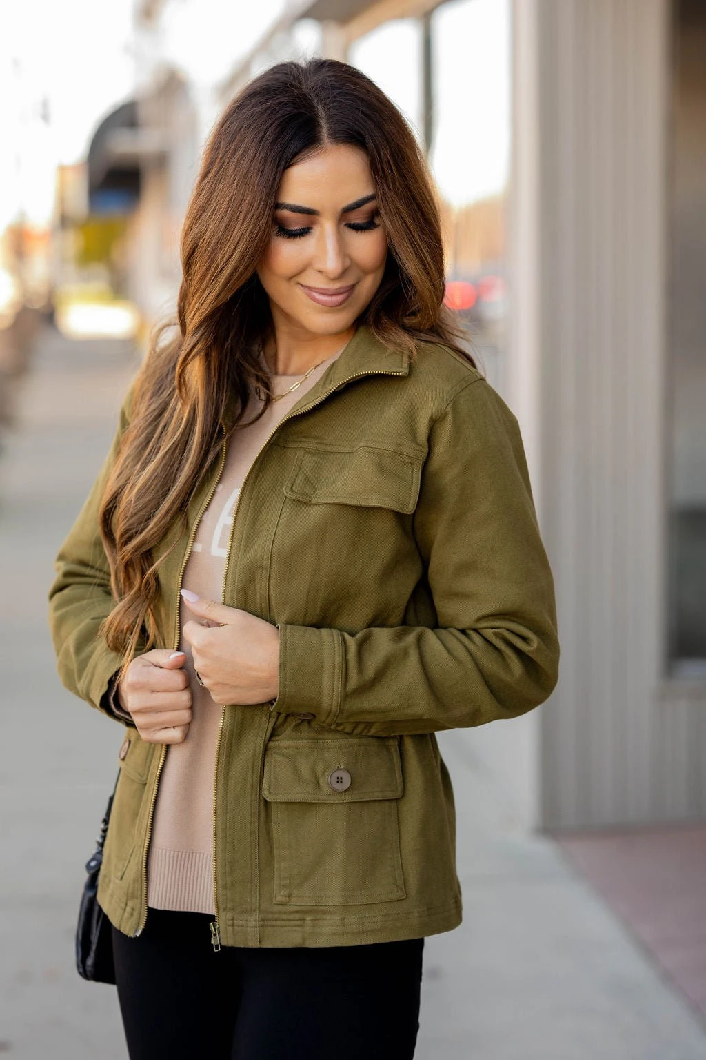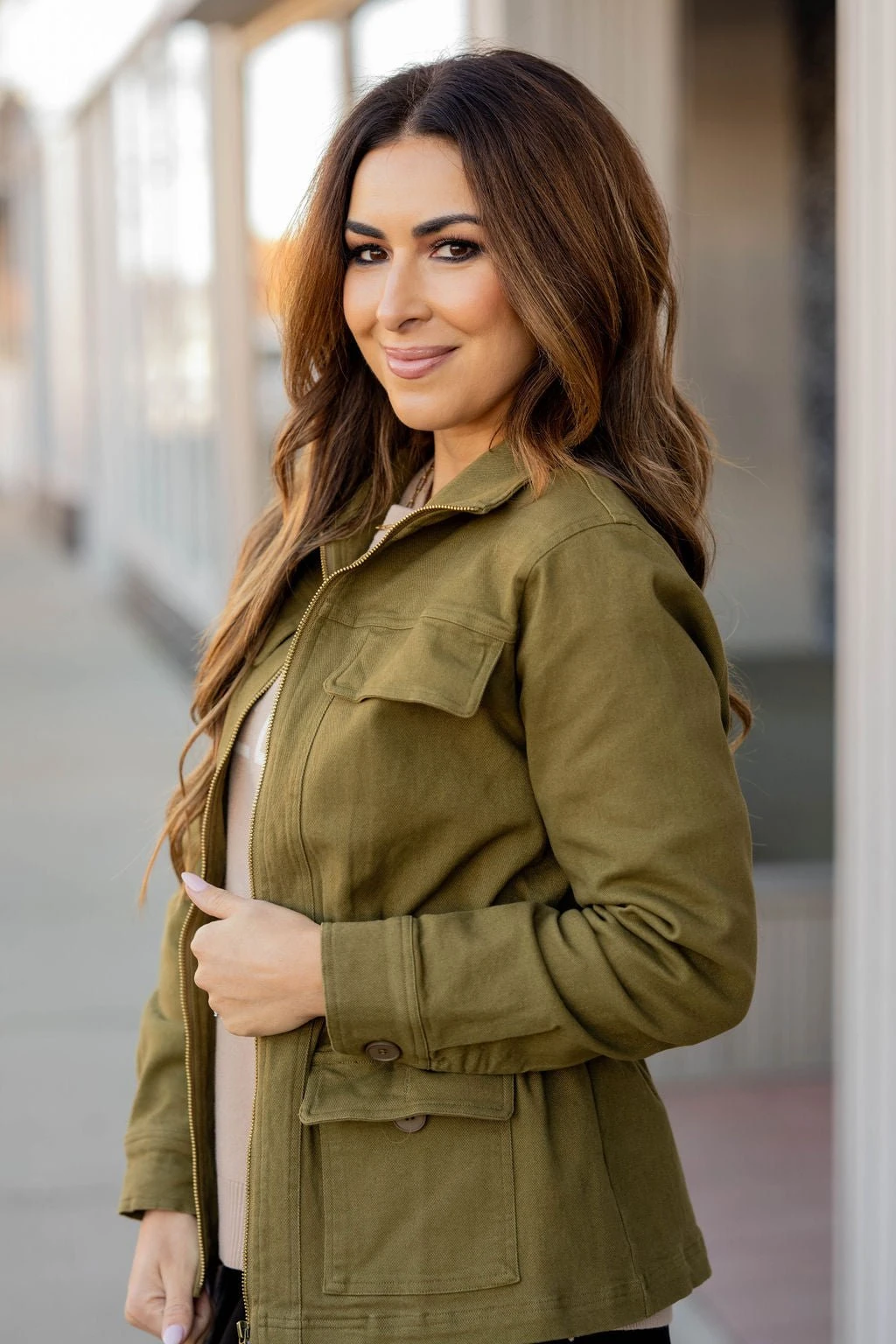 Whether you’re pairing with a feminine and flirty sundress or with a graphic tee and leggings combo, this jacket does it all! With the functionality of a utility jacket, you’re going to love this for everyday wear! Lightweight enough to transition you through all seasons, but ideal for layering up as well!