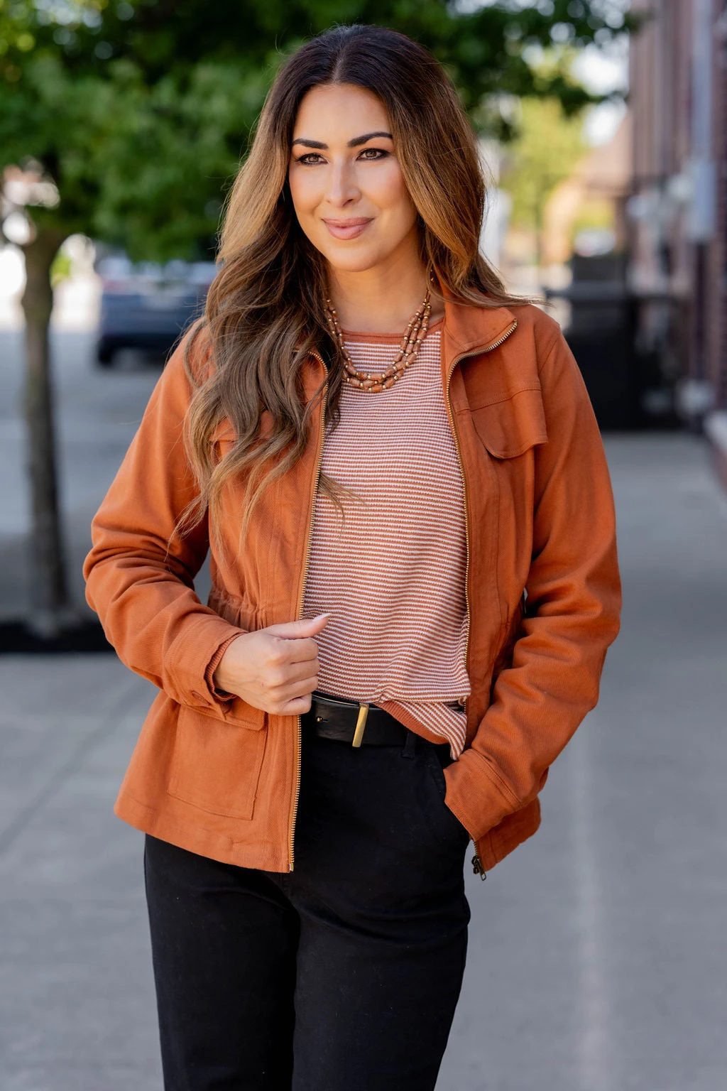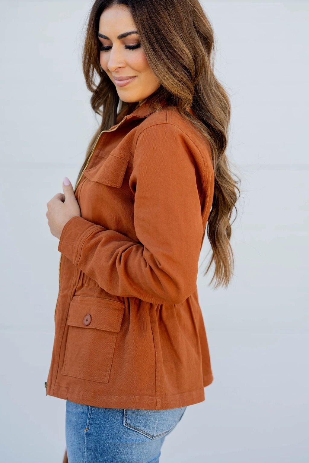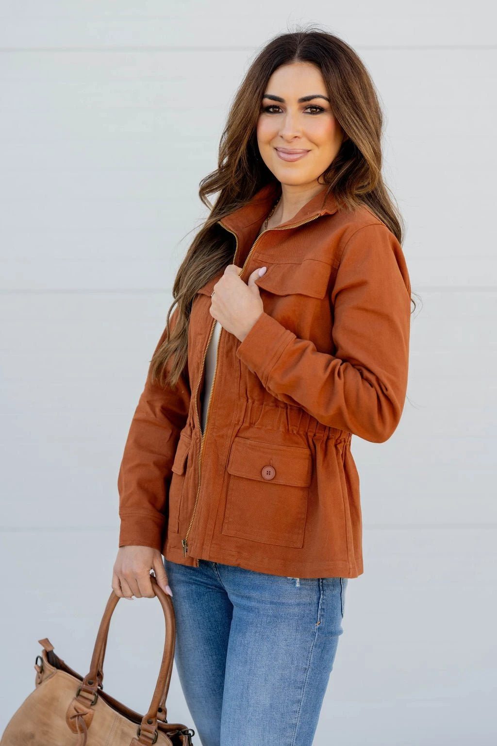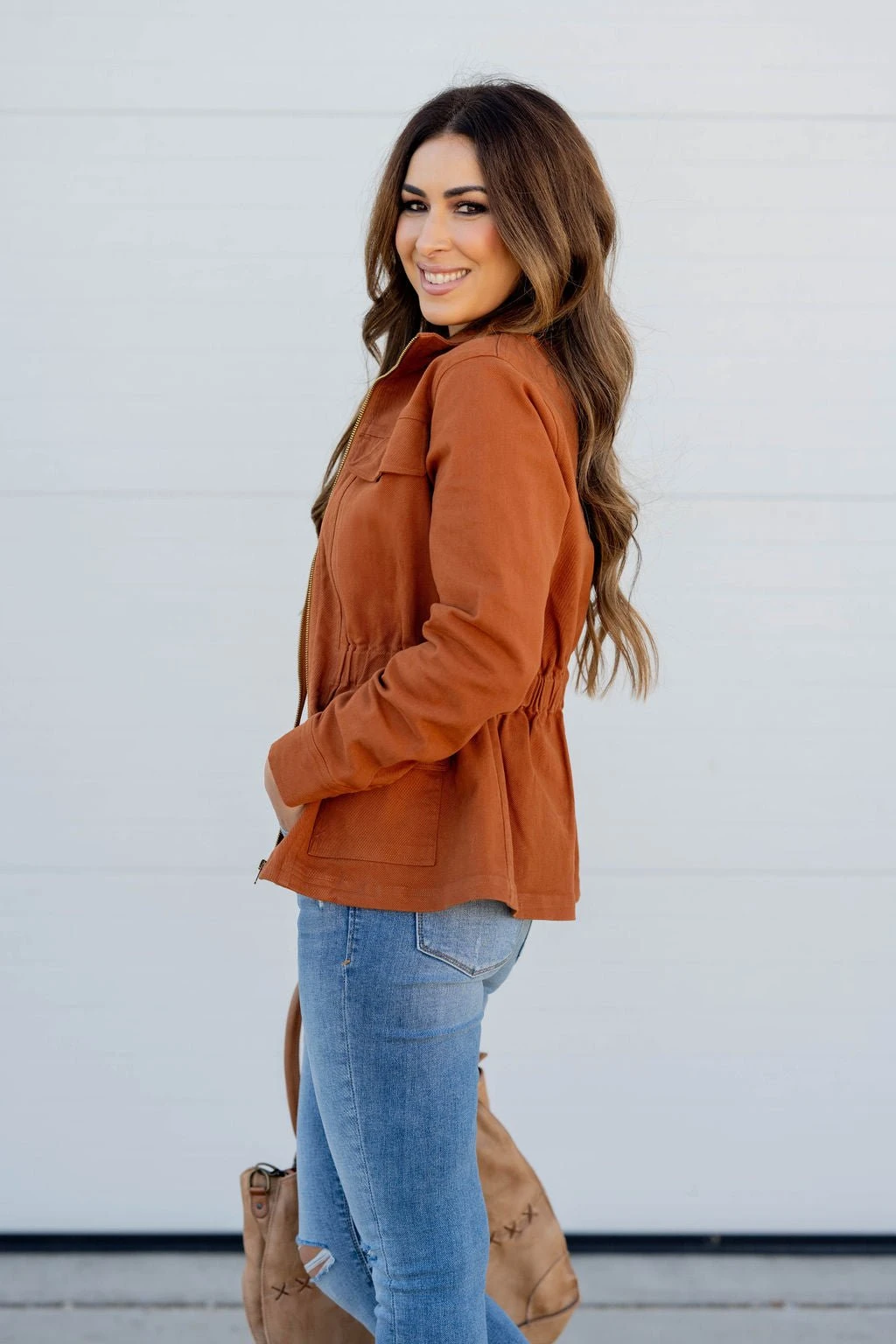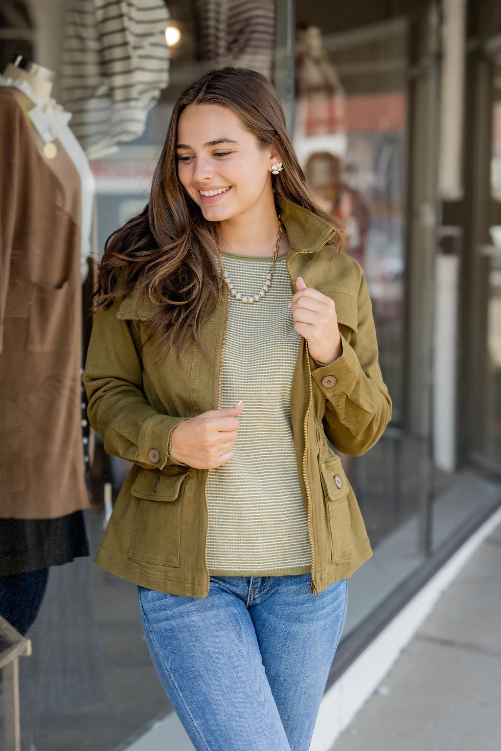 Whether you’re pairing with a feminine and flirty sundress or with a graphic tee and leggings combo, this jacket does it all! With the functionality of a utility jacket, you’re going to love this for everyday wear! Lightweight enough to transition you through all seasons, but ideal for layering up as well!
