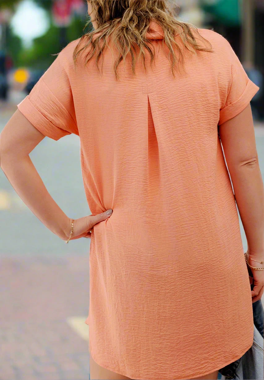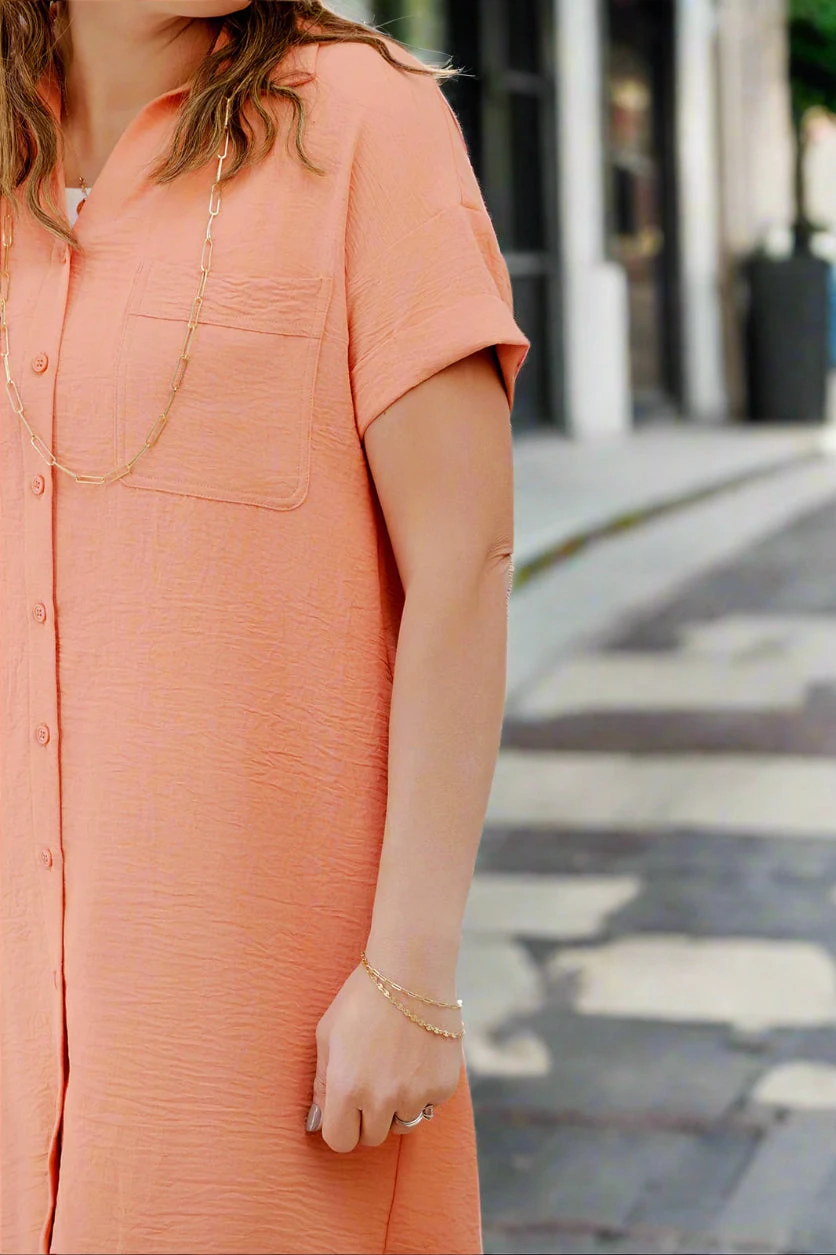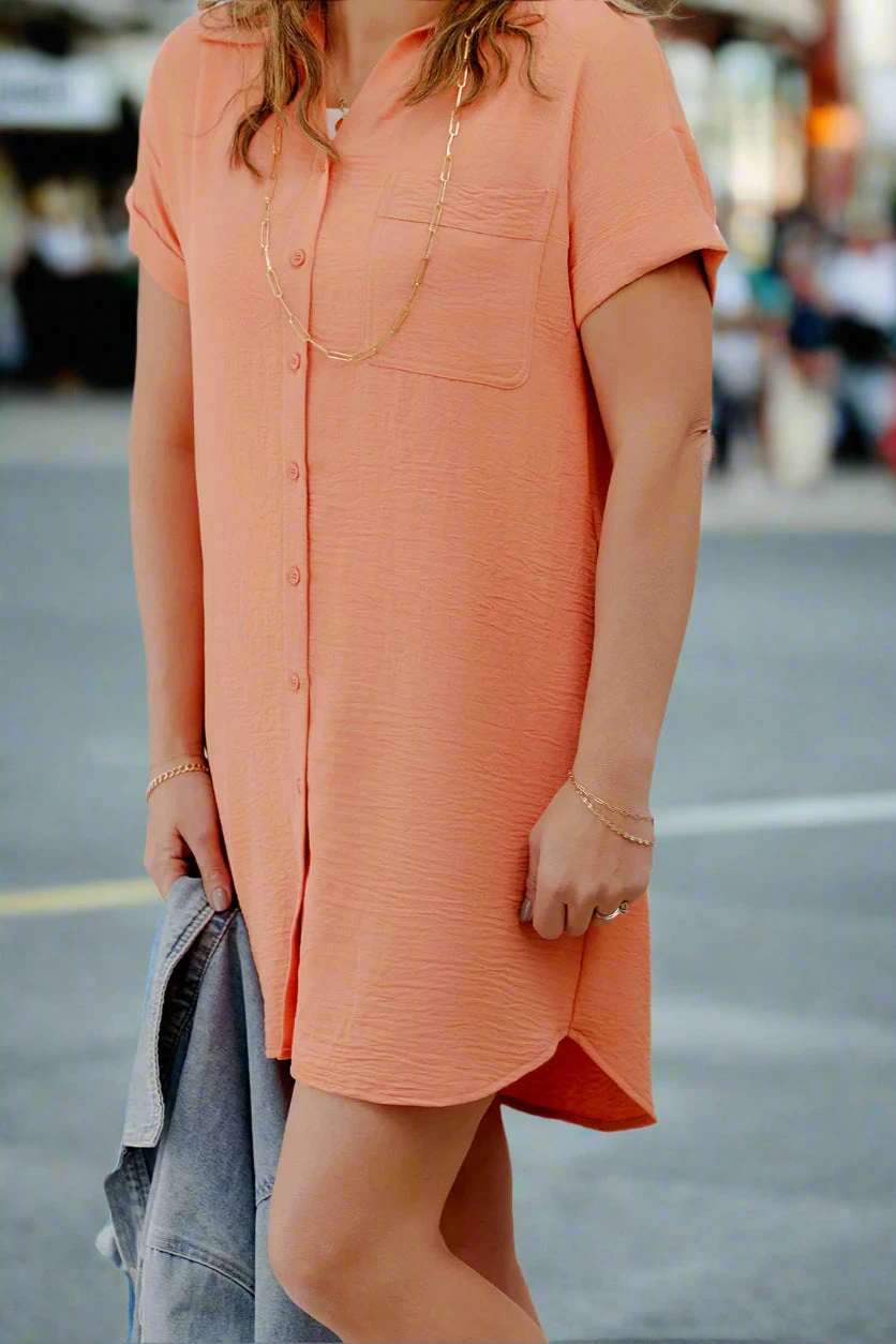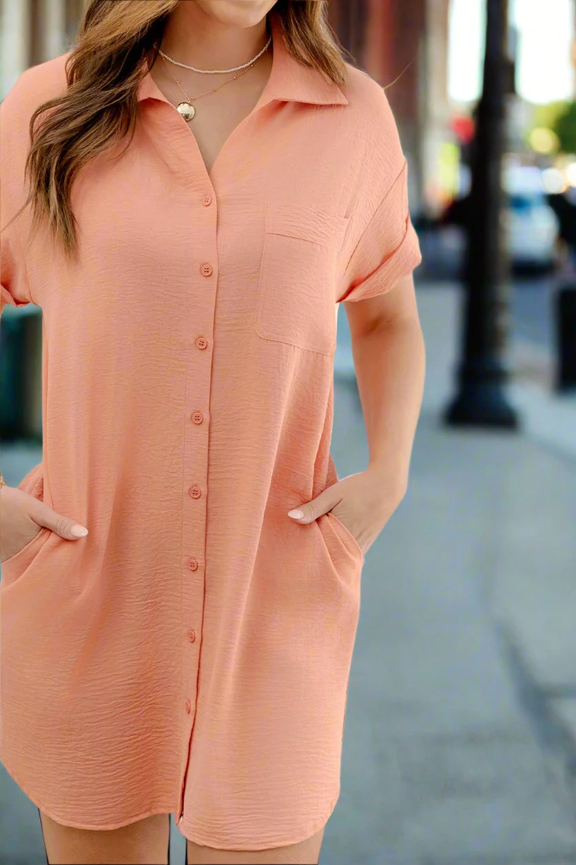 Basic enough to dress up or down to fit your style, but bold enough to stand out on its own! This dress features a tunic length, making it appropriate for the office, the classroom, or Sunday service but also features a button up look that gives a fun and flirty vibe! This dress can be worn alone for the warmer months but can easily be paired with a denim jacket or cardigan for the cooler ones! With so many ways to style, we just know this dress will surely become a staple piece in your closet!
