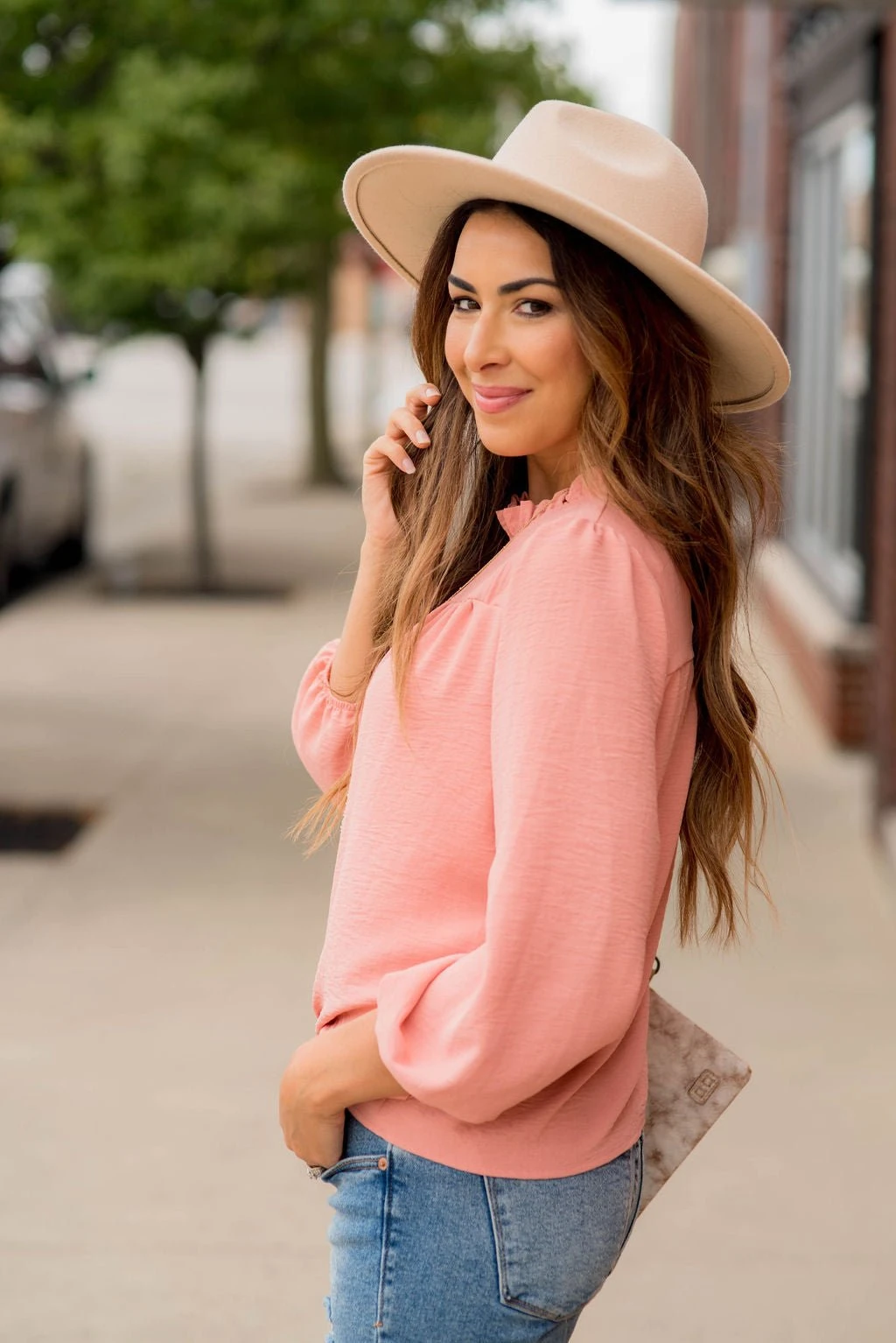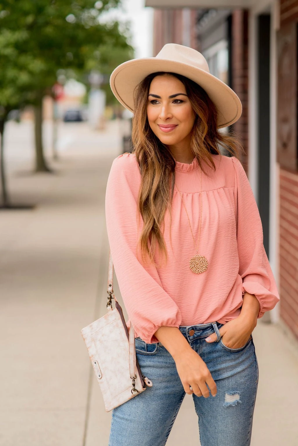 The perfect everyday blouse that can take you from the office to date night with ease! The lightweight material allows you to wear this all year round! Tuck into a skirt, pair with your favorite denim, or a bold-colored pair of our Betsey’s Jeggings! Don’t forget your favorite accessories to complete the look!