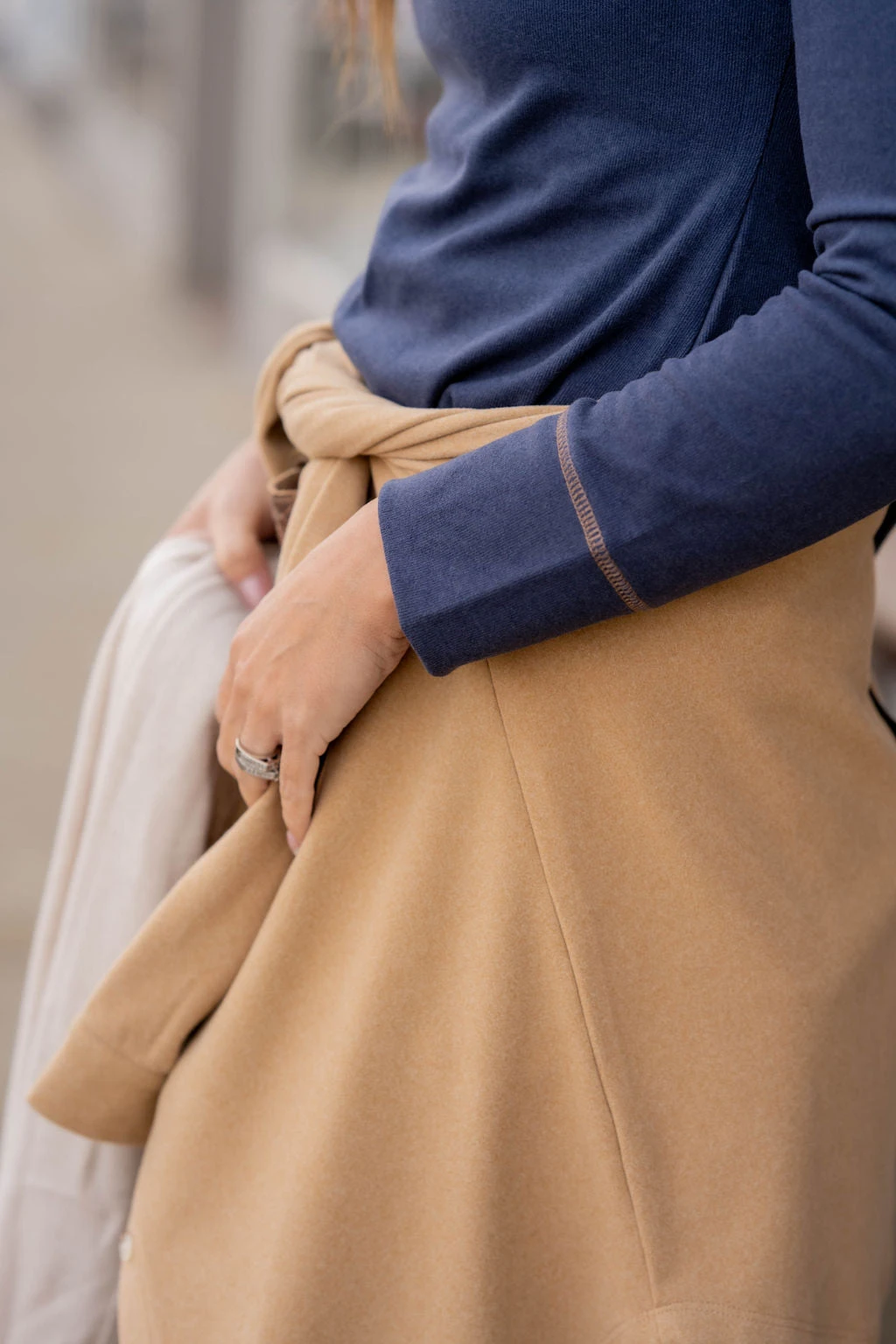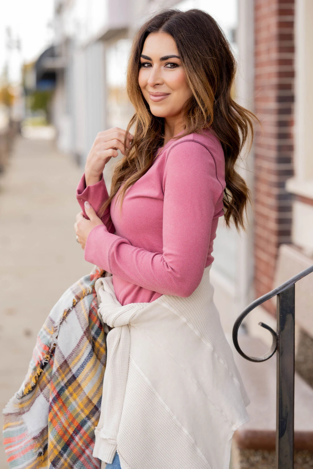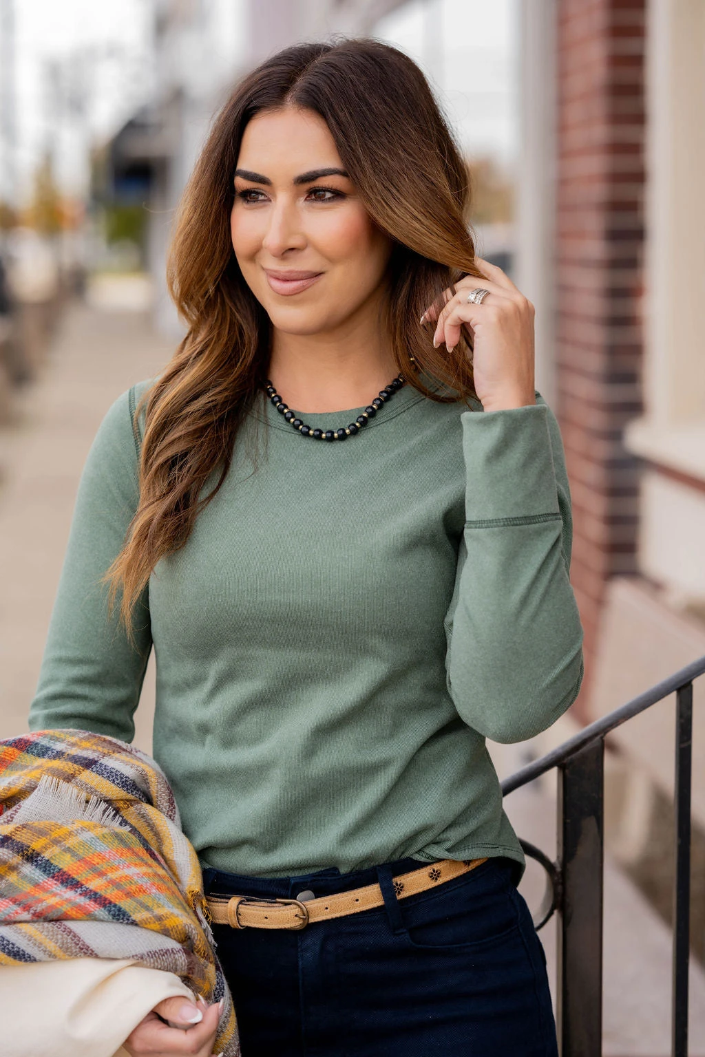A lightweight long-sleeve tee that can be dressed up or down with ease! The colored seam makes it perfect to stand out on its own but it can also be used as a layering piece for all of your vests, cardigans, or shackets! This simple tee is easy to dress up or down for everyday wear!