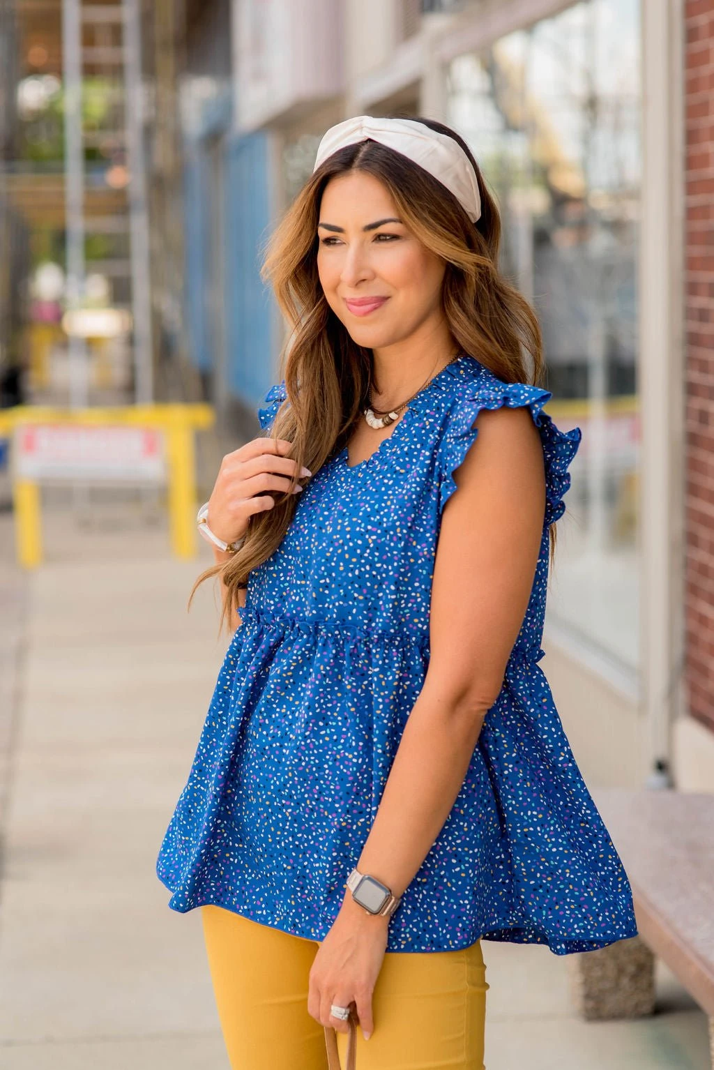 Be the first to review “Confetti Ruffle Accent Peplum Blouse” Cancel reply