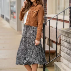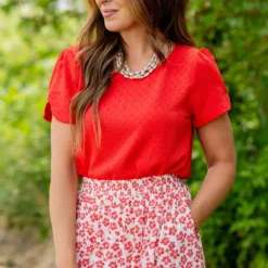 The mixture of bold-colored confetti print and ruffle accents really sets this blouse apart from the rest! Pair with shorts or a skirt during the warmer months or with denim or our Betsey’s Jeggings and a cardigan in the cooler ones!