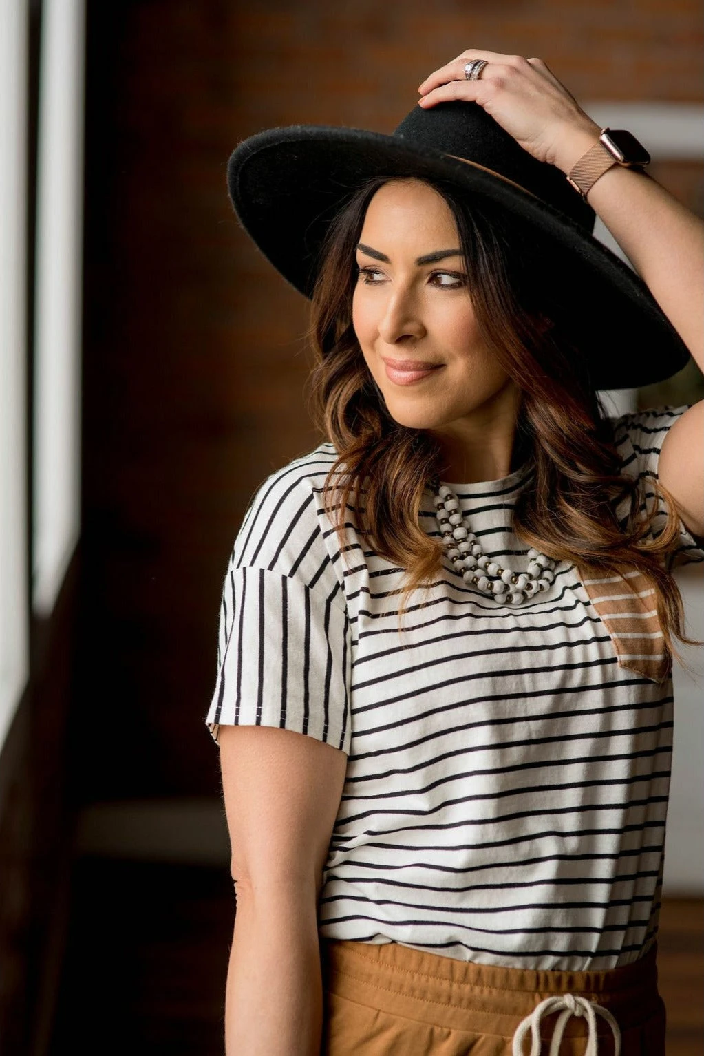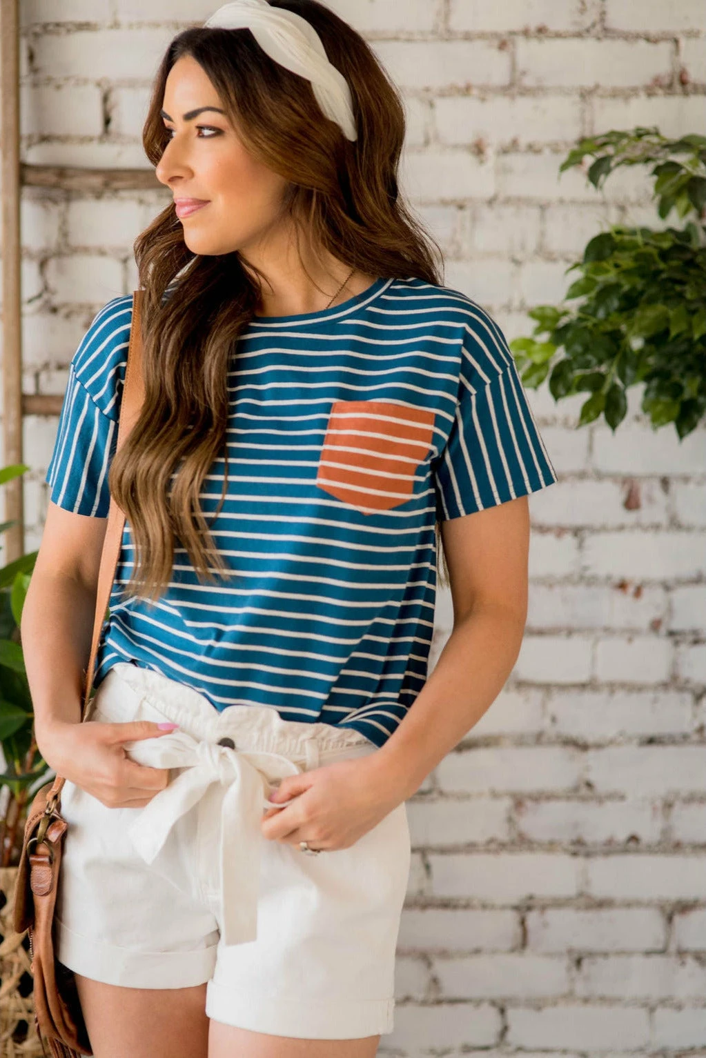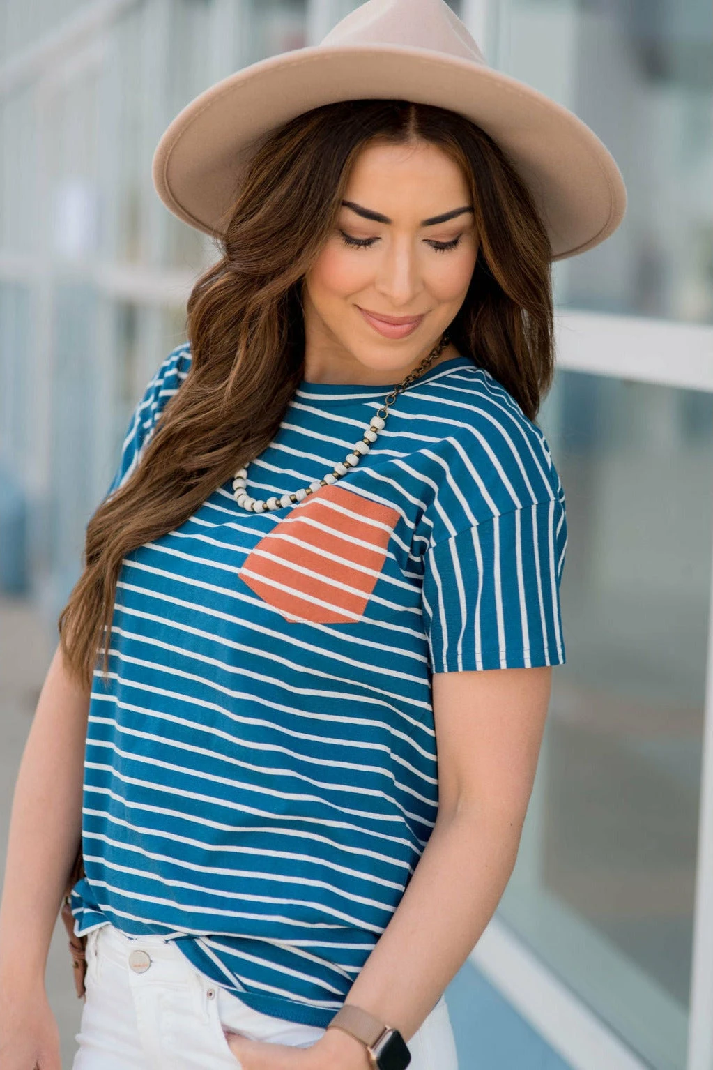 This contrasting striped pocket tee is just what you are looking for! With soft colors, this pocketed tee can be worn with just about anything. Throw on a jean jacket for those cool, fall days, or even dress it up with a skirt or slacks. For just about any occasion, this tee is the one for you!