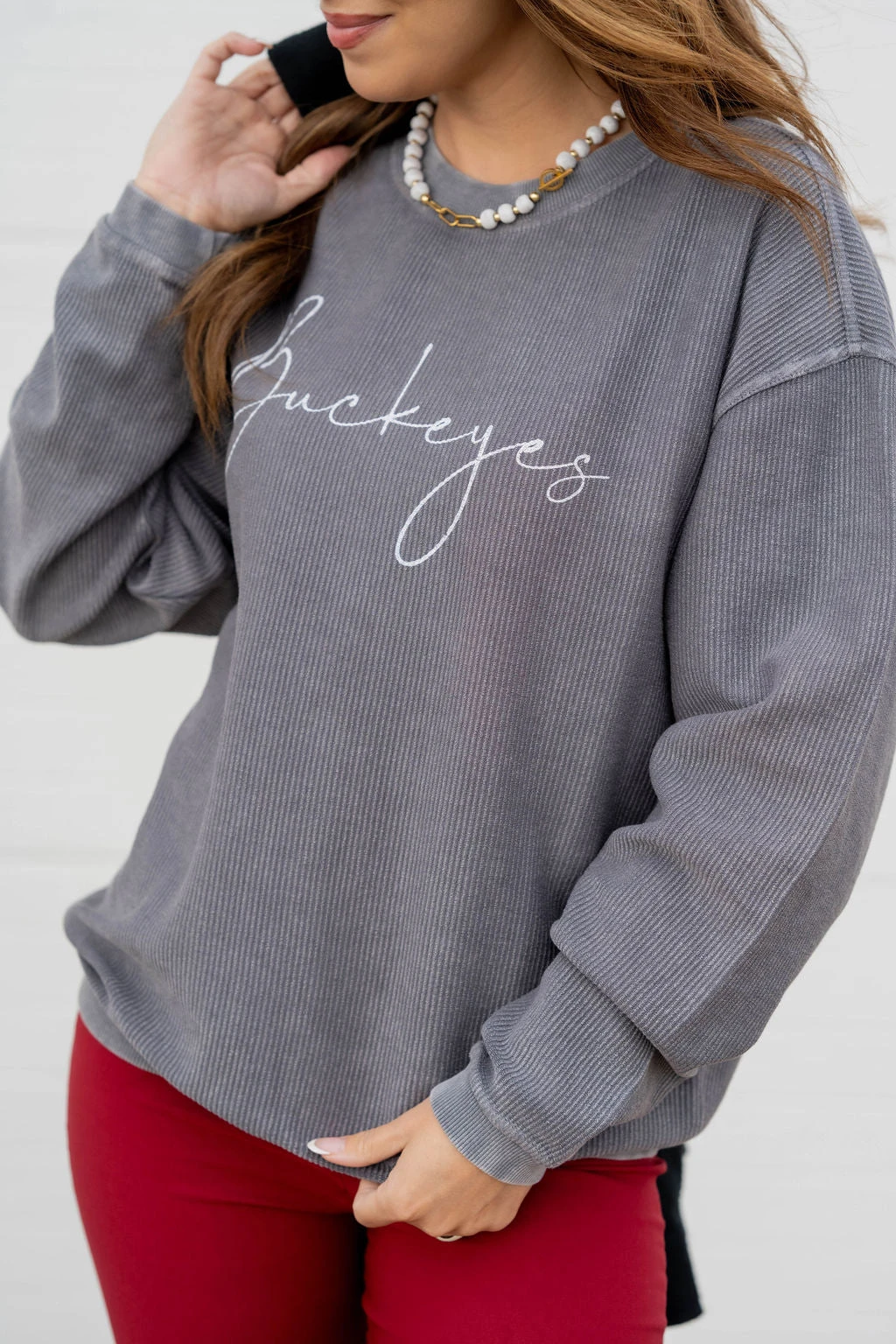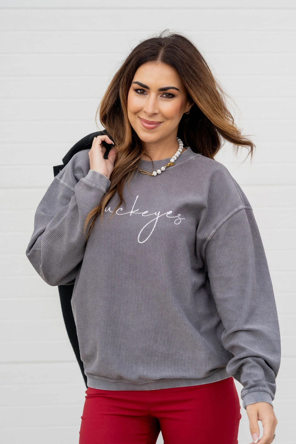 Our graphic crewnecks are already a fan favorite but with the elevated ribbed texture, this is a must-have! Thro on with shorts for a cute transitional look or with leggings, joggers, or denim in the cooler months!