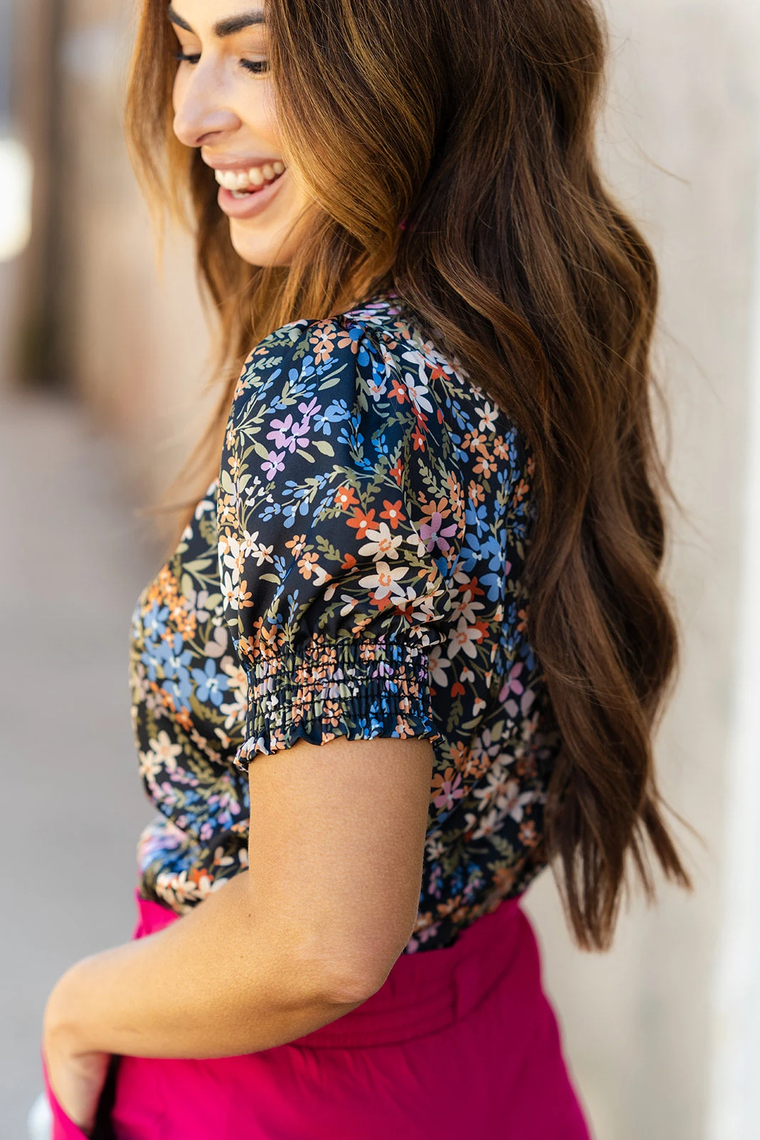 The fun puff sleeves and beautiful floral print really set this blouse apart from the rest! Pair with shorts or a skirt in the warmer months or with denim or our Betsey’s Jeggings in the cooler ones! Don’t forget your favorite accessories for a complete Betsey’s look! The simplicity of this allows you to dress it up or down with ease, making it ideal for everyday wear!