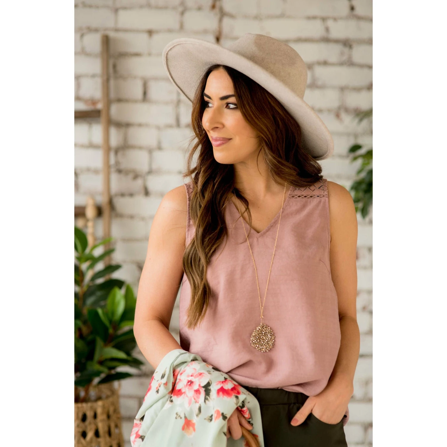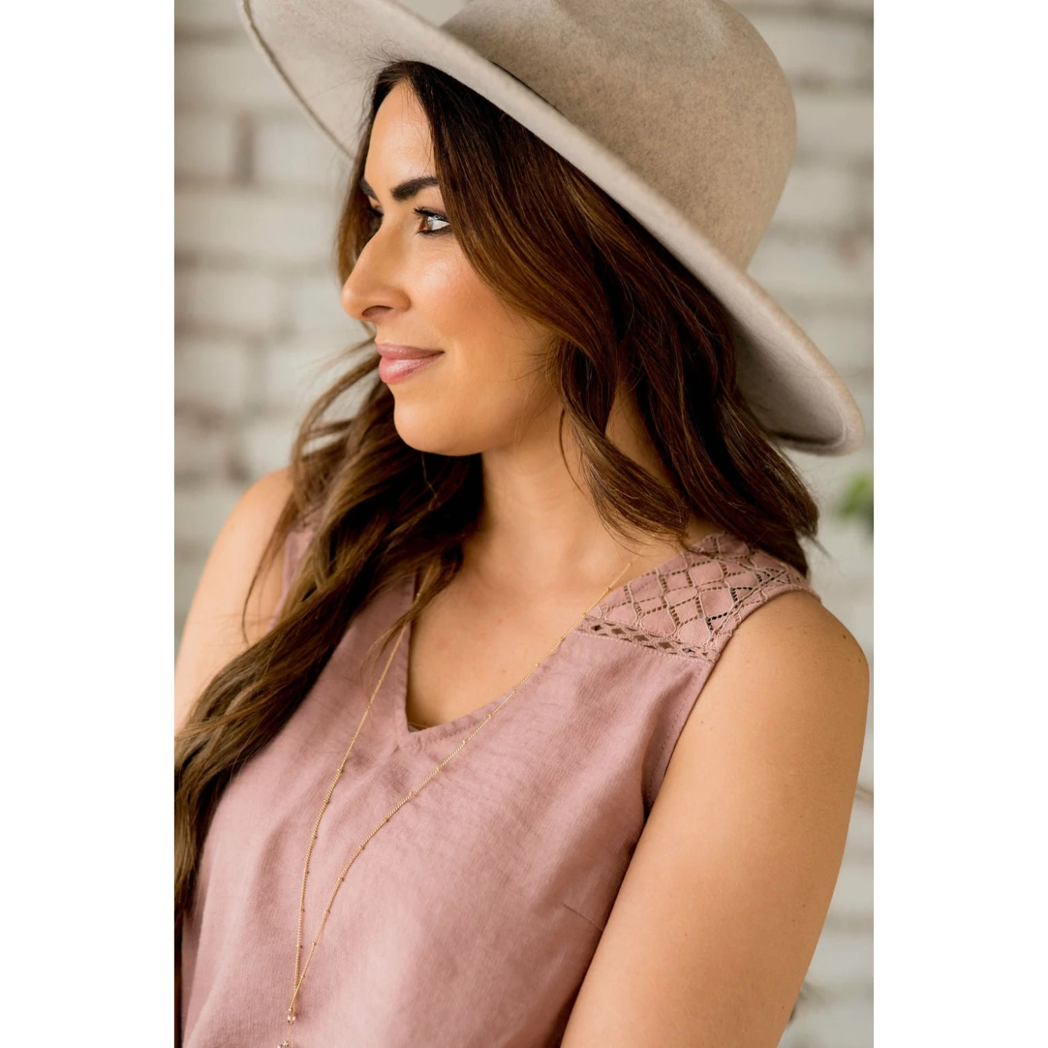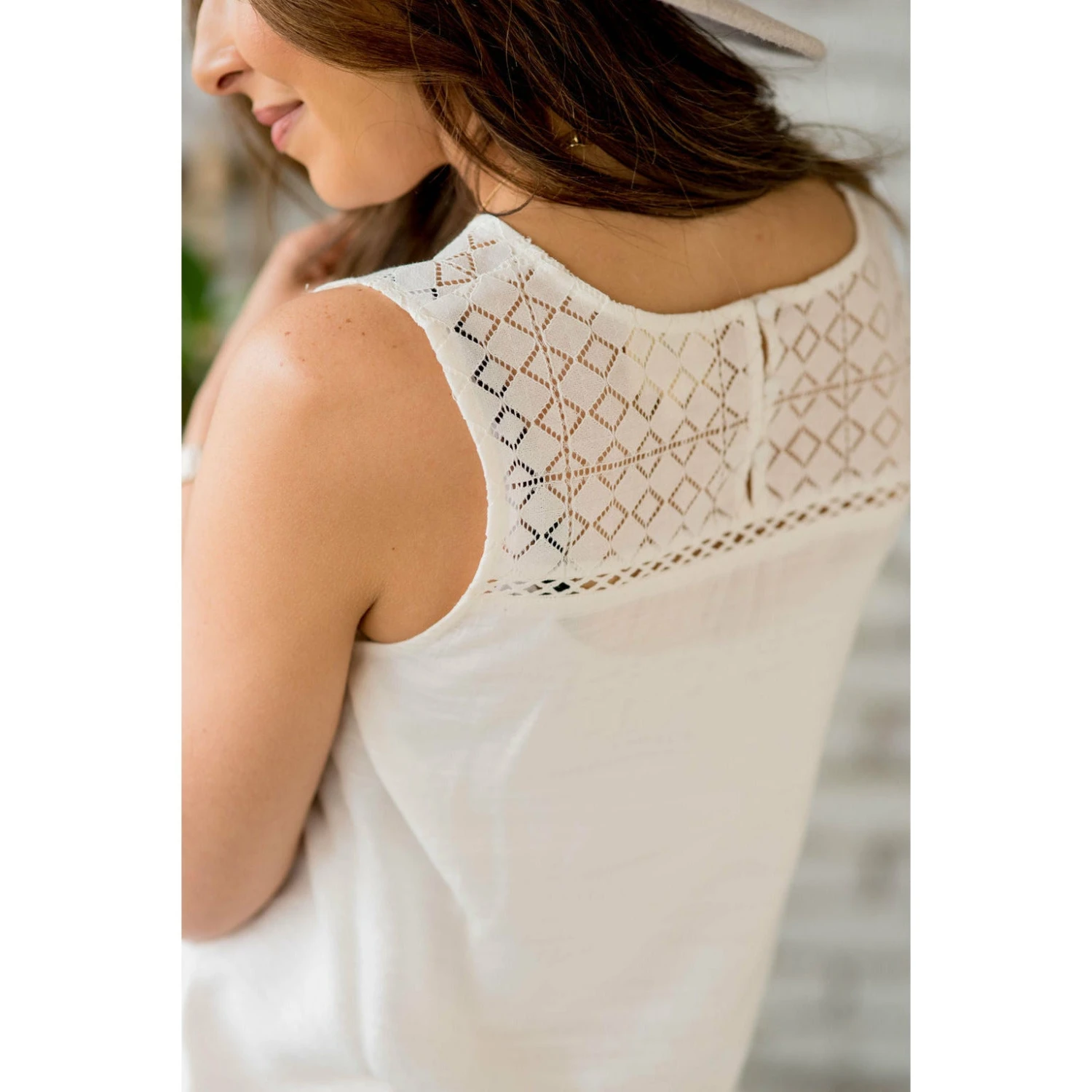 A simple tank from the front with an intricate diamond cut-out pattern in the back! We love that this tank can be styled so easily. Tuck into a patterned skirt or colored high-waisted shorts in the summer, or use as a layering piece for your cardigans or shackets in the cooler months! The possibilities are endless with this one!